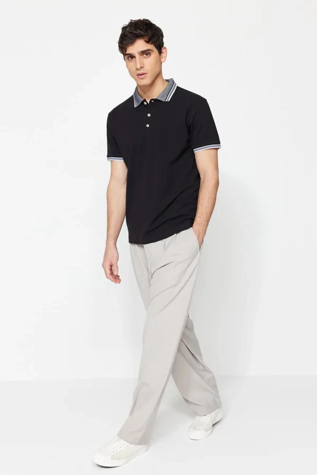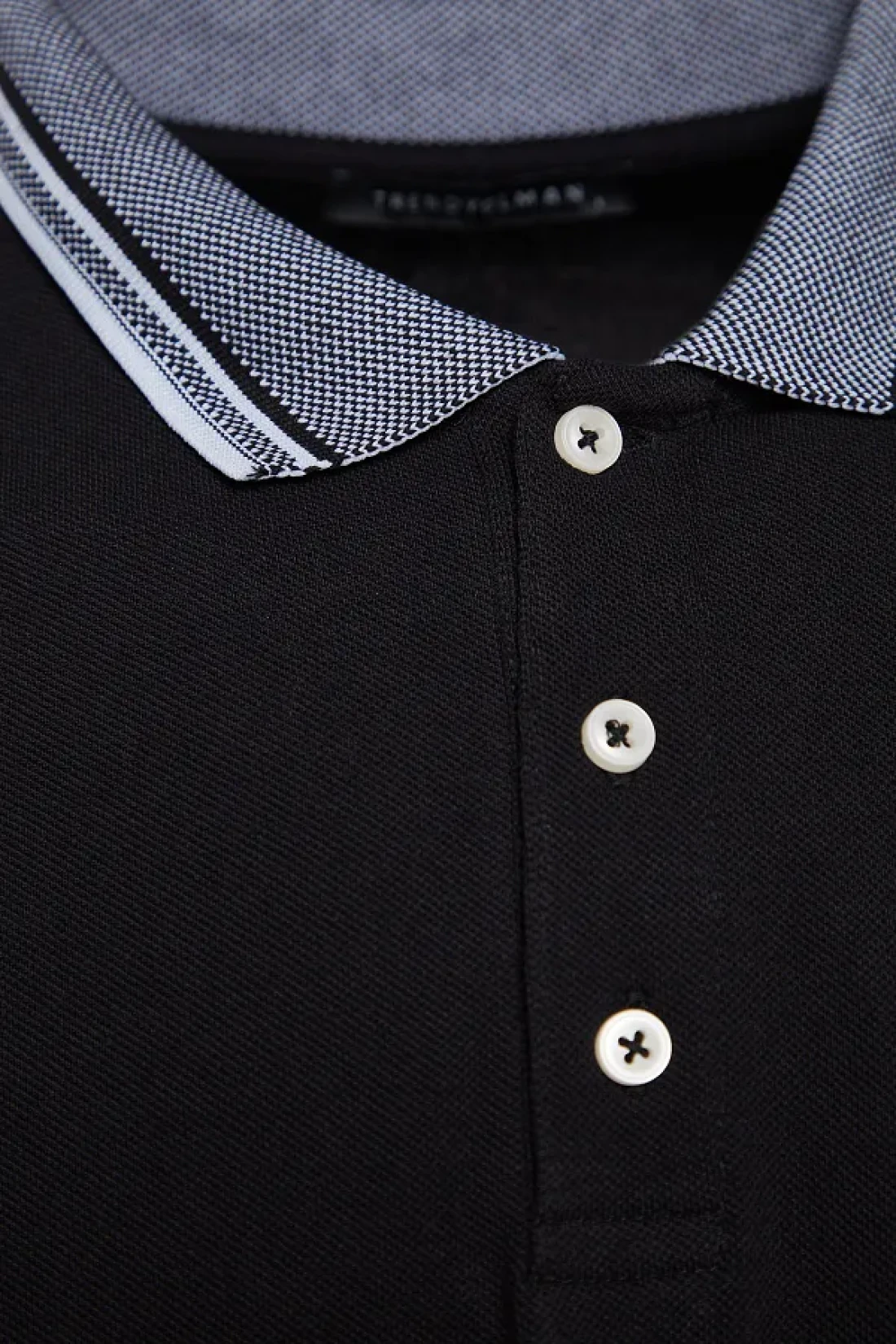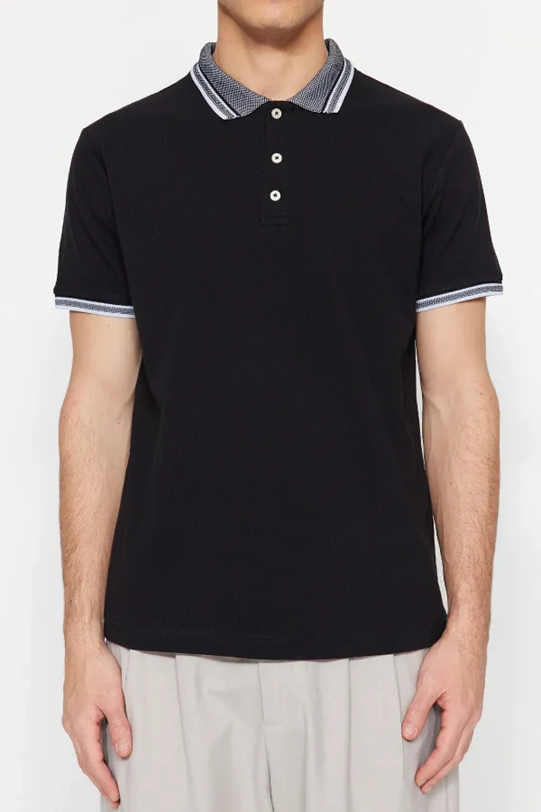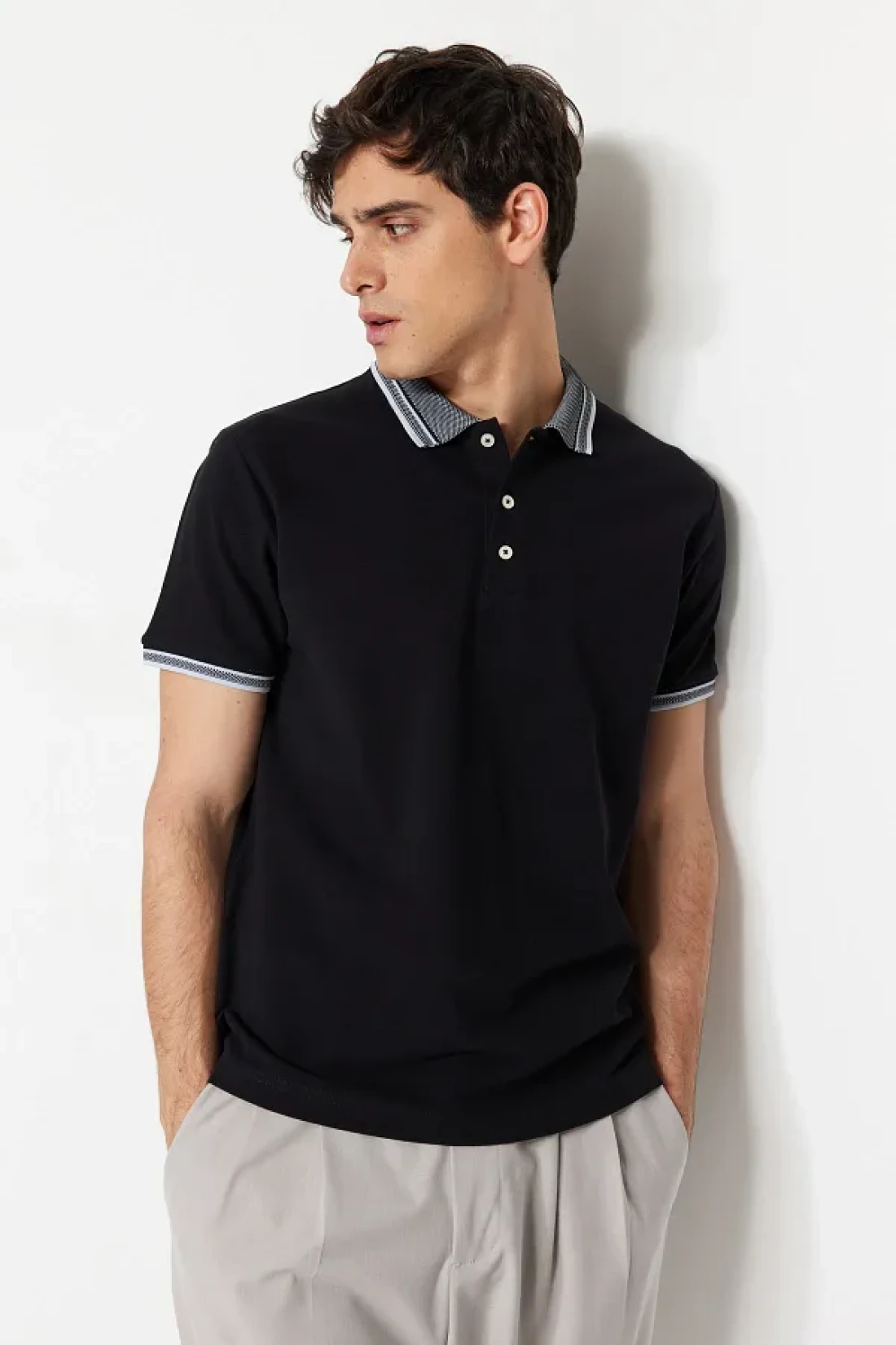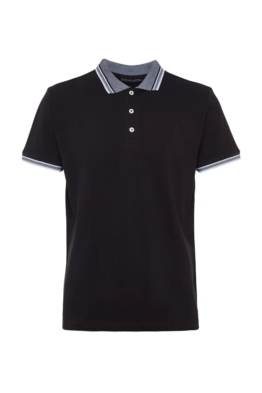 Collection تيشيرت أسود بقصة ضيقة بياقة بولو - 100% قطن TMNSS22PO00014