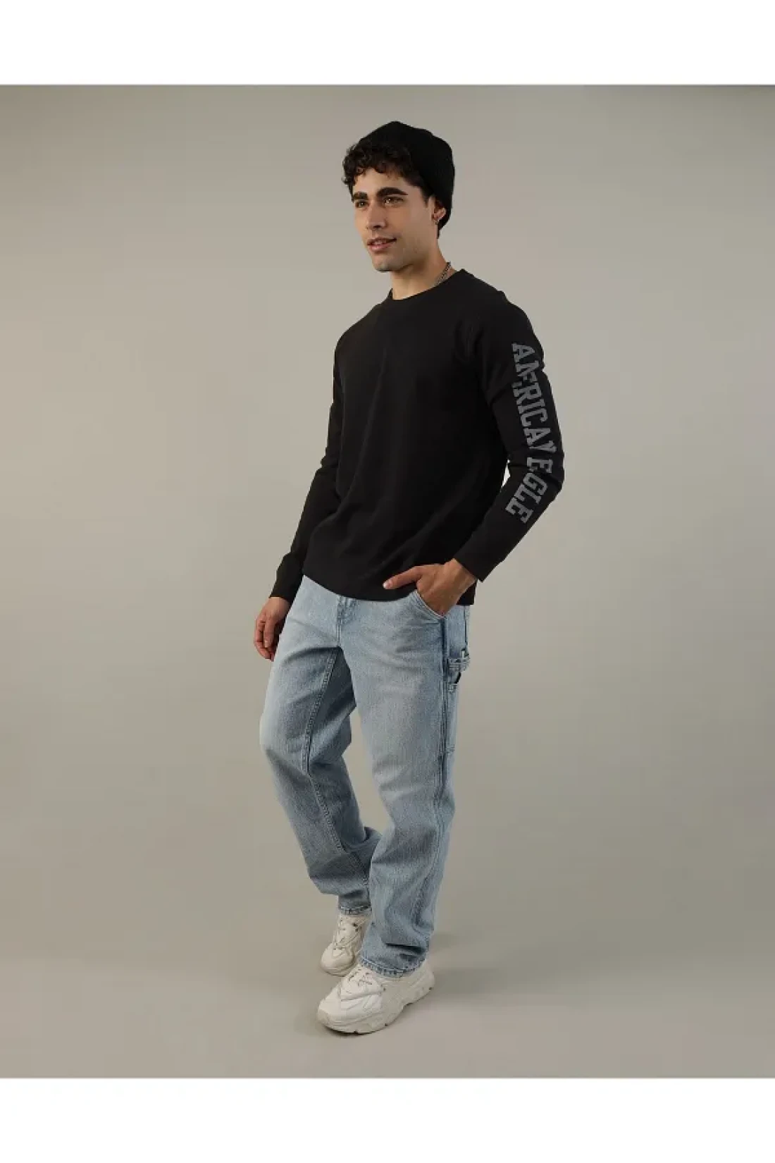 American Eagle تي شيرت حراري بأكمام طويلة ورسومات شعار AE