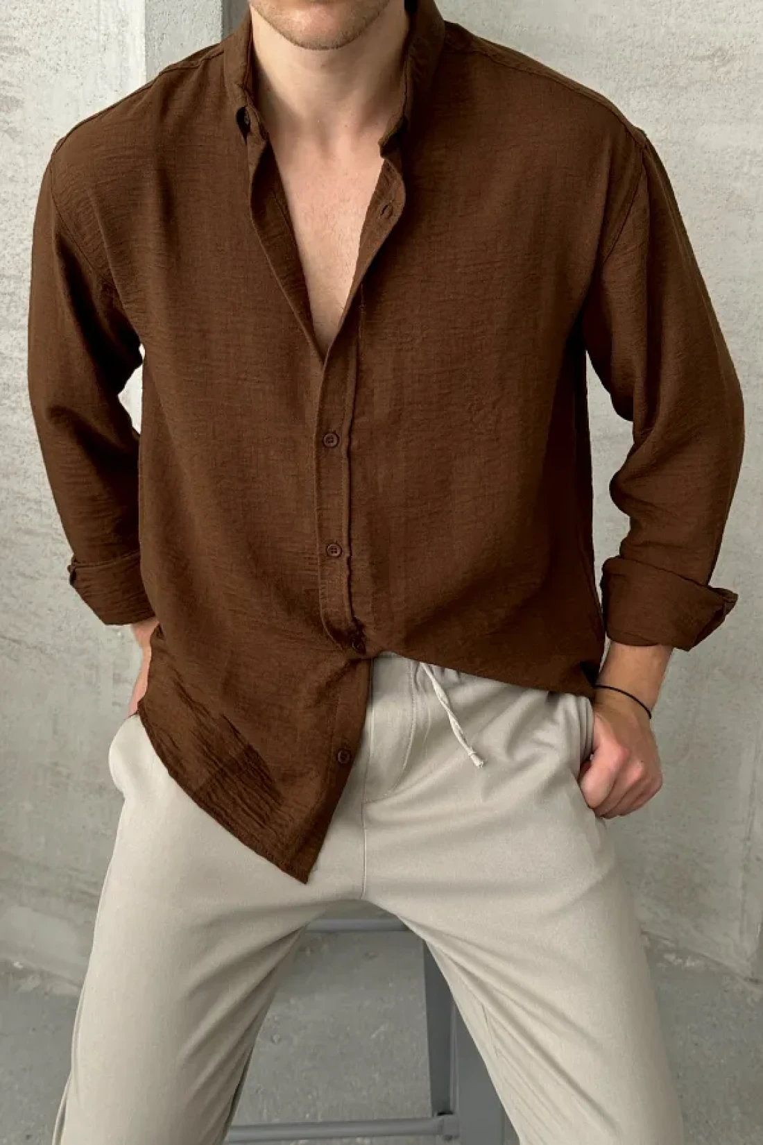 مميزات المنتج: ؛ مظهر متجعد، ؛ تفصيل زر الياقة، ؛ قميص رخامي ملفوف ؛ إنه مصنوع من قماش من الدرجة الأولى لن يجعلك تتعرق، وسيوفر لك مظهرًا خفيفًا وأنيقًا بفضل قماشه القابل للتنفس.