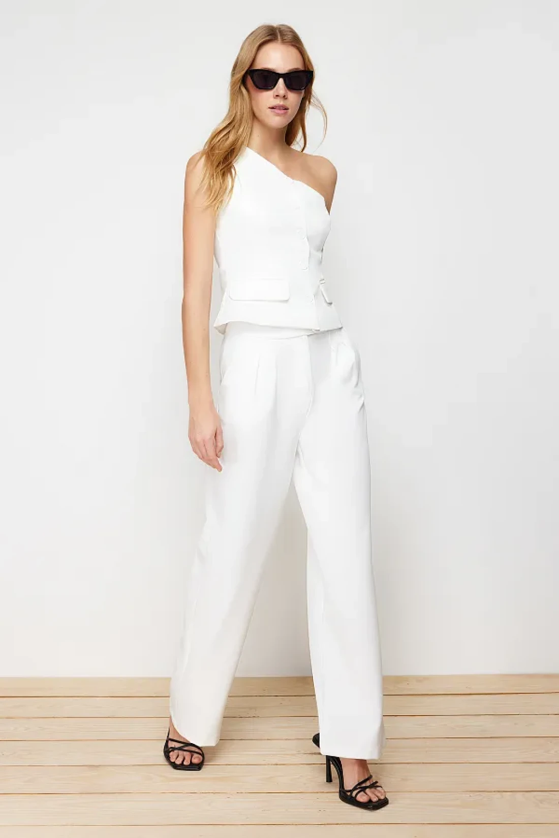 Collection بنطال عالي الخصر واسع الساق من قماش إكرو - TWOAW22PL0066