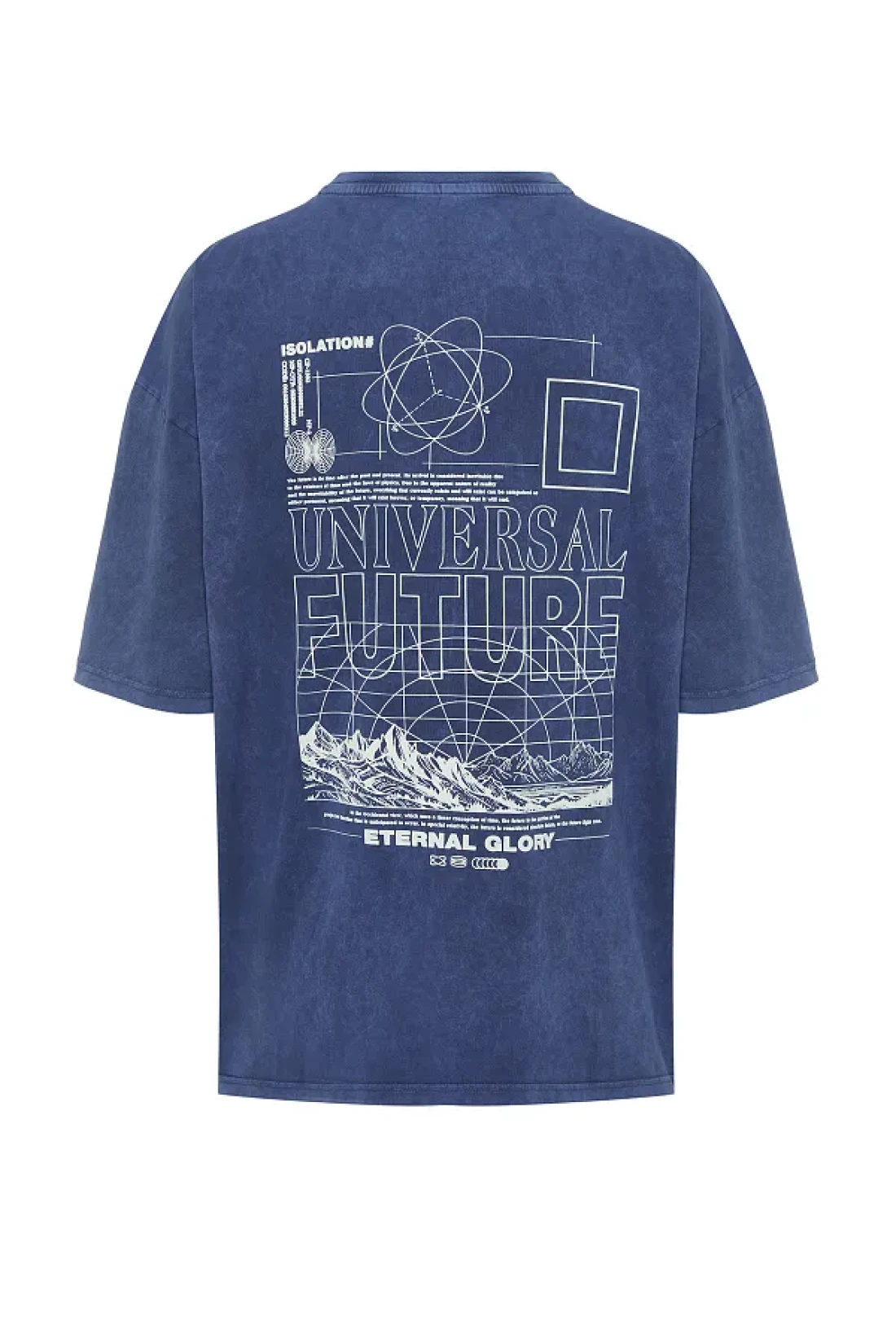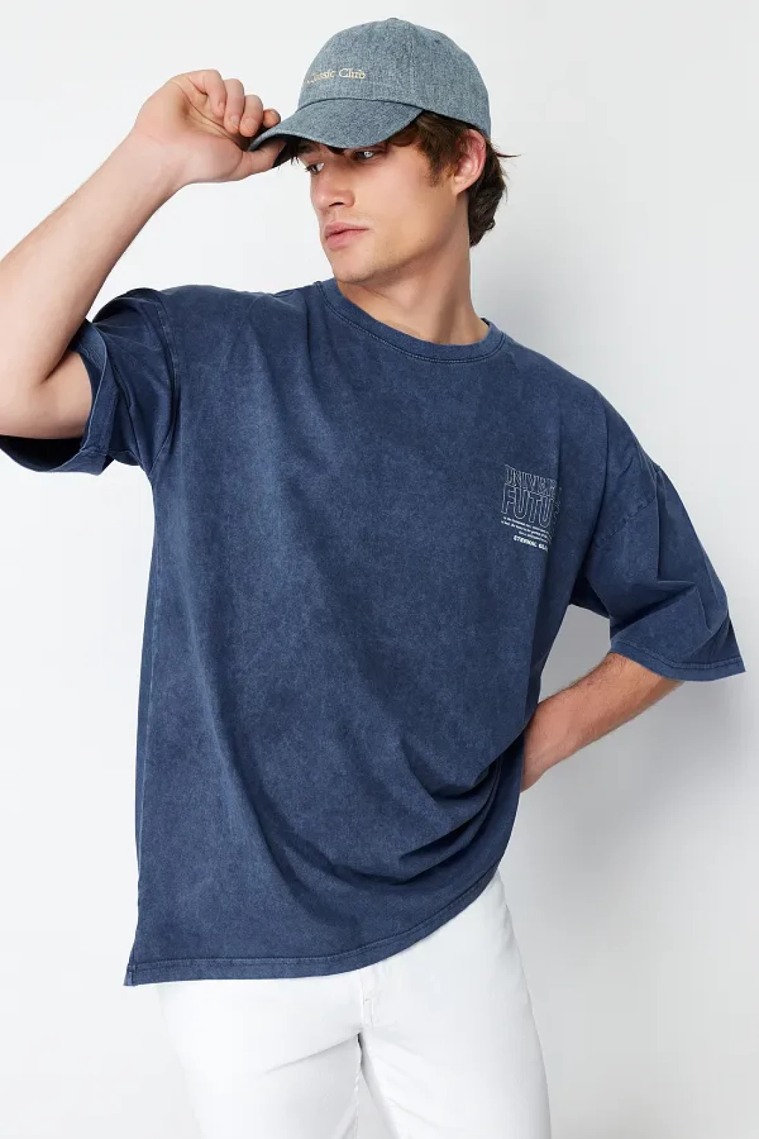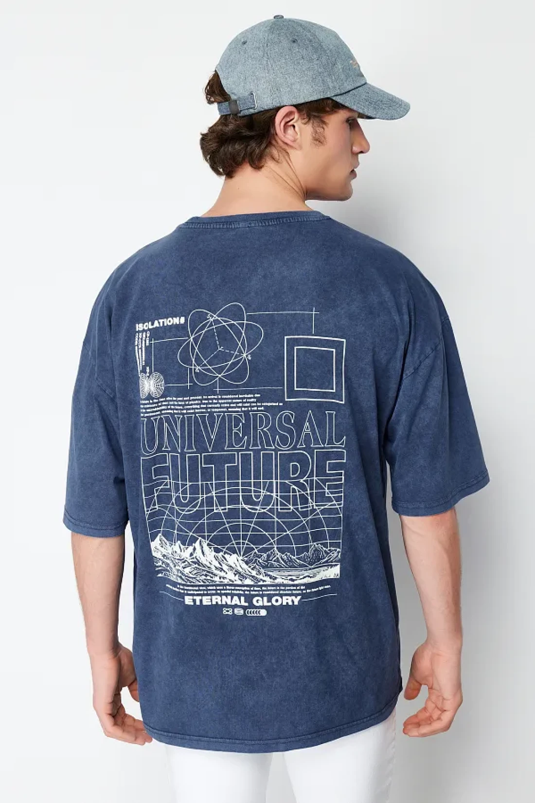 Collection تي شيرت نيلي كبير الحجم/واسع القطع بتأثير شاحب مطبوع عليه حروف 100% قطن TMNSS24TS00043