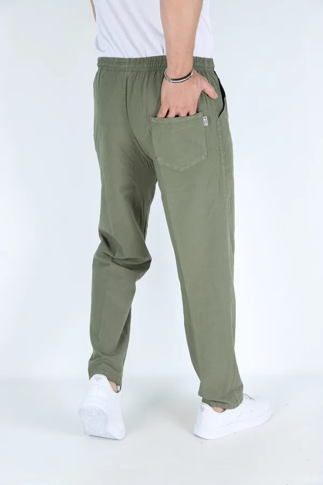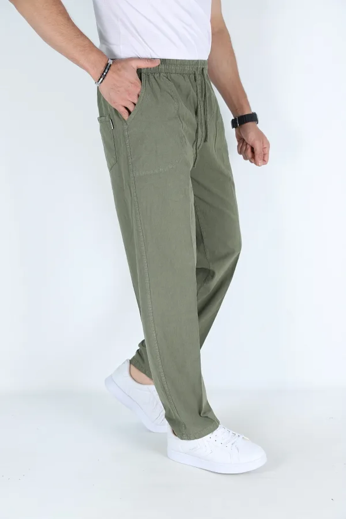 تم إرسال هذا المنتج بواسطة WHITEWHOLESALE TEXTILE. البنطلون الكاكي الأخضر للجنسين من الكتان الخام، الذي يعطي الأولوية للراحة الشخصية بتصميمه الخصر المربوط، يناسب جميع أنواع الأنشطة اليومية. بفضل قصته الأنبوبية، يقدم مظهرًا عصريًا وأنيقًا، بينما يسمح أيضًا بالحركة المريحة.