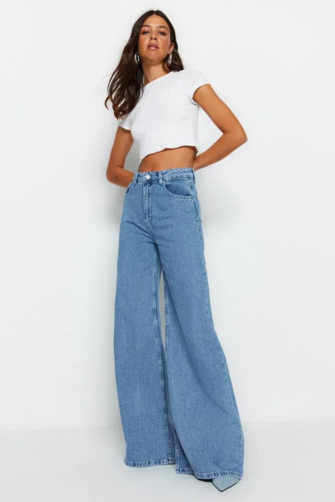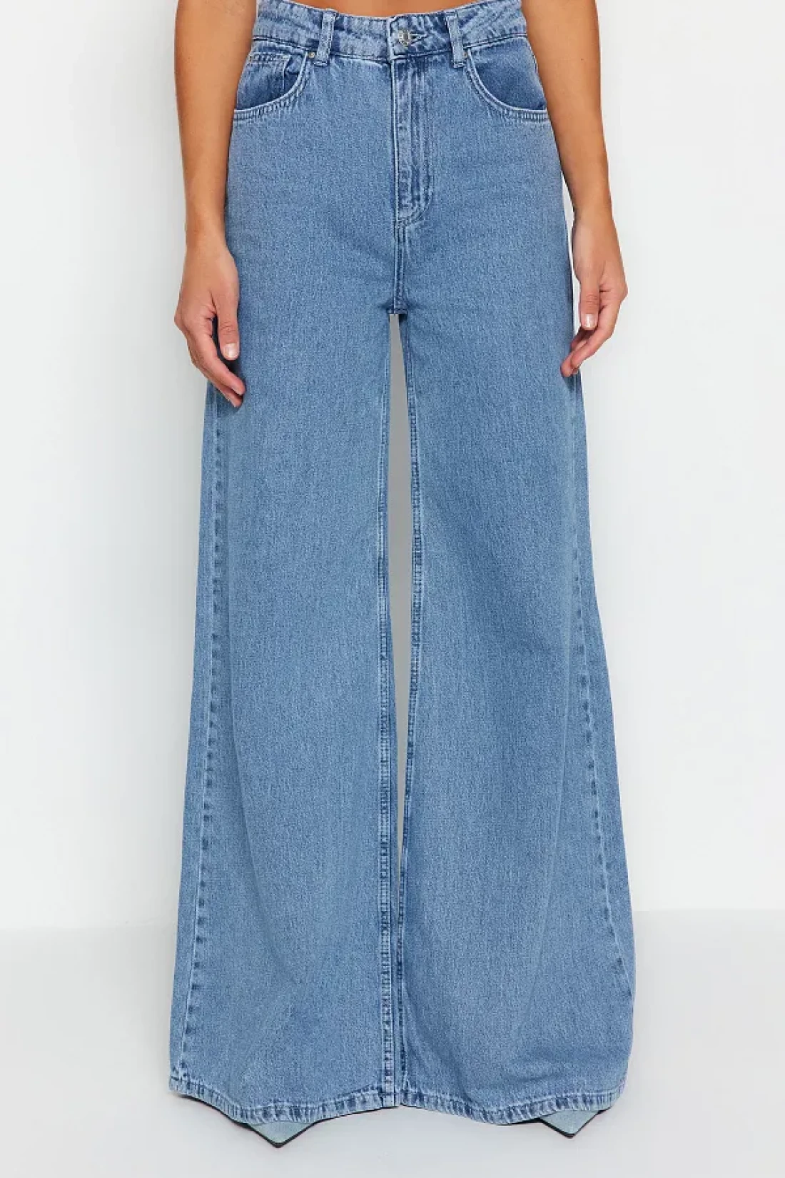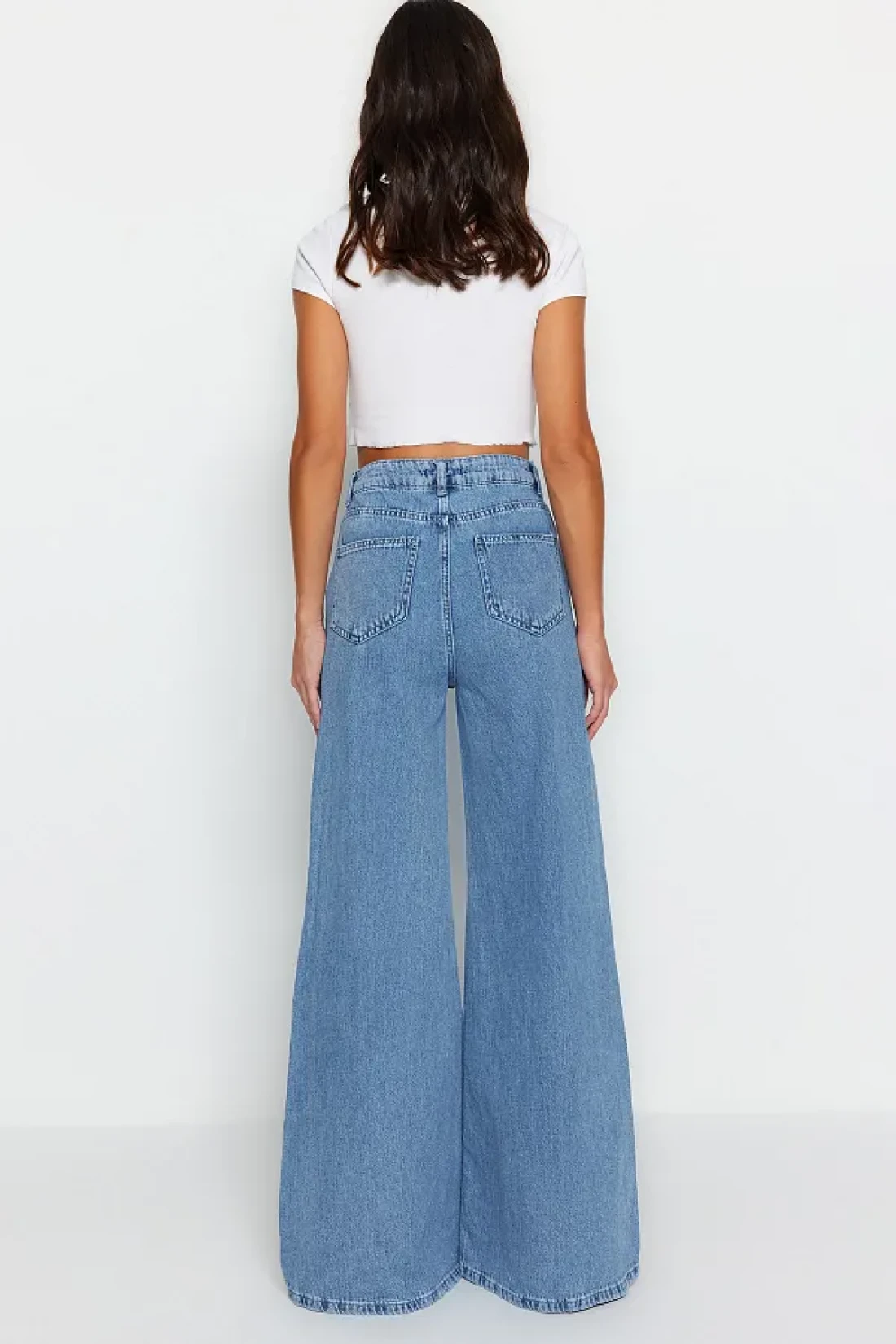 Collection جينز بالازو أزرق عالي الخصر وواسع الساق - TWOSS23JE00286