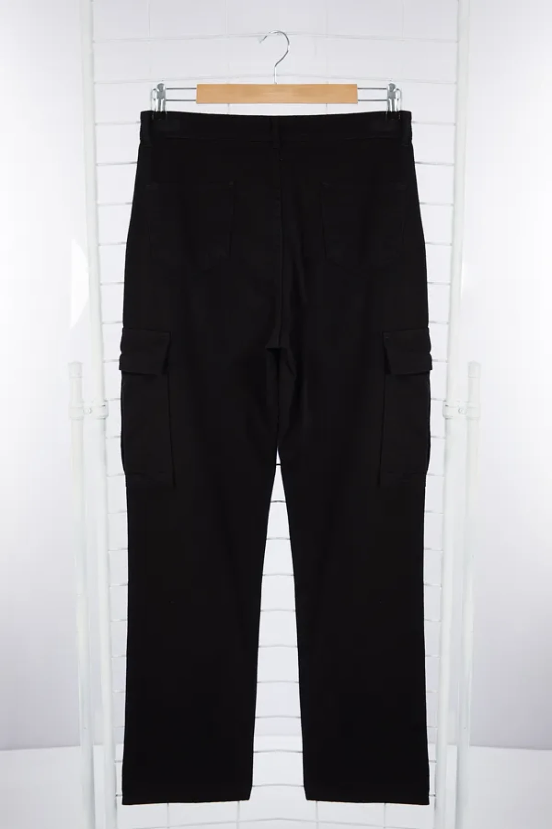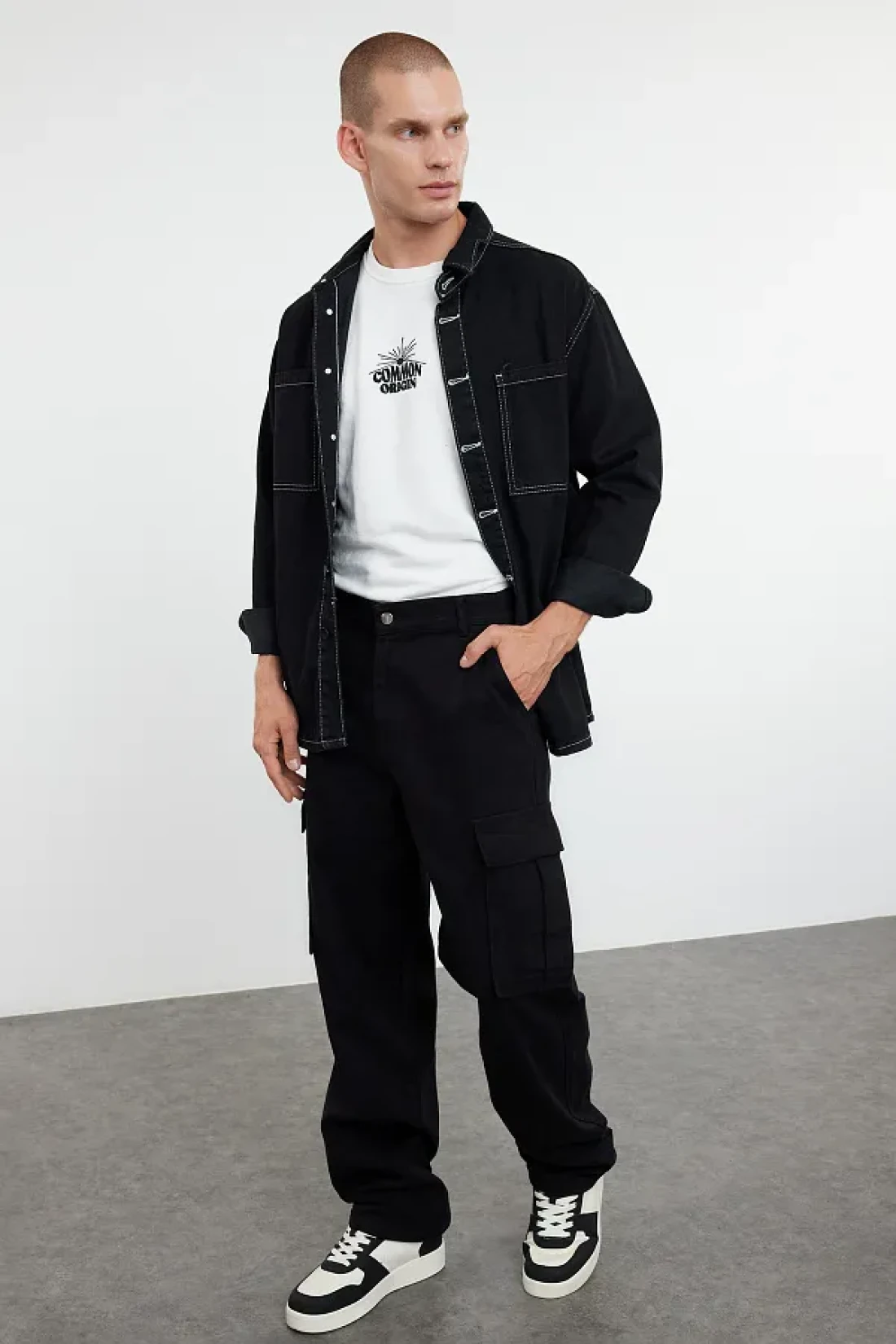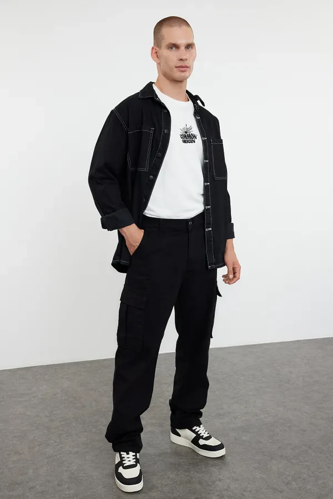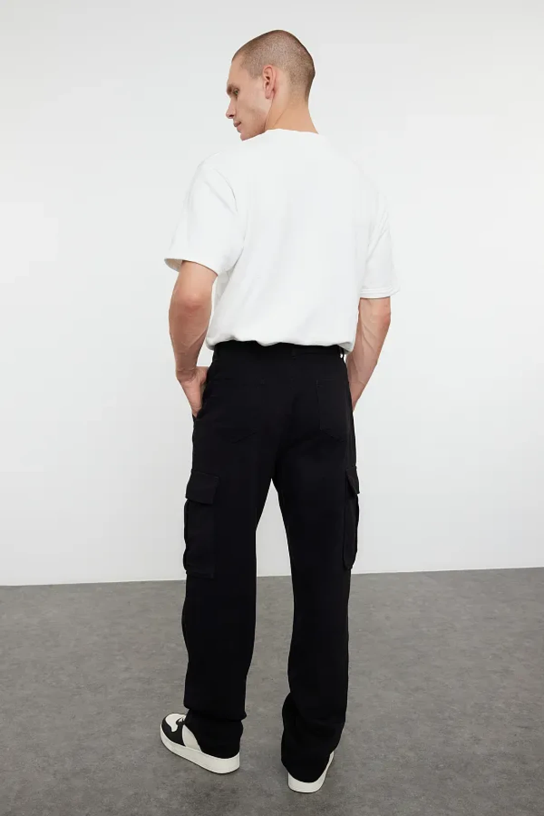 Collection بنطال قطني أسود بجيب كارجو، فضفاض/فضفاض ومشدود TMNSS24PL00021