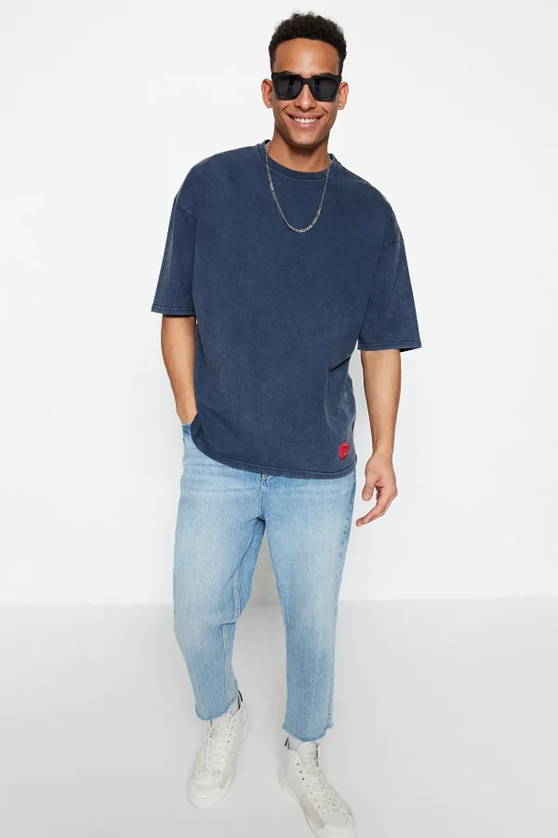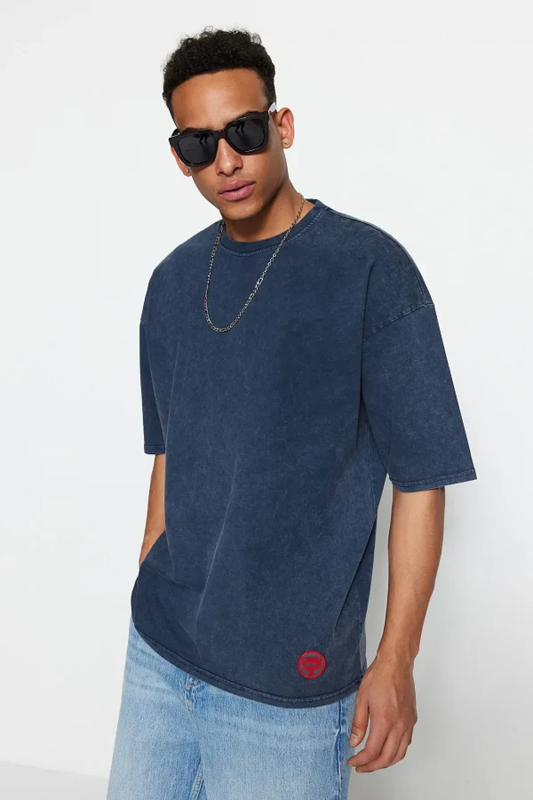 Collection تي شيرت إنديجو كبير الحجم 100% قطن بتأثير باهت PremiumTMNSS23TS00153