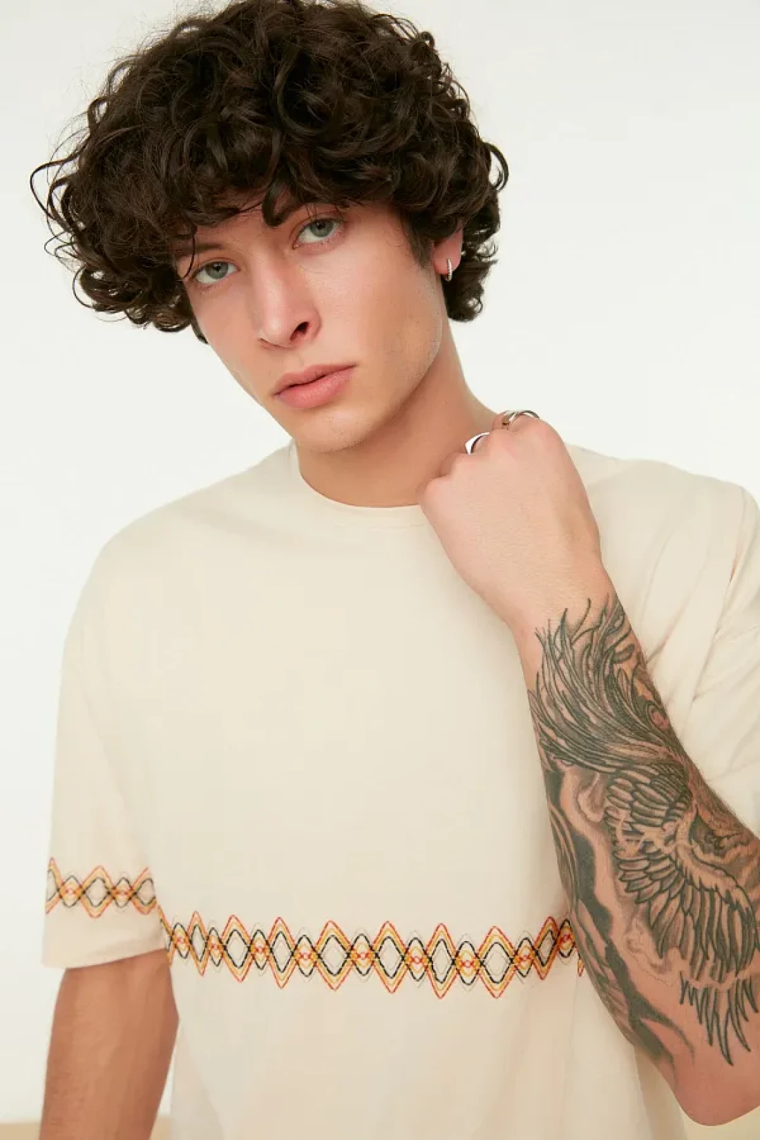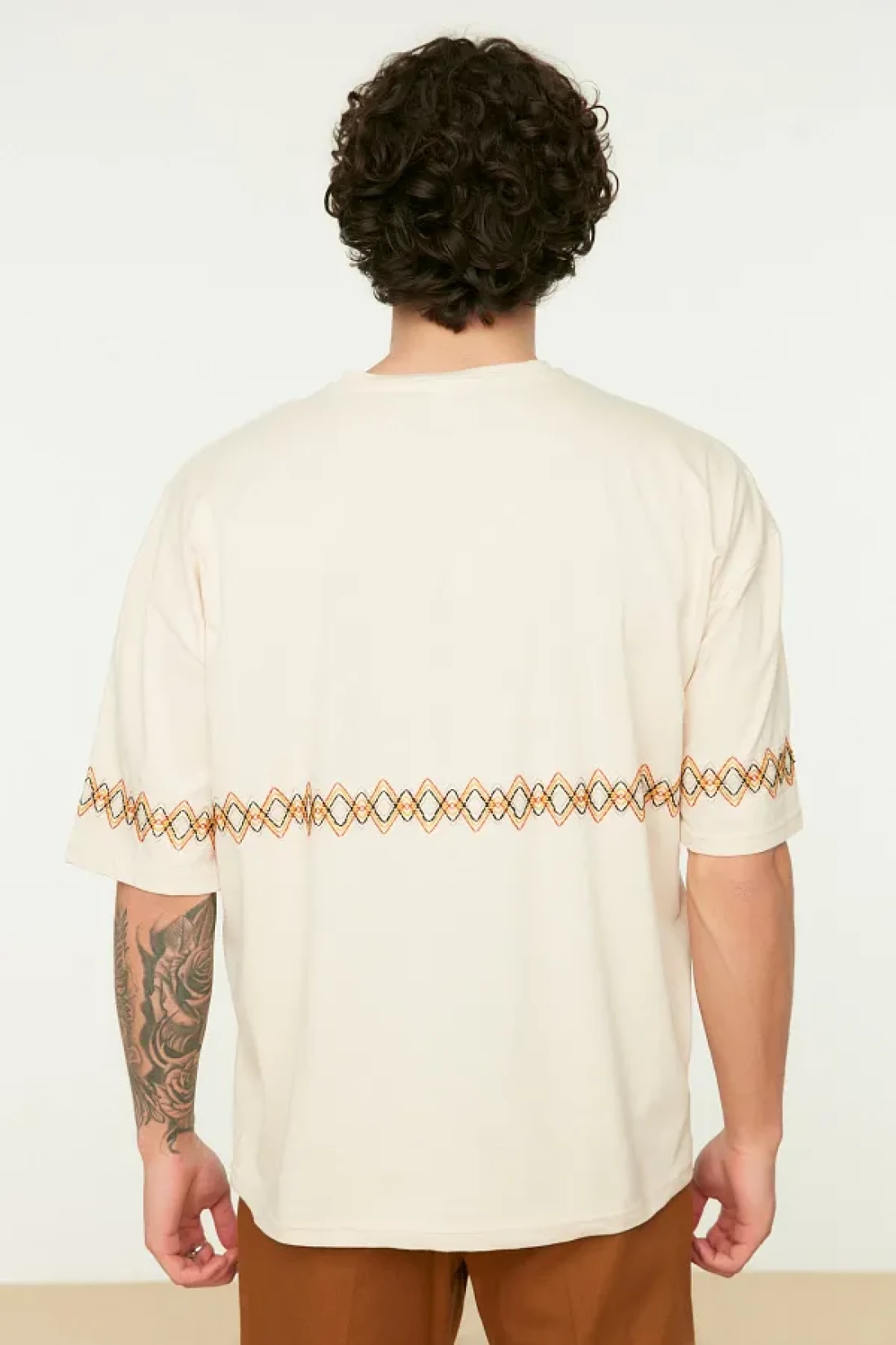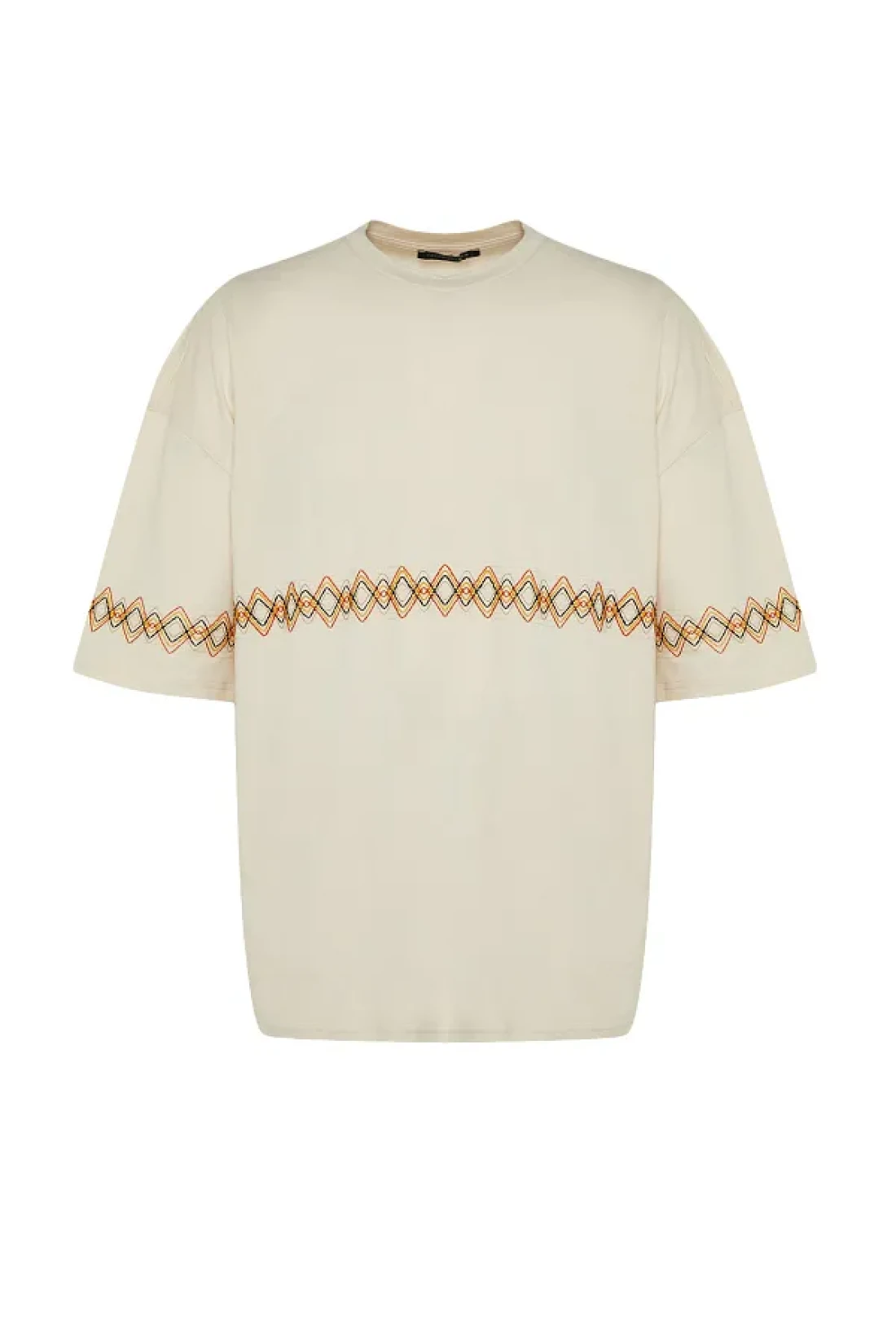 Collection تي شيرت قطني مطرز بأكمام قصيرة مقاس كبير - TMNSS21TS1889