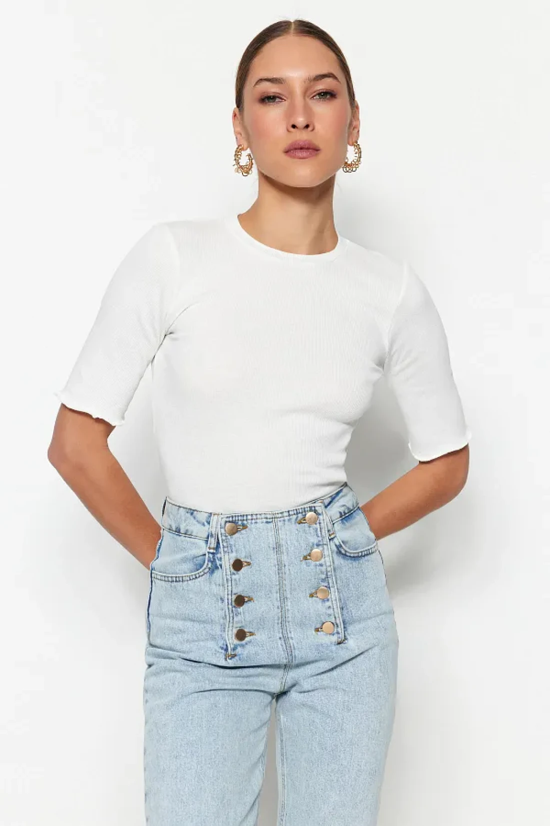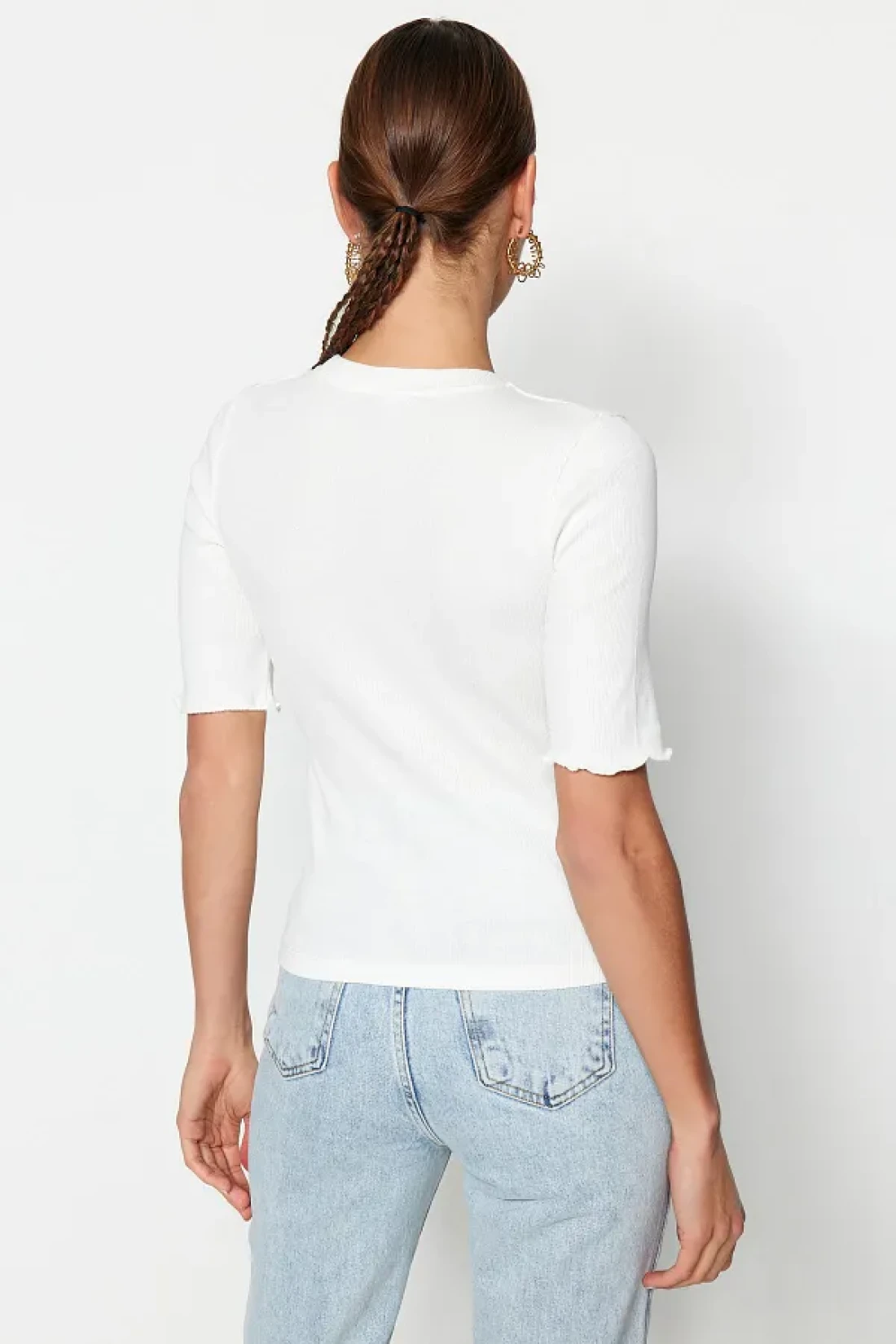 Collection بلوزة محبوكة قابلة للتمدد برقبة دائرية قابلة للتمدد من إكرو TWOSS23BZ00025