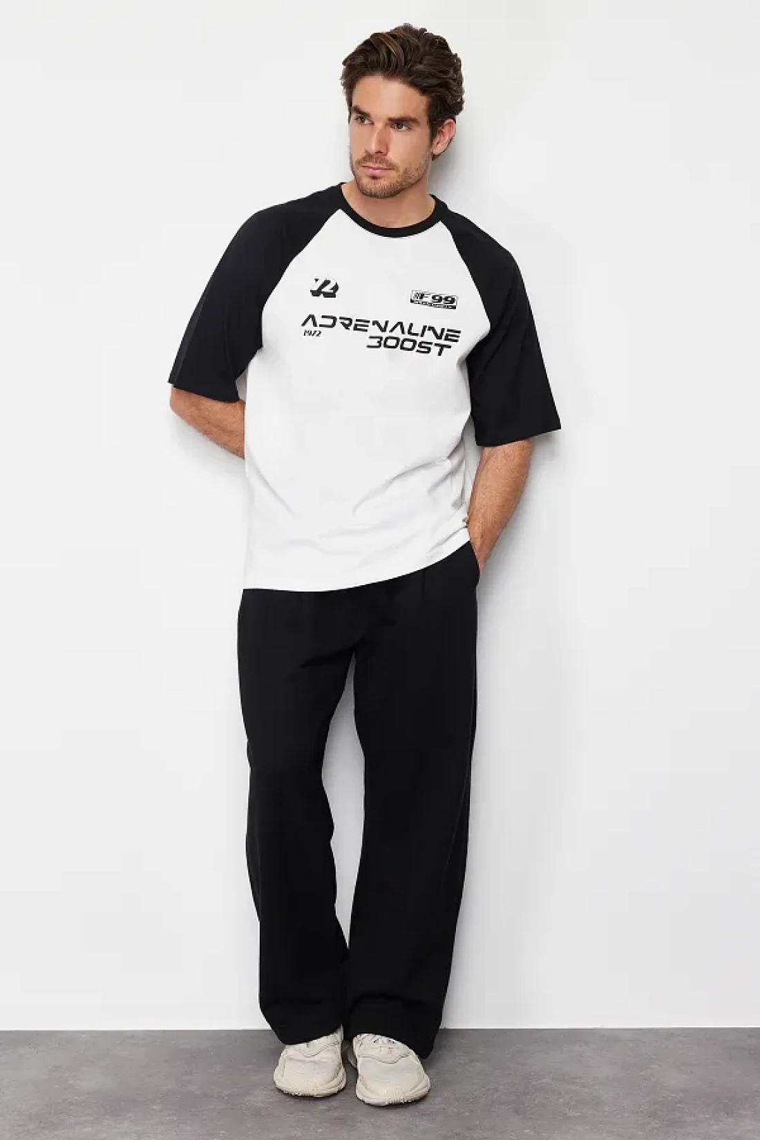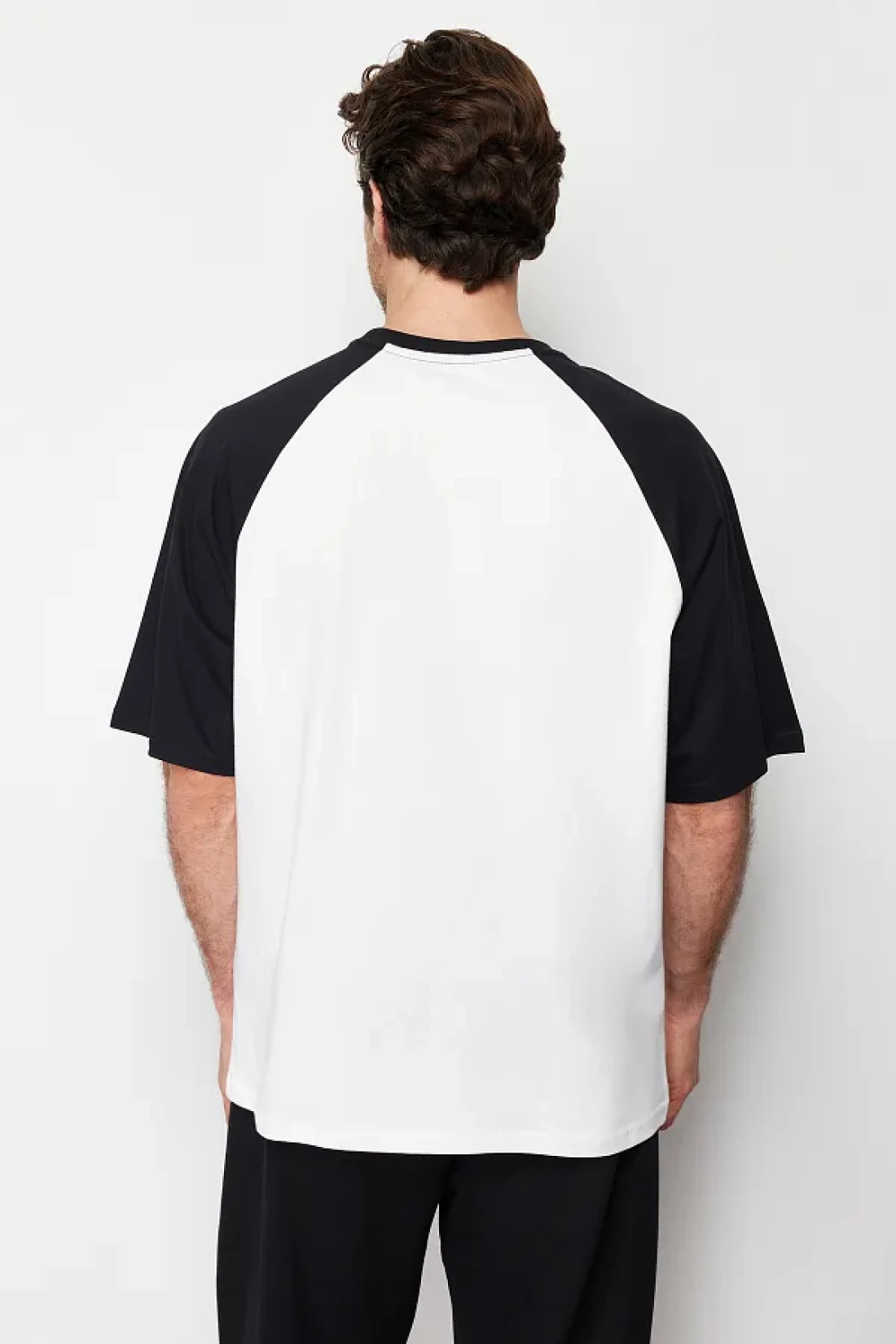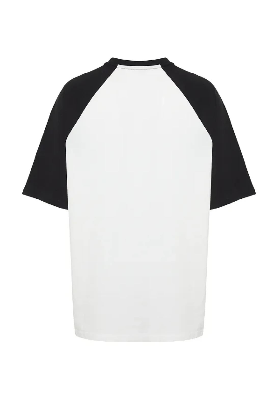 Collection تي شيرت أسود كبير الحجم/واسع القطع 100% قطن مطبوع من نسيج توك TMNSS24TS00139