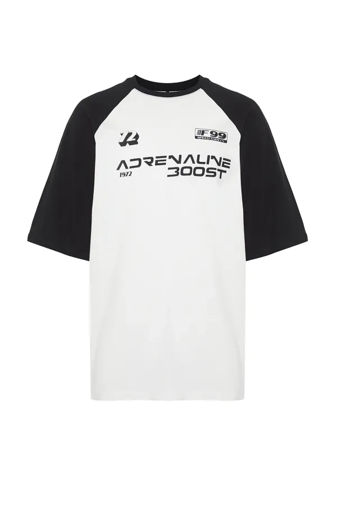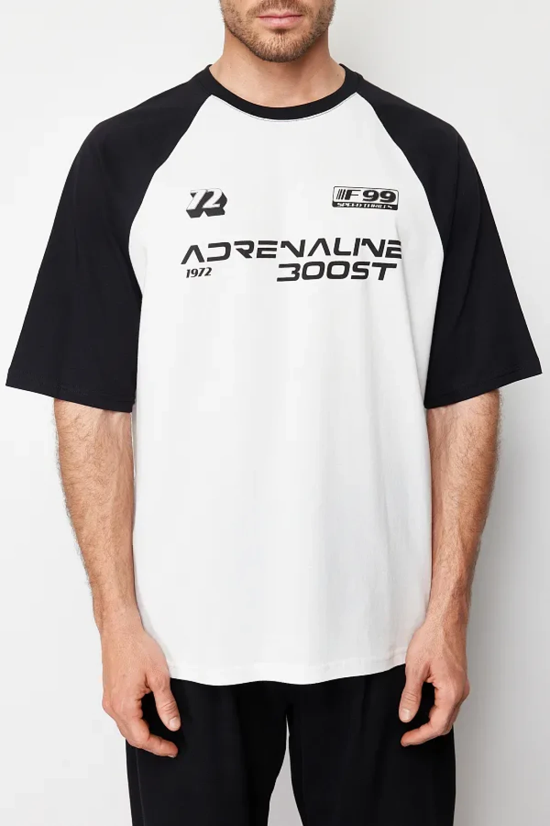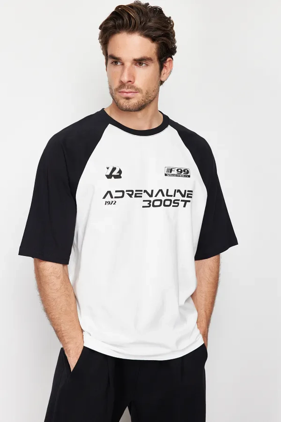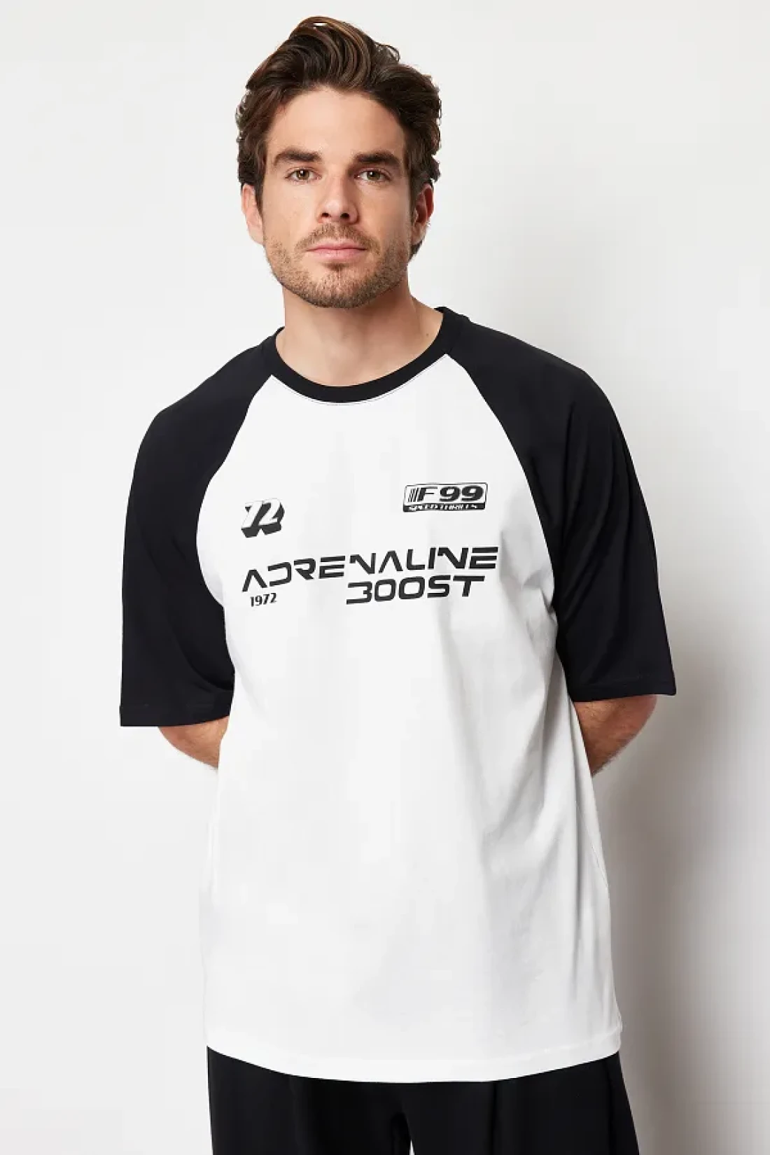 Collection تي شيرت أسود كبير الحجم/واسع القطع 100% قطن مطبوع من نسيج توك TMNSS24TS00139