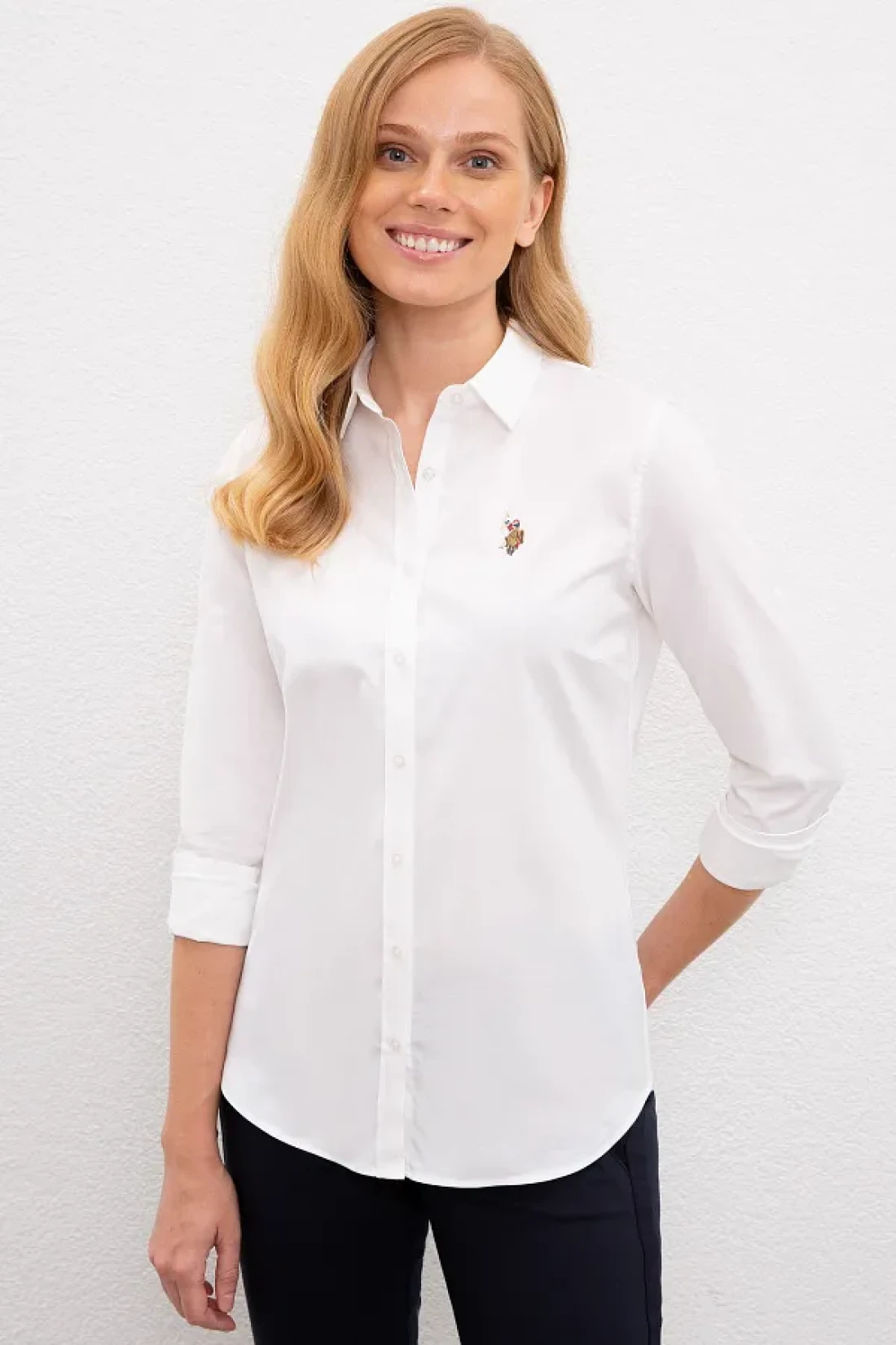 U.S. Polo Assn. قميص نسائي أبيض منسوج