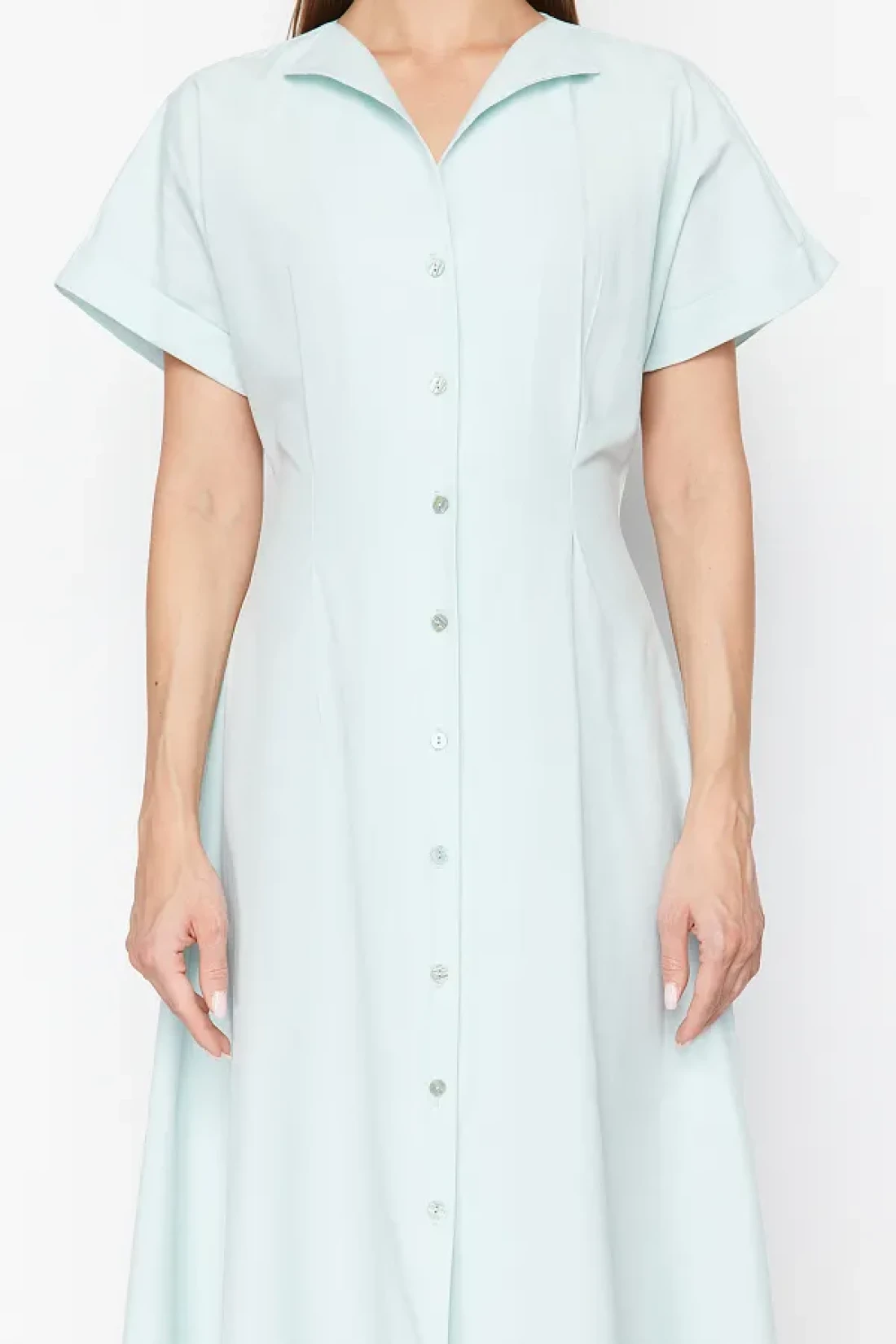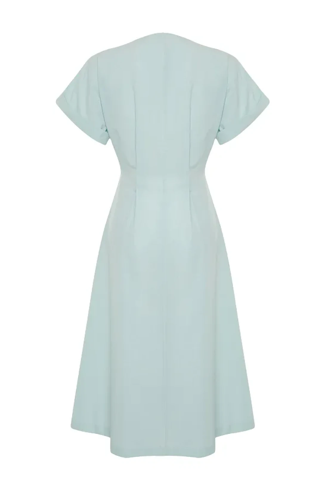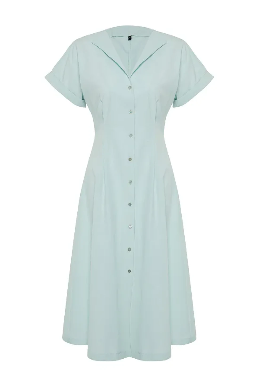 Collection فستان قميص منسوج متوسط الطول بفتحة خصر بلون النعناع TWOSS24EL00052
