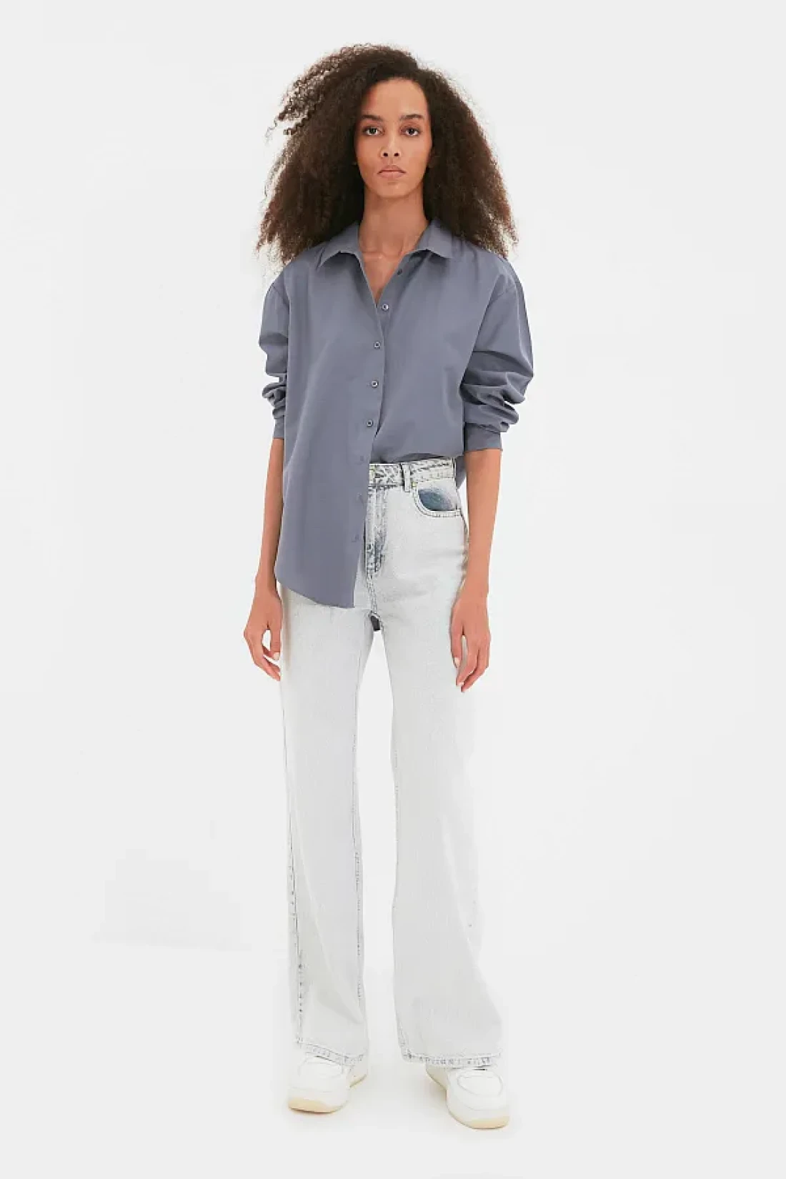 Collection قميص منسوج قطني فضفاض من أنثراسايت TWOAW20GO0107