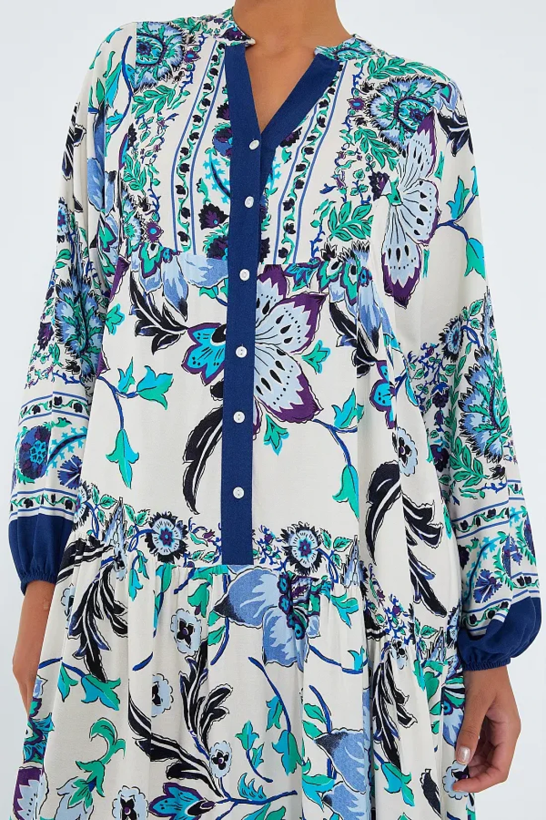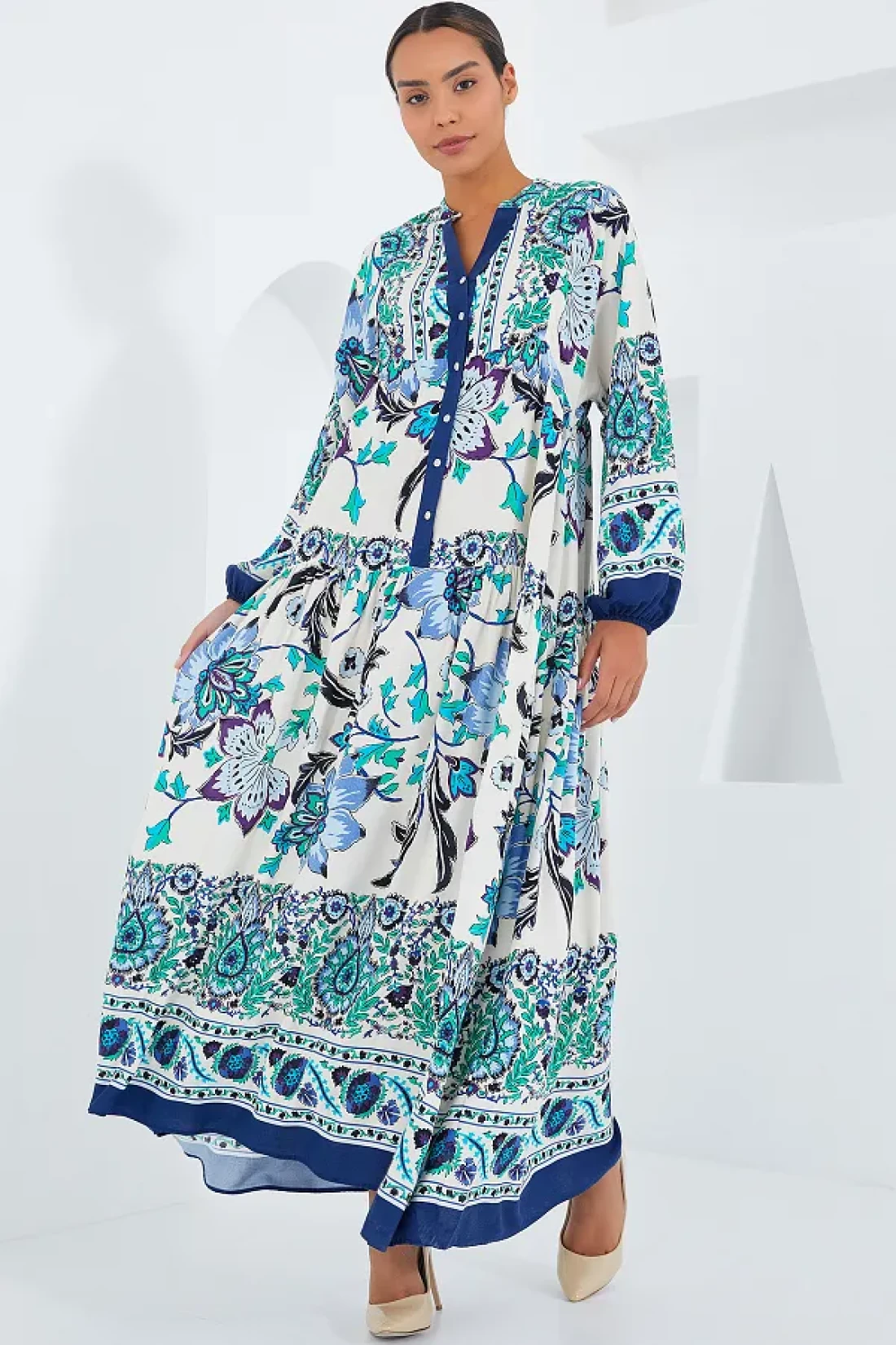 إنه يوفر استخدامًا مريحًا ويزيد من المتانة بفضل هيكل القماش المنسوج. يتميز بملمسه الناعم وقابليته للتهوية بفضل مكونه المادي الفسكوزي بنسبة 100%. يوفر المقاس العادي حرية الحركة المريحة ويحتضن خطوط الجسم بلطف؛ مع تصميمه الصغير الحجم، يوفر مظهرًا حديثًا وأنيقًا، ويتناسب بسهولة مع تركيبات مختلفة. توفر هيكلتها النمطية الأصيلة، التي تجمع بين الزخارف التقليدية والخطوط الحديثة، مظهرًا أنيقًا. من السهل العناية به وفقًا لتعليمات الغسيل من النوع 0؛ وبالتالي يحافظ على ثوبك مثل اليوم الأول. لديها مجموعة واسعة من المستخدمين بتصميمها الذي يناسب جميع الفئات العمرية.