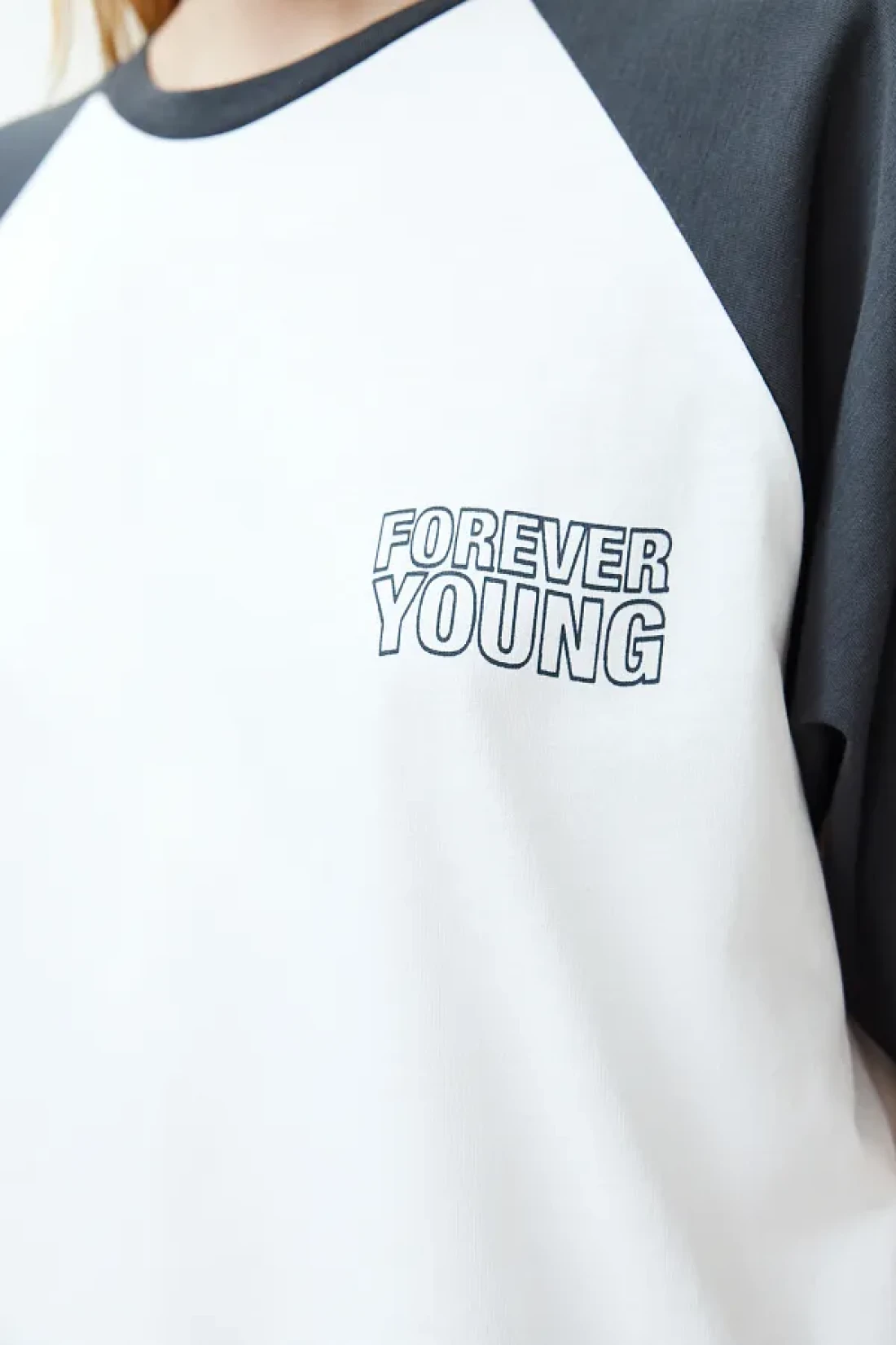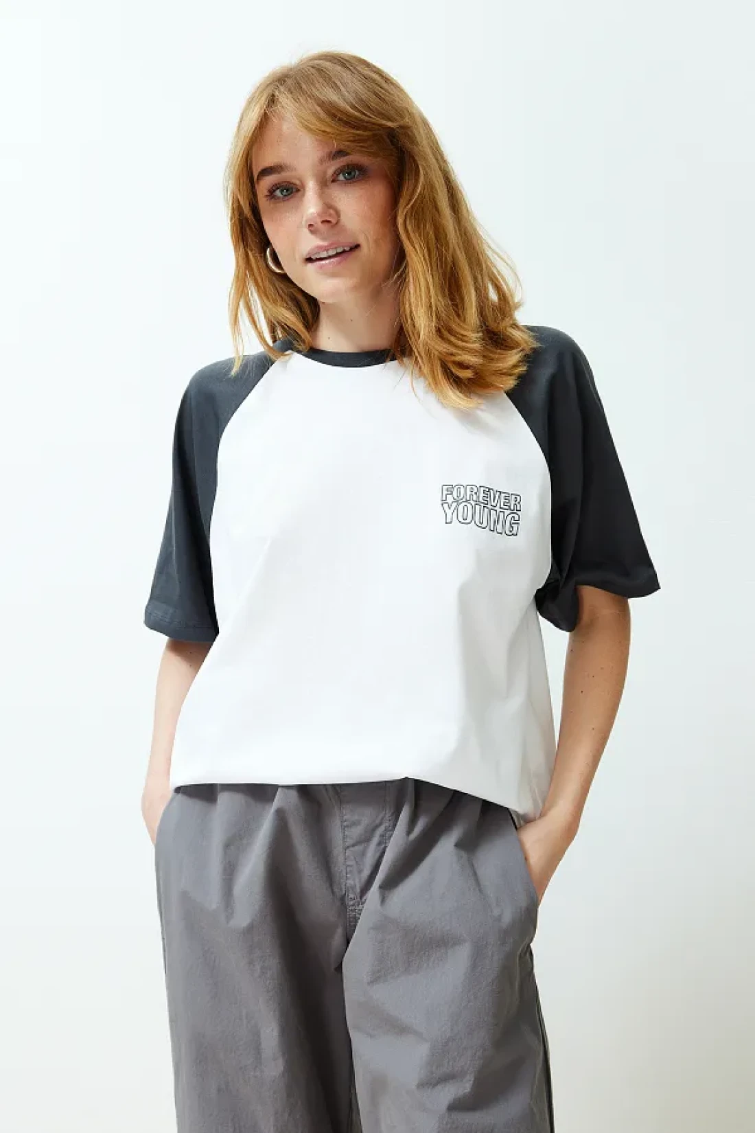 Collection تي شيرت أبيض 100% قطن محبوك بشعار مريح/مريح TWOSS24TS00134