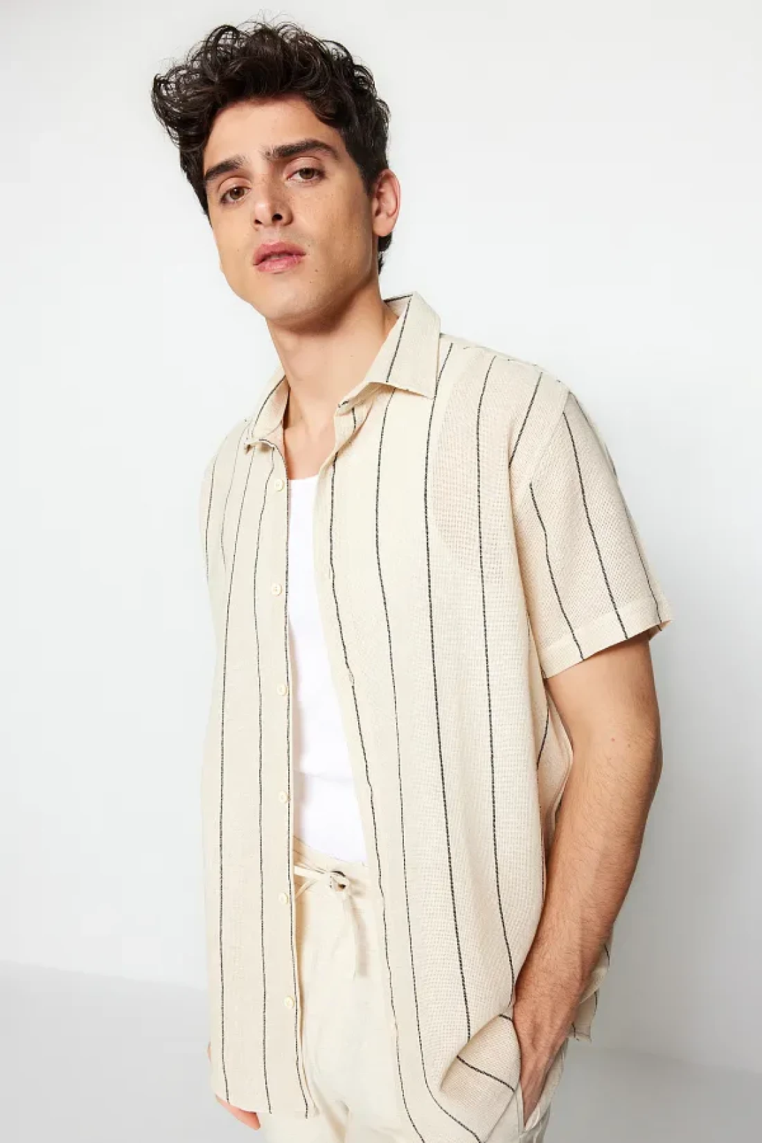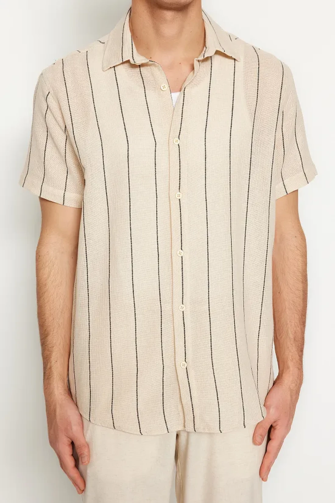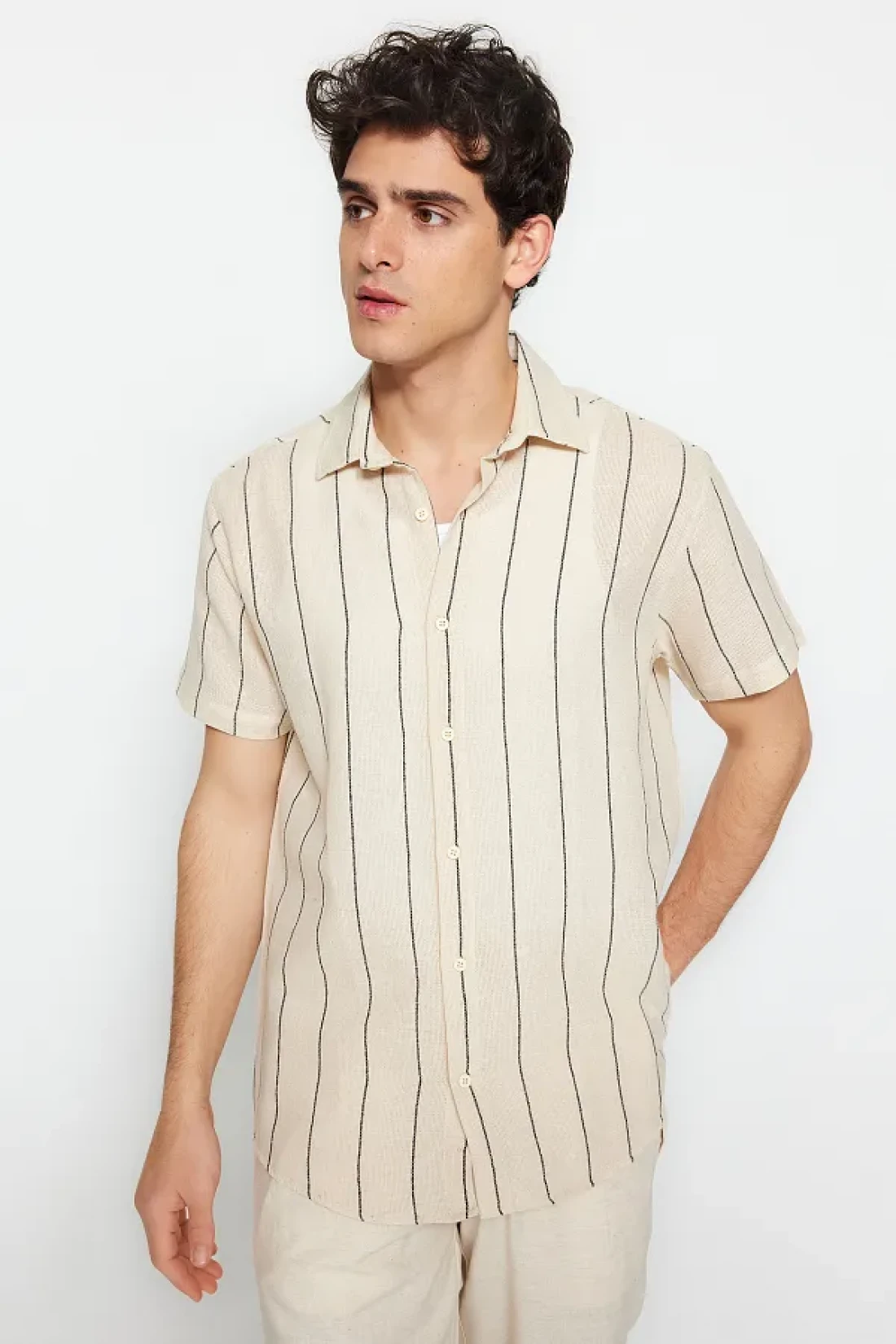 Collection قميص صيفي مخطط باللون الأسود الفاخر TMNSS23GO00063
