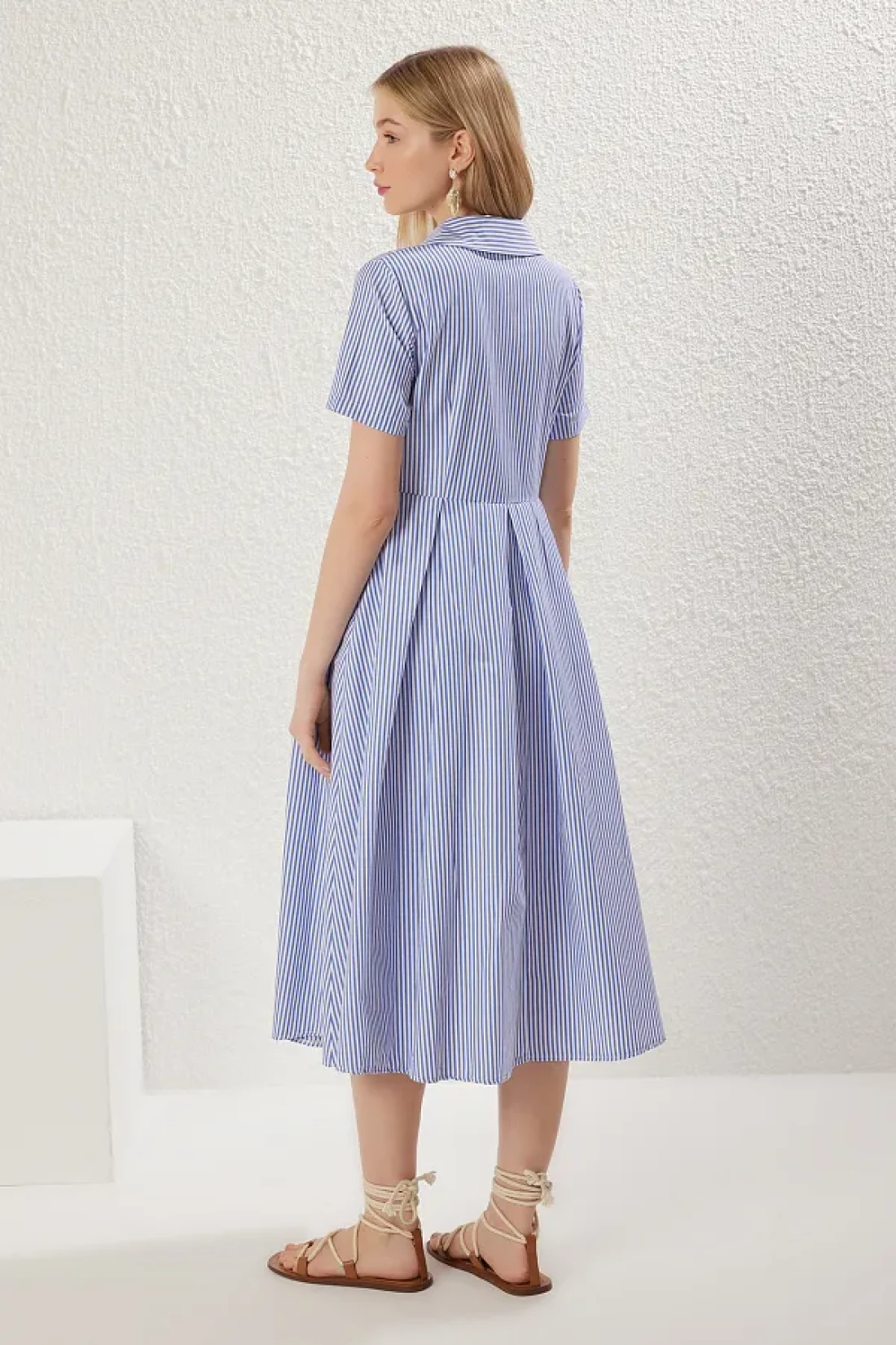 Collection تنورة مخططة باللون الأزرق حول فستان قفطان متوسط الطول بنصف فتحة