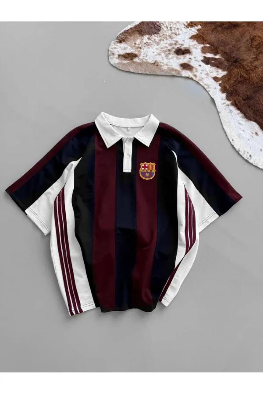 ozcelf تي شيرت كبير الحجم للجنسين برشلونة بولو بياقة مطرزة