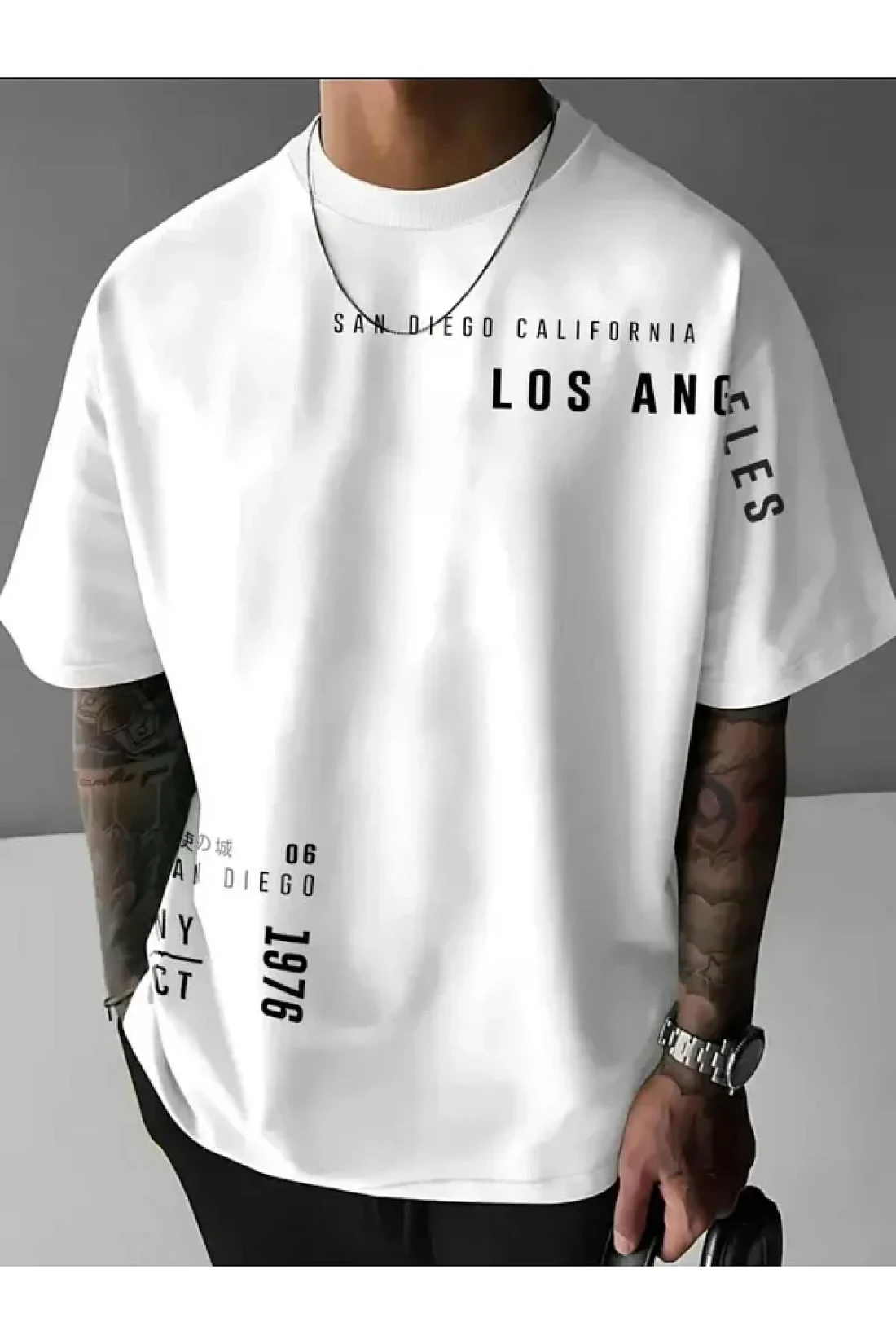 BENROMA 1 تي شيرت هدية عند شراء 6 أو أكثر في العربة - تي شيرت كبير الحجم مطبوع للجنسين من لوس أنجلوس