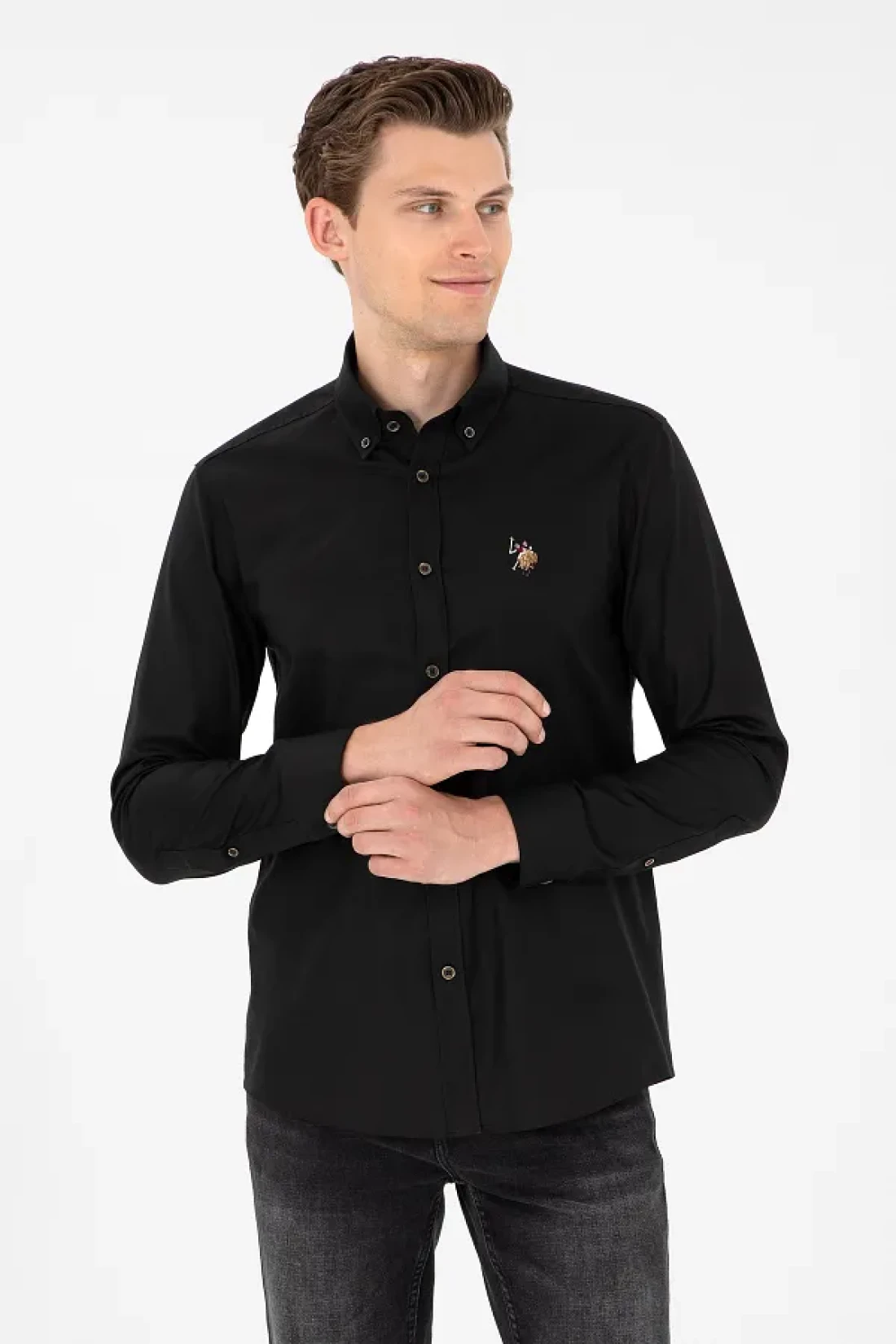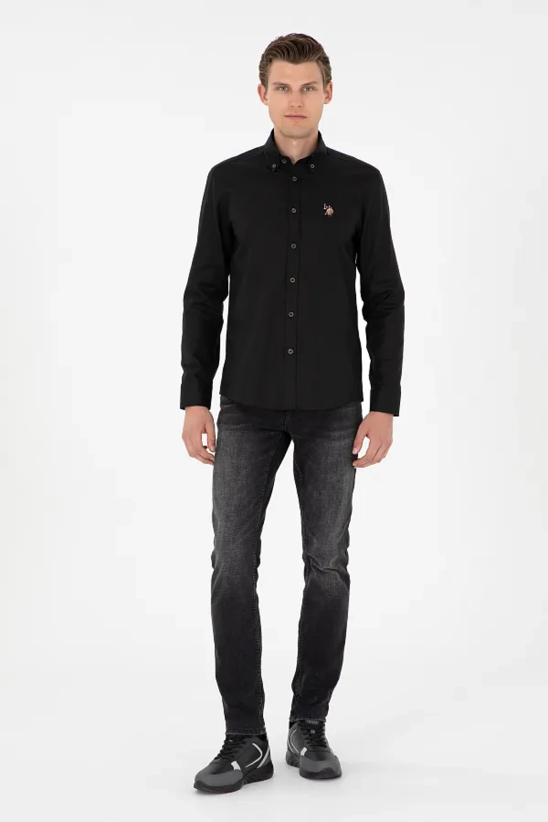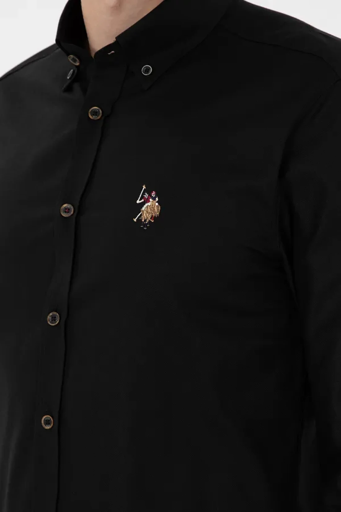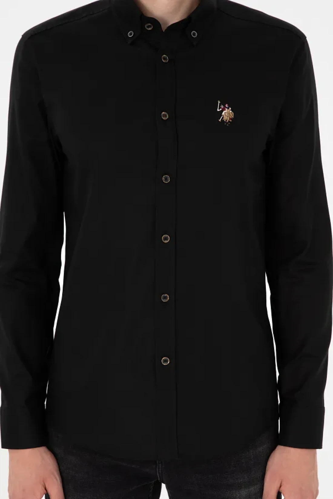 U.S. Polo Assn. قميص أساسي أسود بأكمام طويلة للرجال 50293847 -VR046