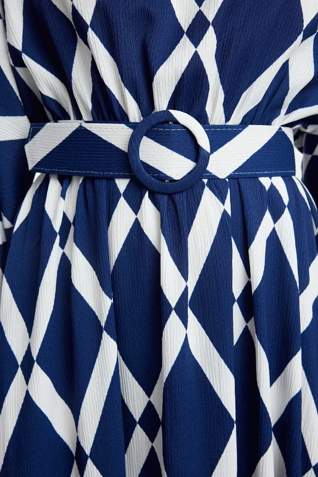 Modest فستان منسوج مجعد باللون الأزرق الداكن - تفاصيل الحزام TCTSS24EB00233