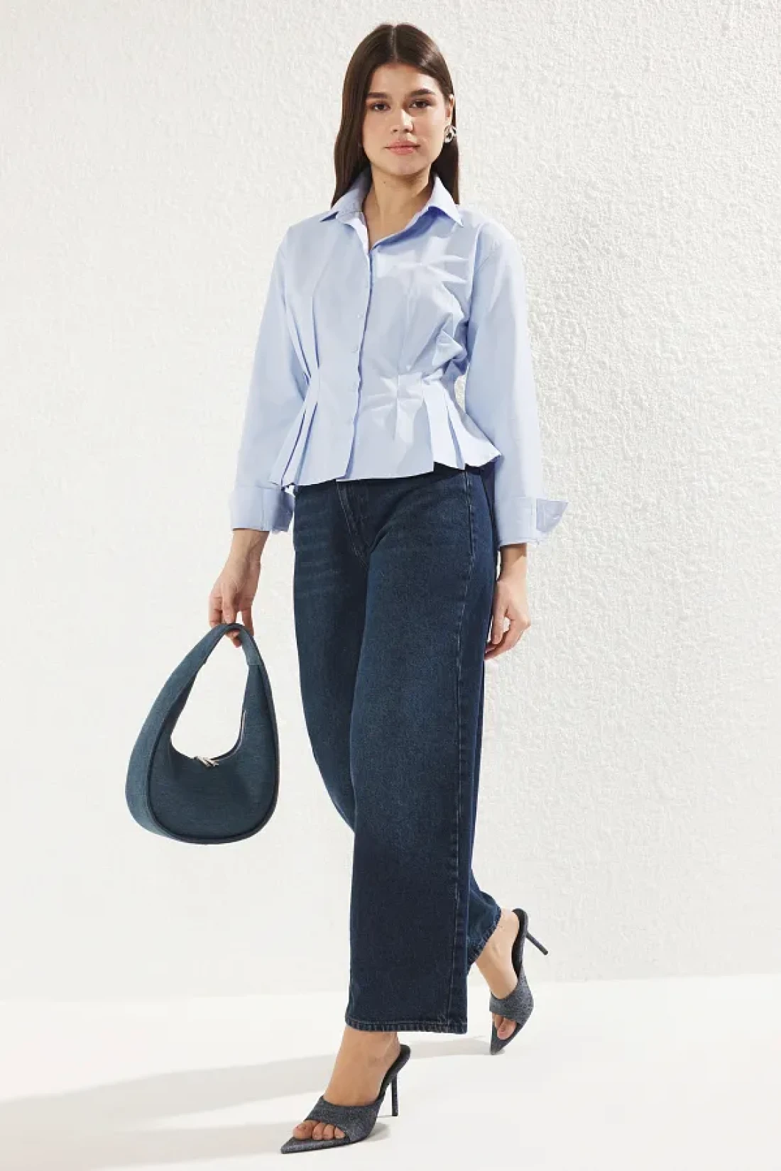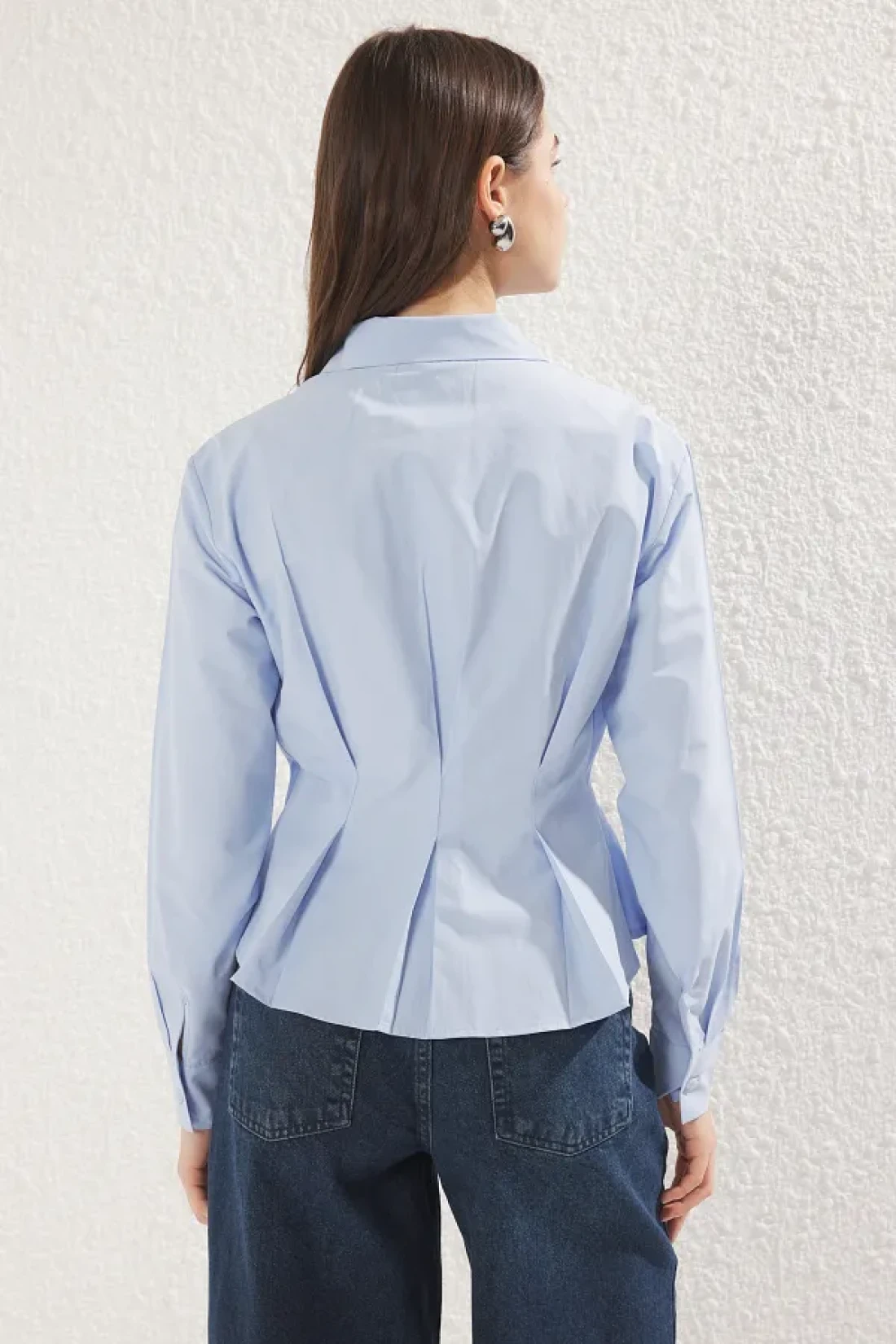 Collection قميص منسوج باللون الأزرق الفاتح/الخصر TWOAW24GO00186