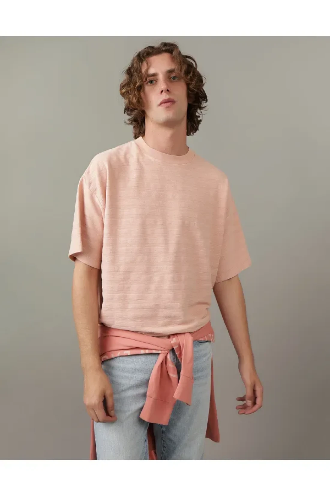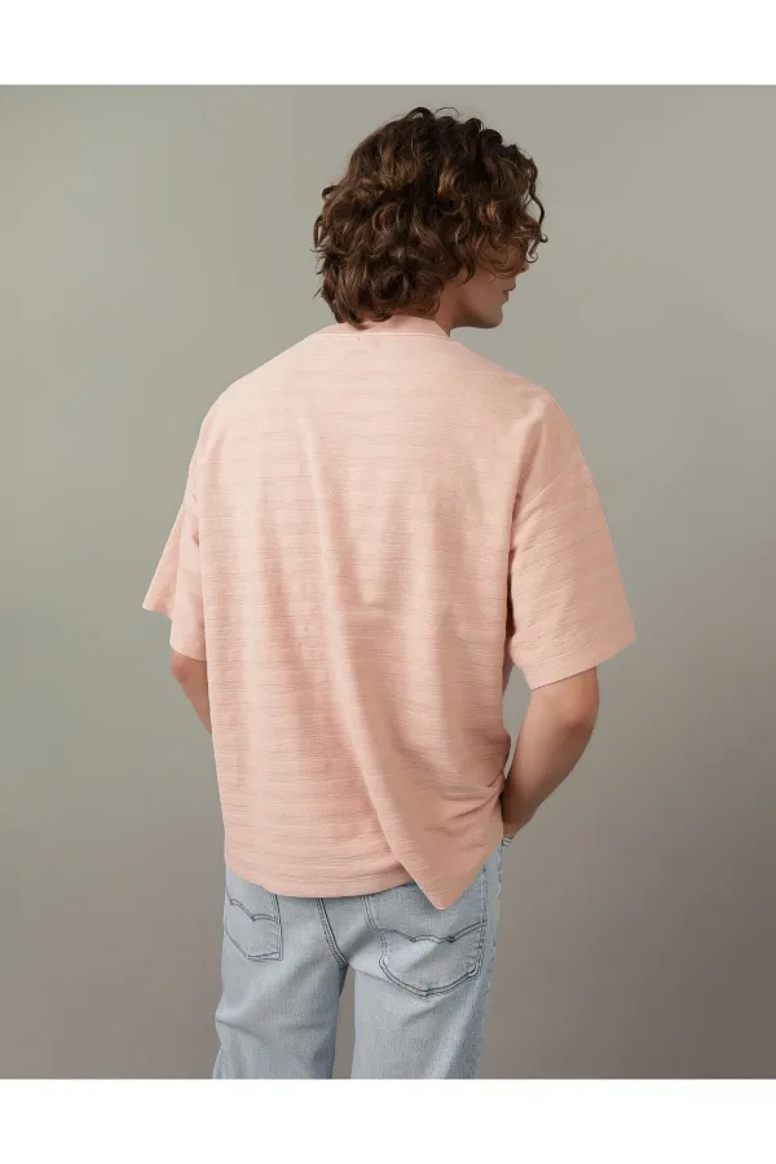 American Eagle تي شيرت AE مخطط وملمس كبير الحجم - U-1164-3634-615