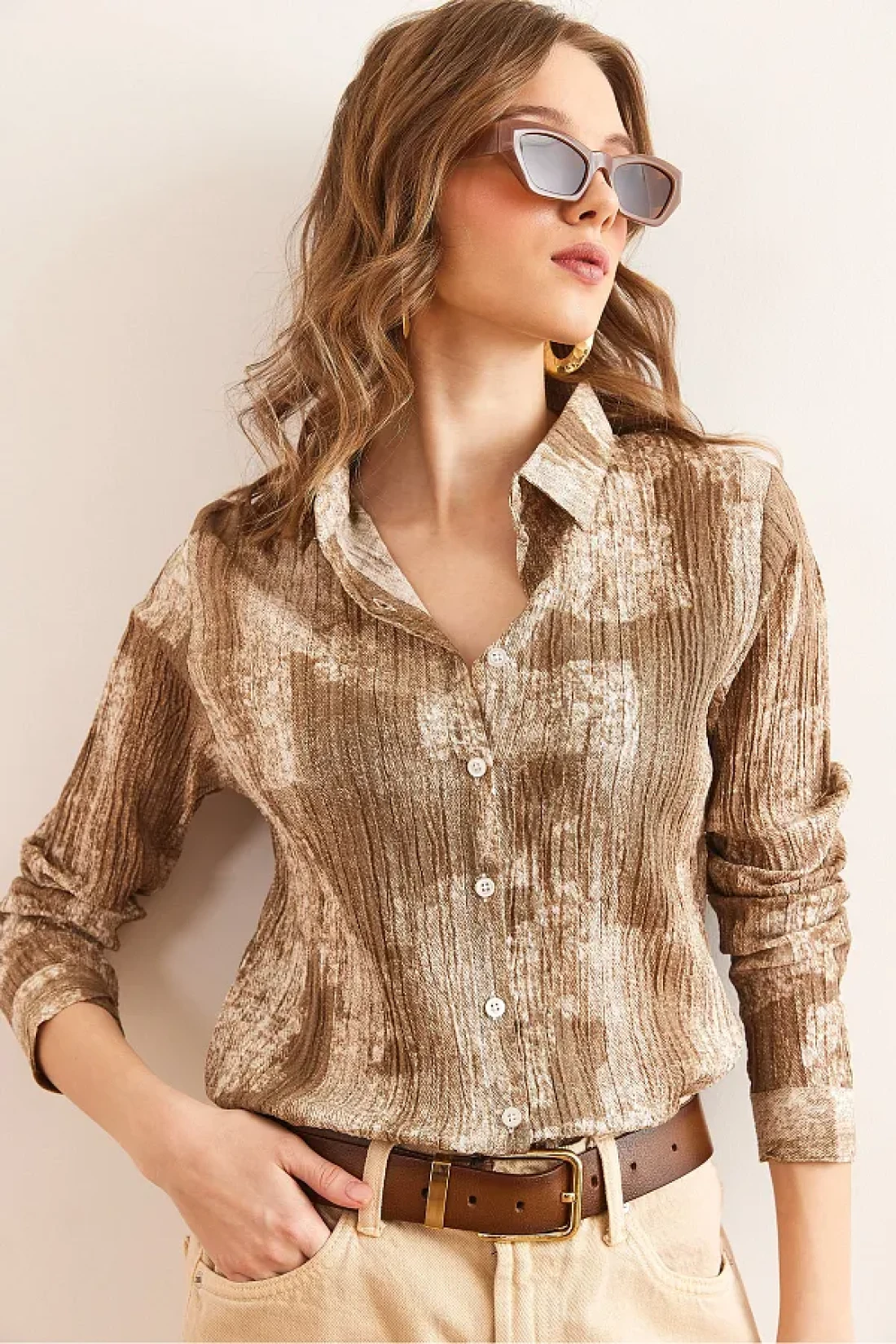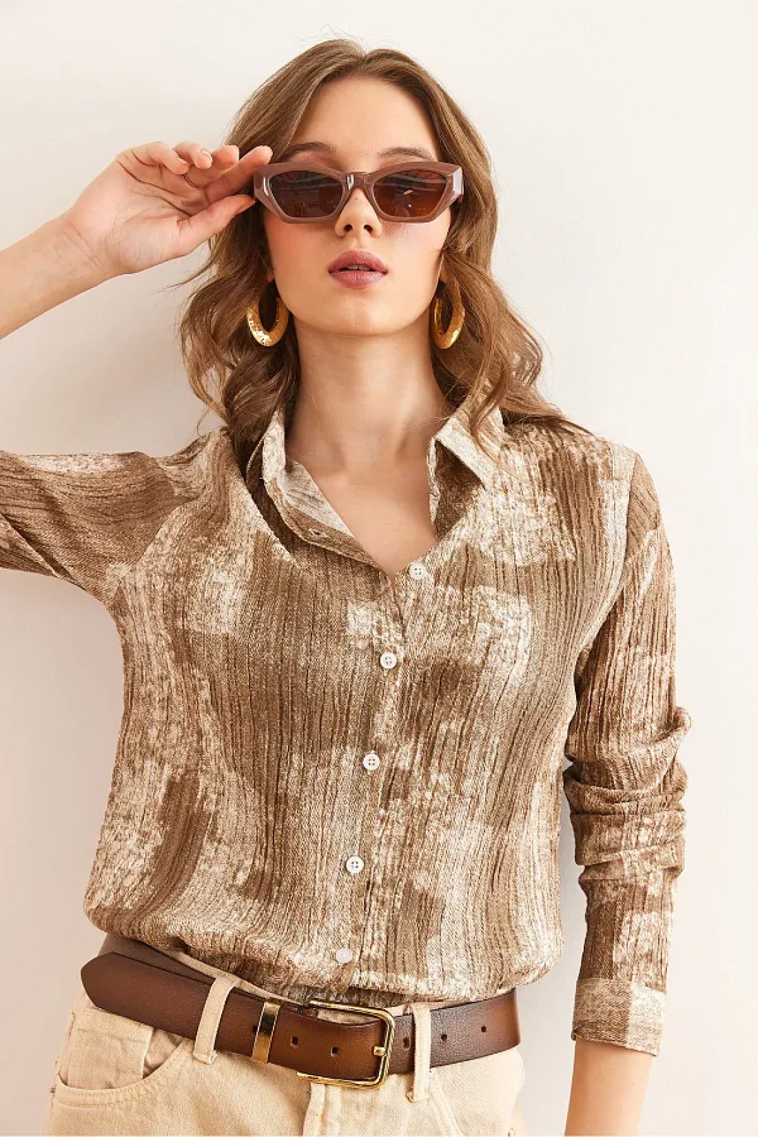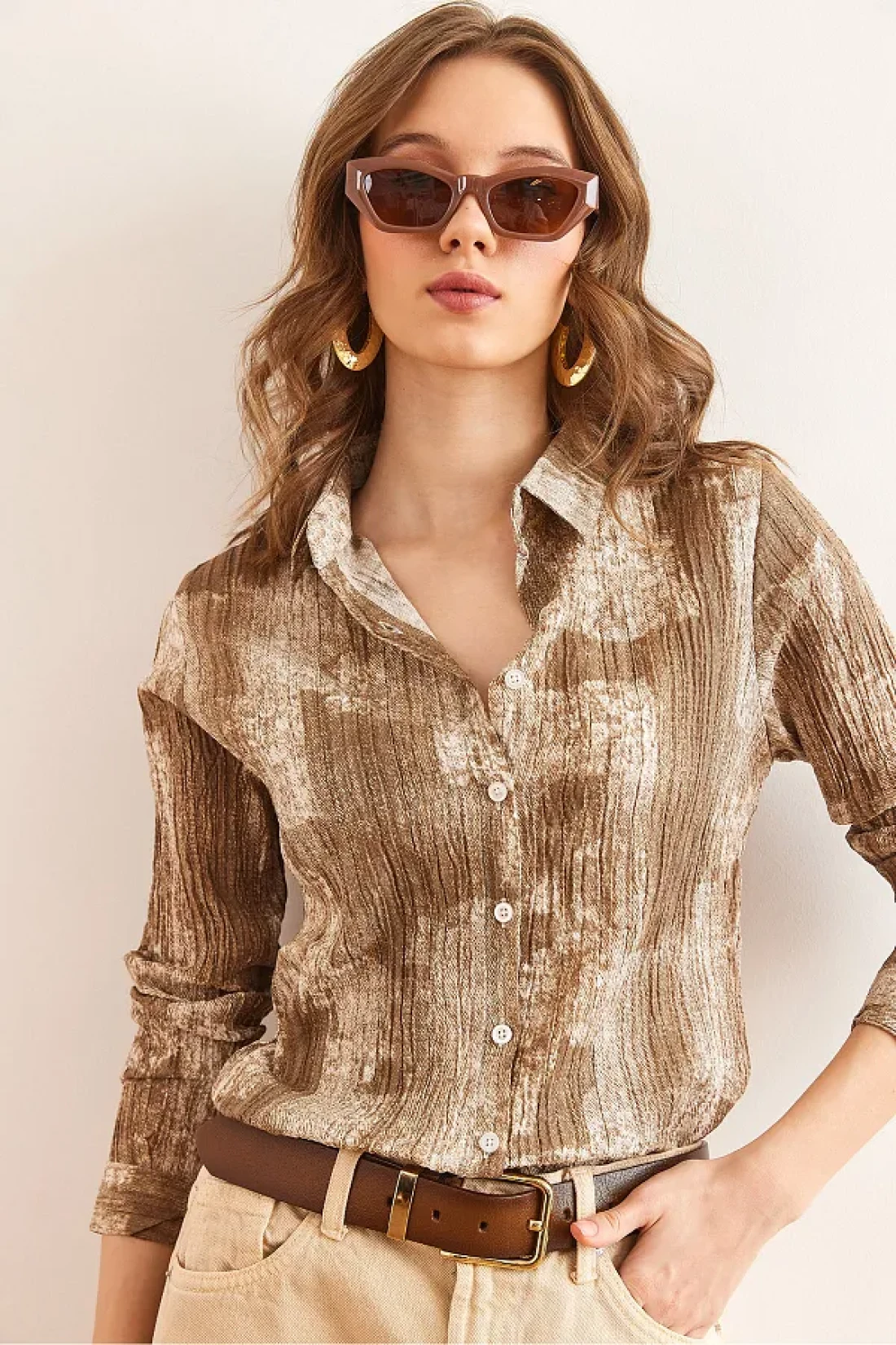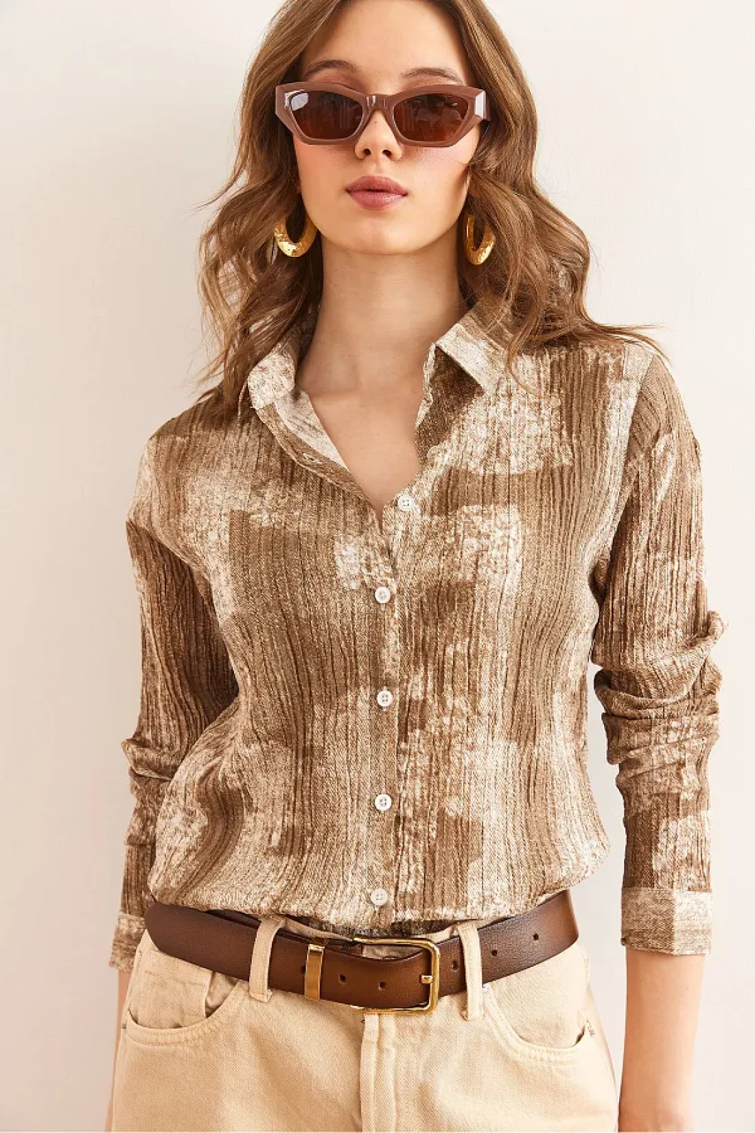 Olalook قميص نسائي بني اللون متدرج ذو ملمس عادي GML- 19001297