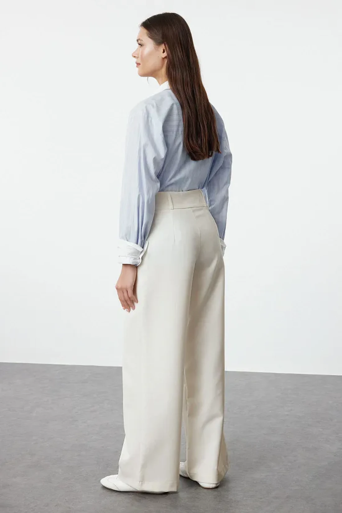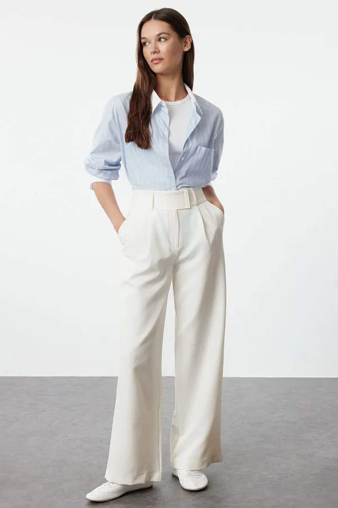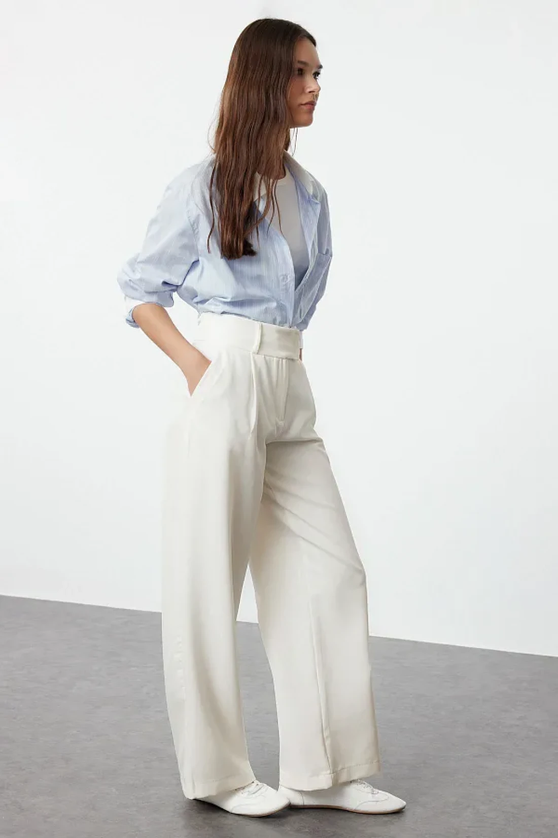 Collection بنطال منسوج أبيض بقصة مستقيمة - تفاصيل الخصر، TWOAW25PL00038