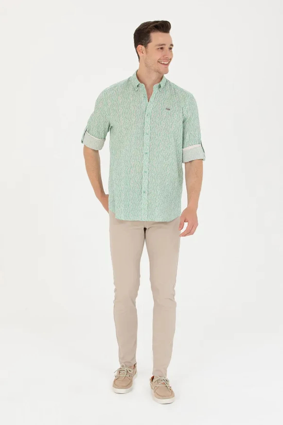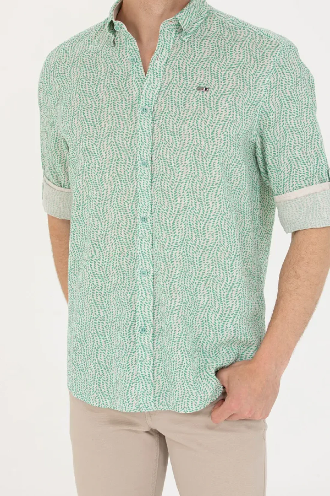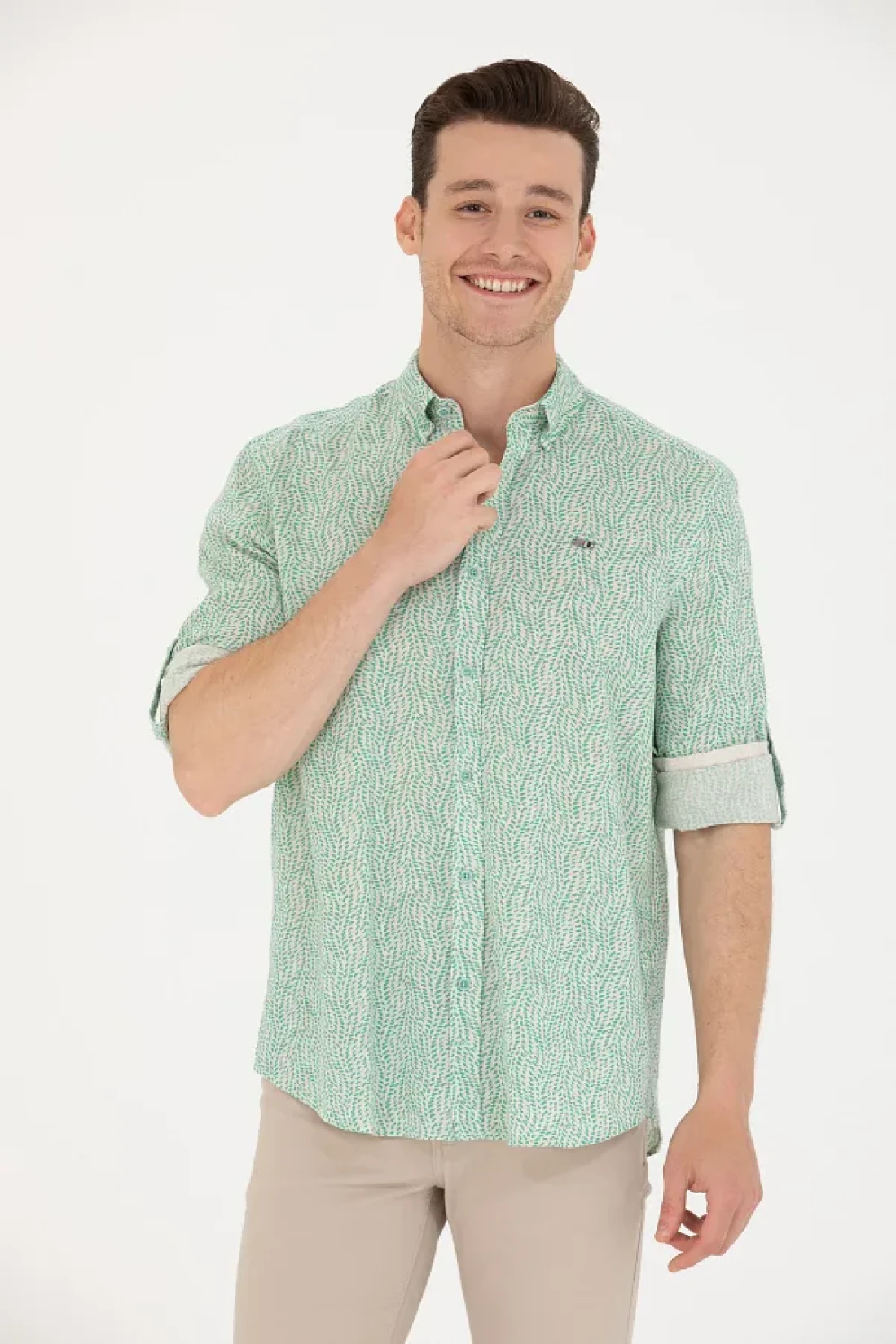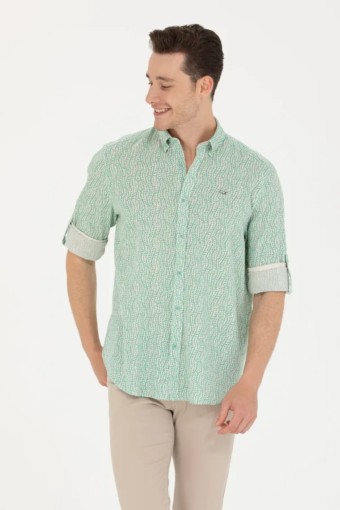 U.S. Polo Assn. قميص رجالي بلون النعناع - كم طويل، موديل 50264263 -vr090