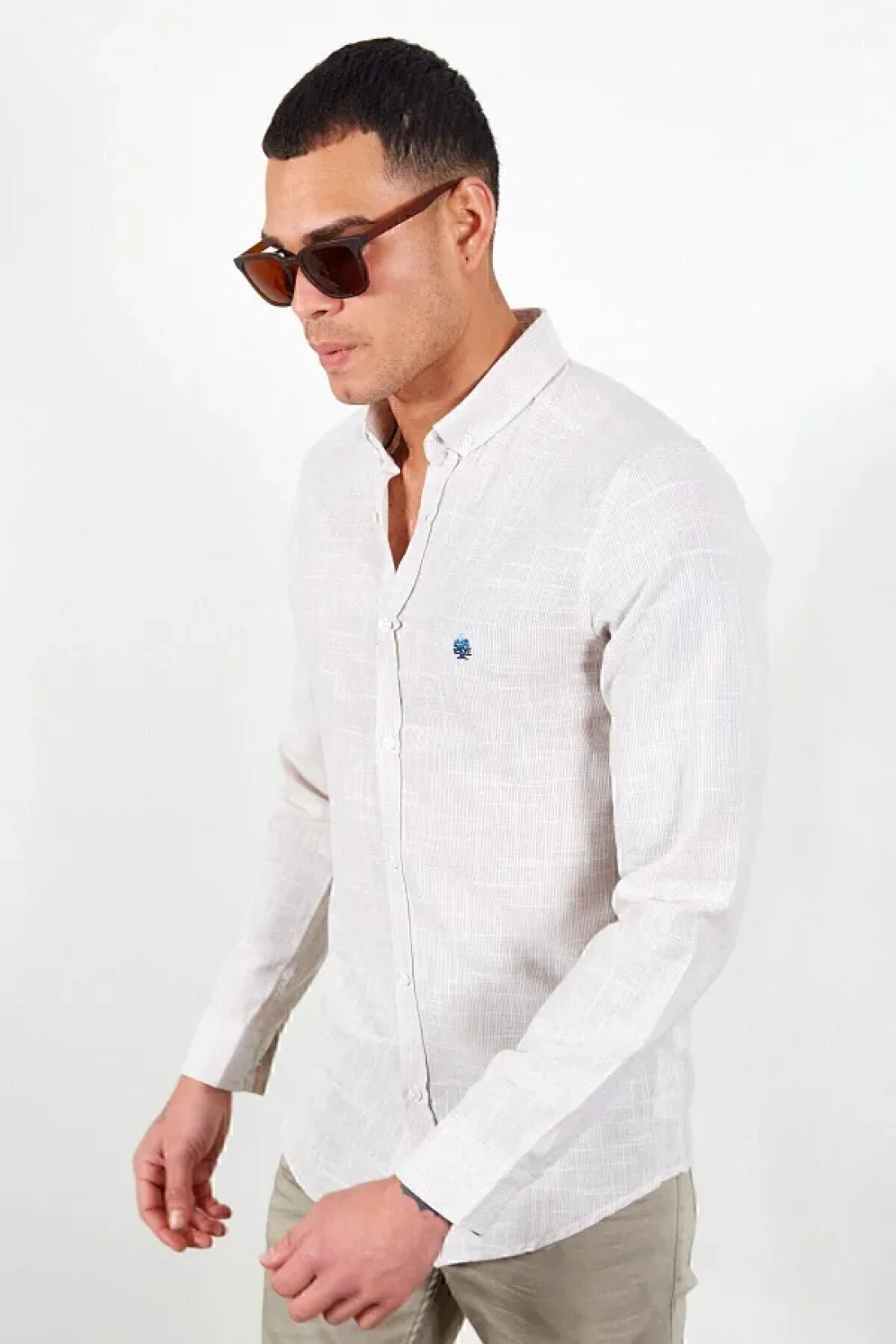 Manche قميص كتان رجالي مطرز بالأحجار - Mes116488-01