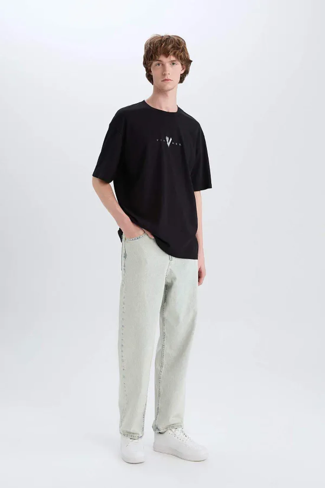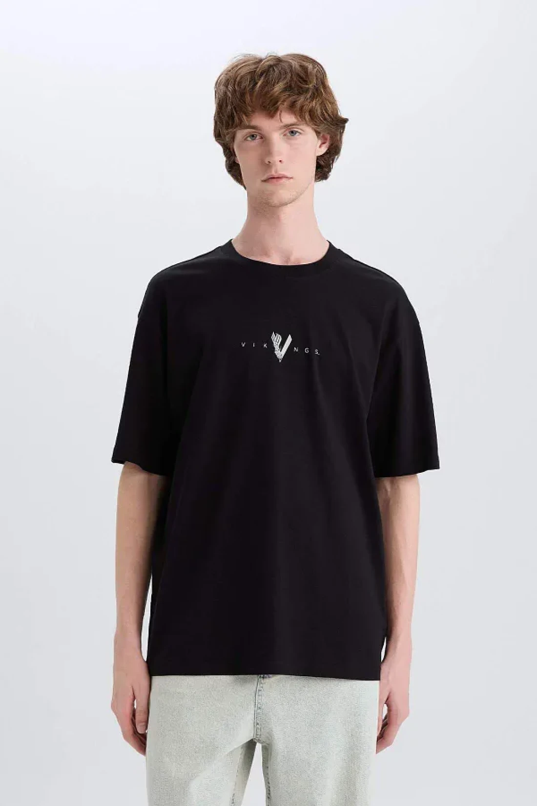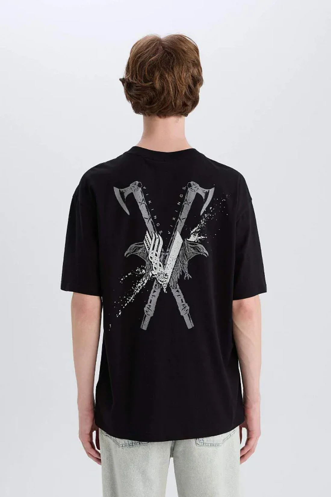 Defacto تي شيرت 100% قطن الفايكنج فالهالا بوكسي بياقة دائرية وطباعة خلفية وأكمام قصيرة E3277AX25SM