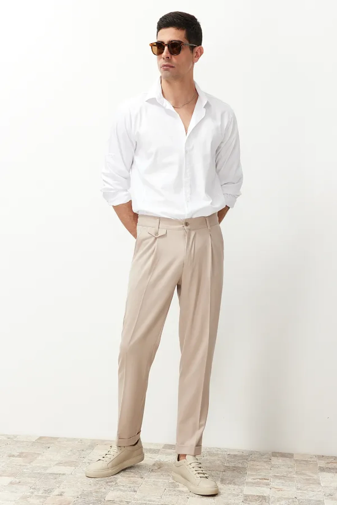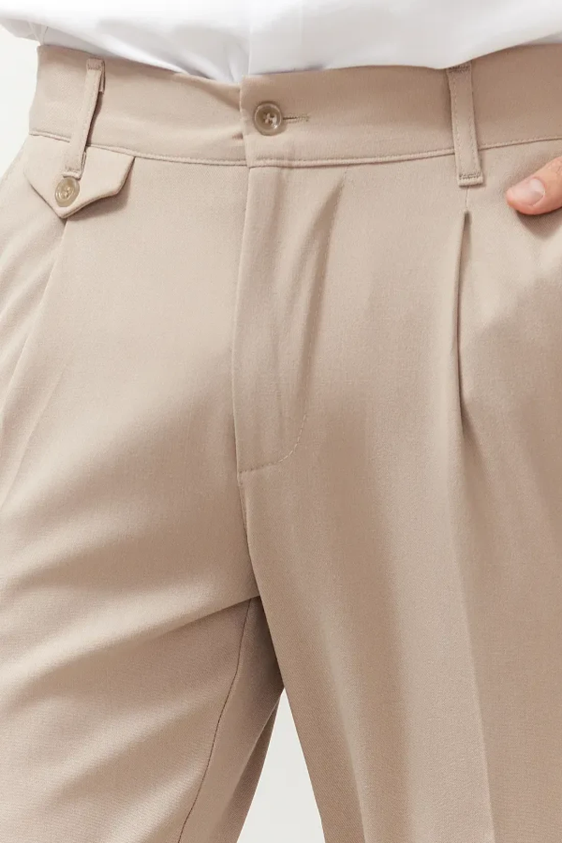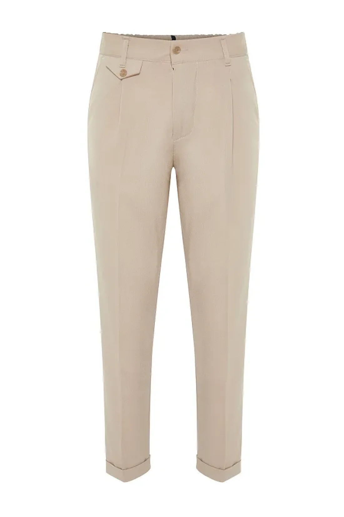 Collection بنطلون من القماش الكلاسيكي ذو الساق المزدوجة بطيات باللون البيج TMNSS24PL00022