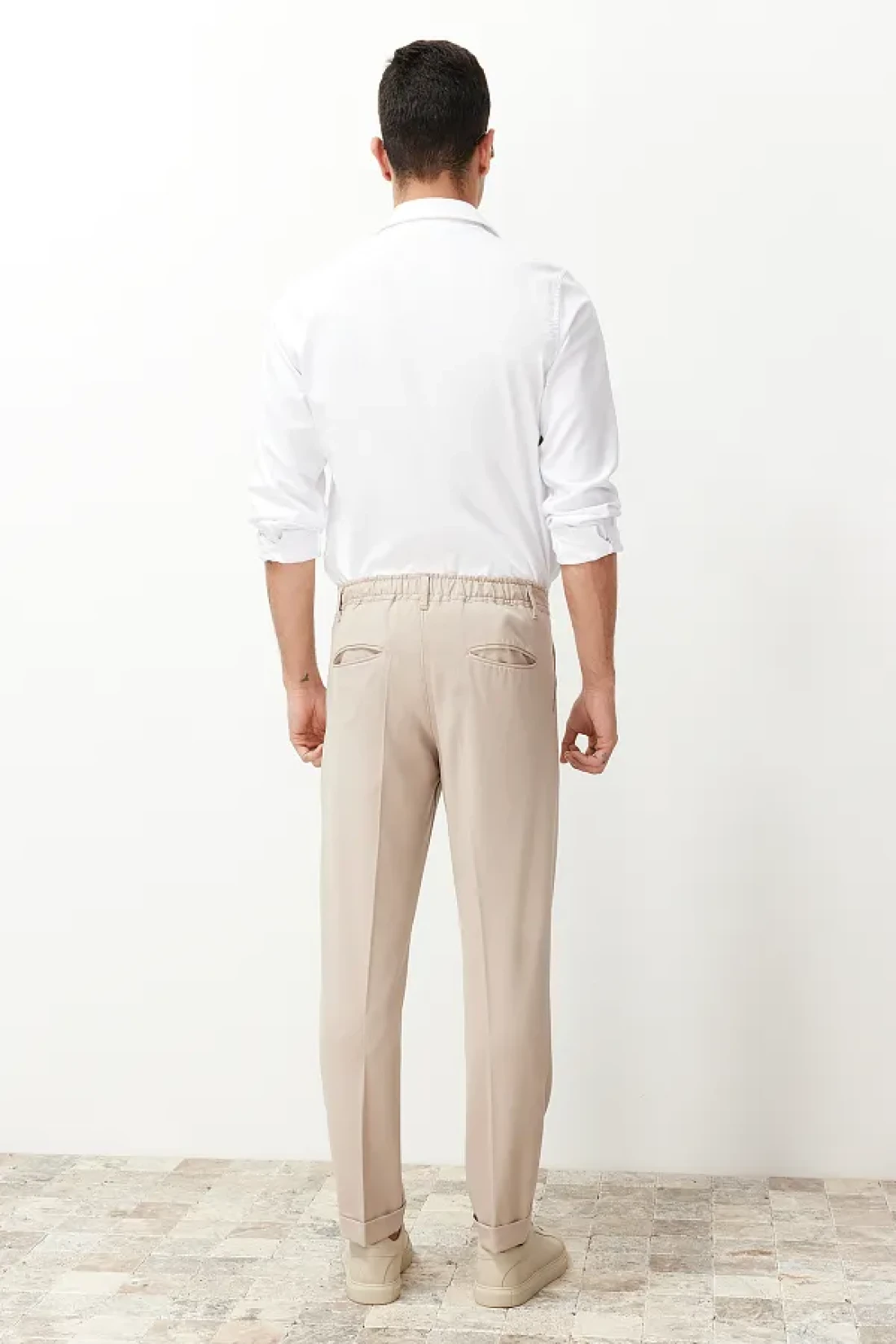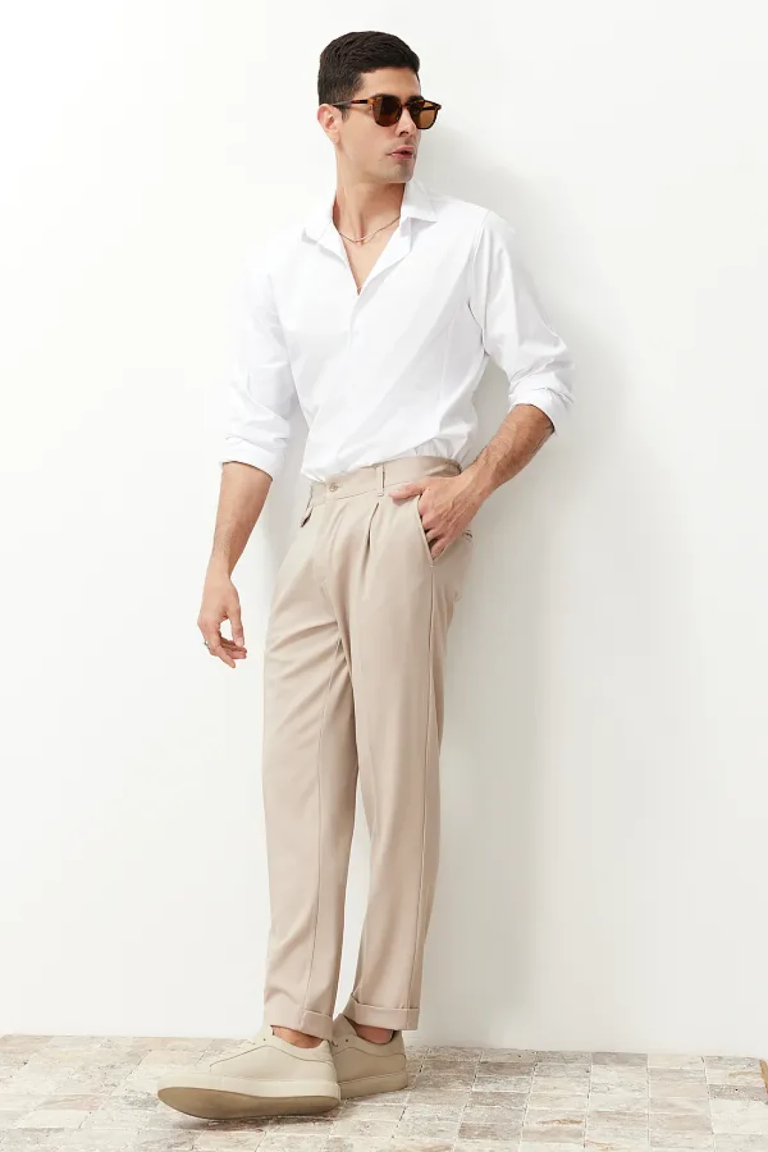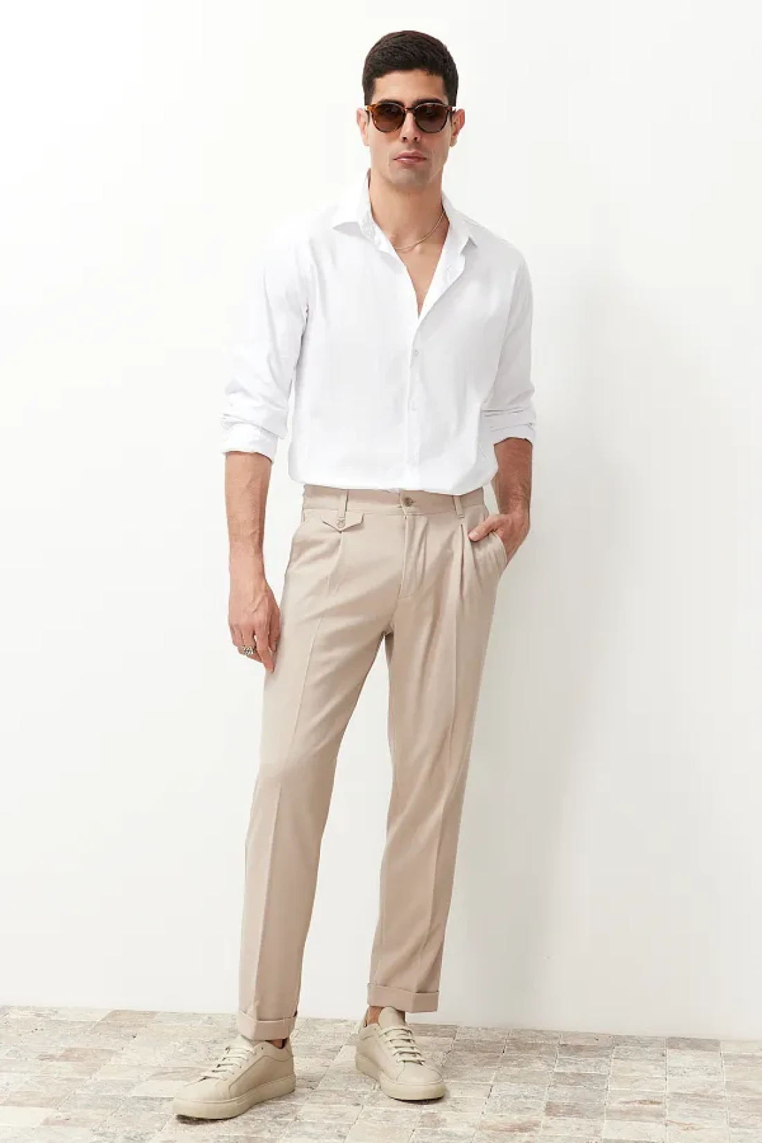 Collection بنطلون من القماش الكلاسيكي ذو الساق المزدوجة بطيات باللون البيج TMNSS24PL00022