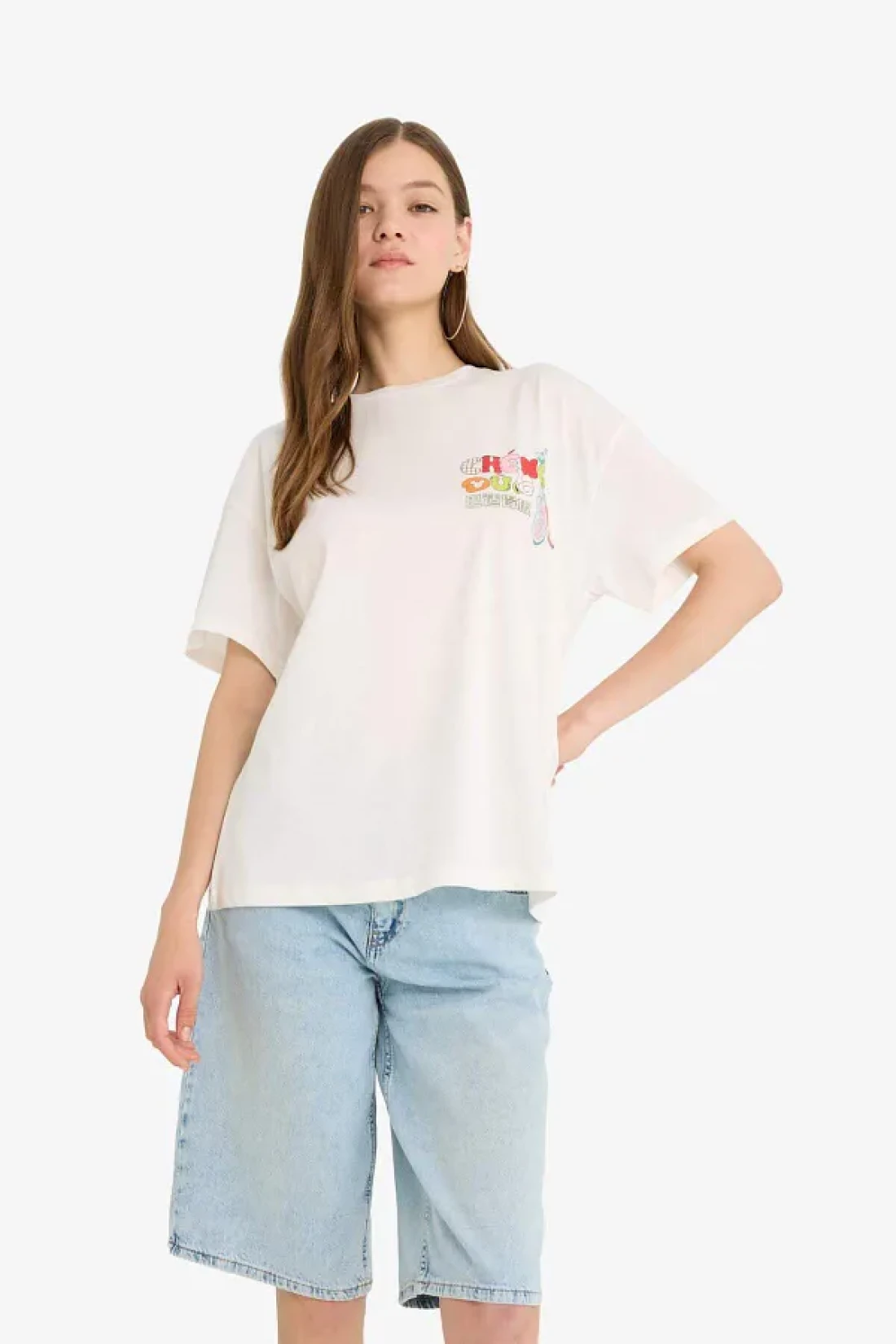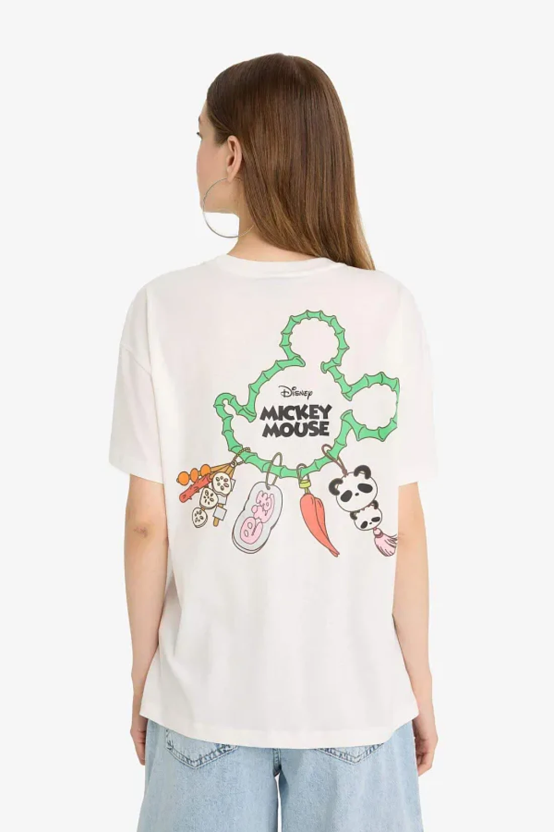 Defacto تي شيرت رائع من Disney Mickey & Minnie ذو قصة واسعة وطبعة خلفية وأكمام قصيرة F5167ax25sm