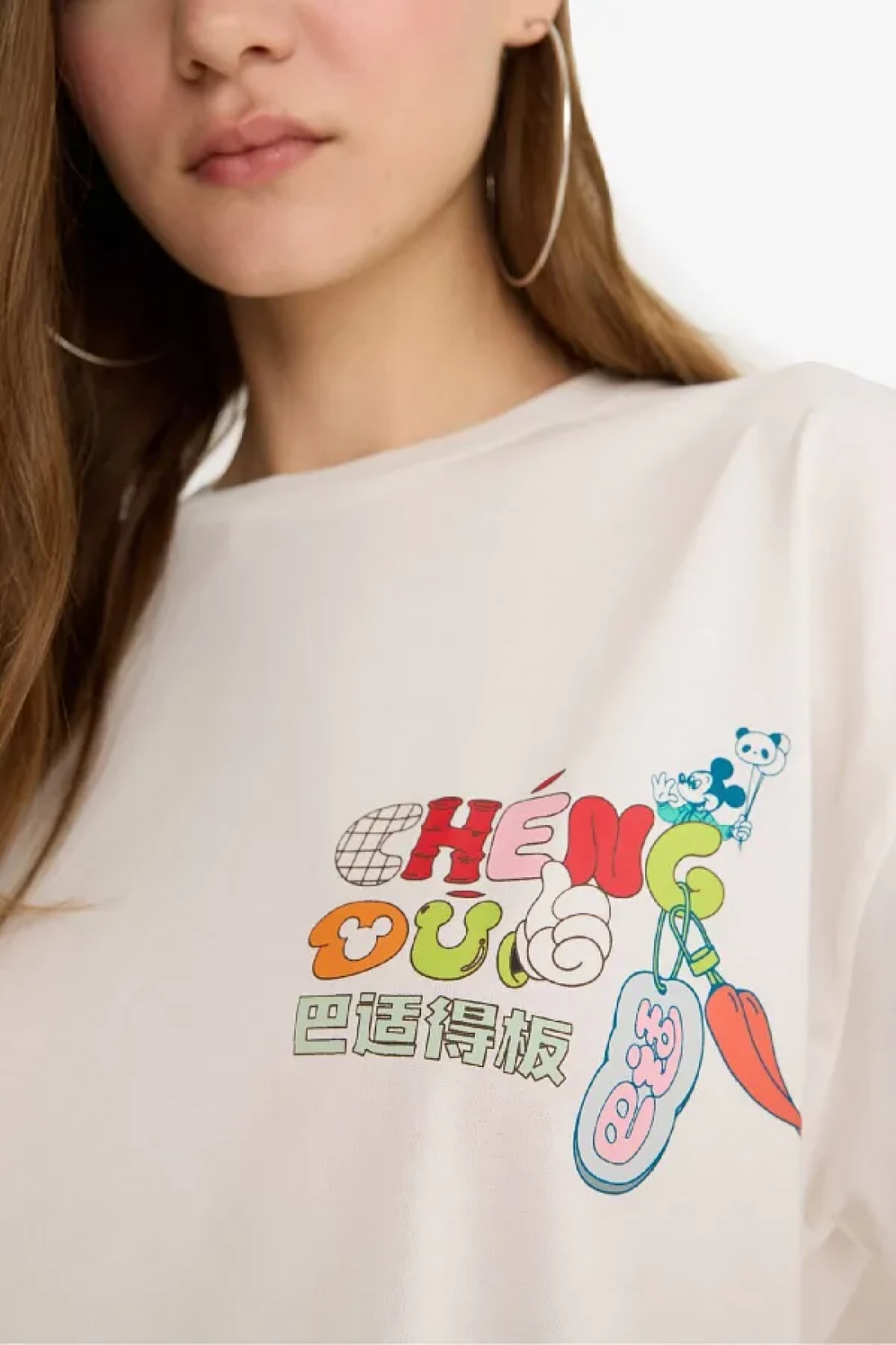 تم إنتاج تي شيرت Disney Mickey & Minnie ذو الأكمام القصيرة البيضاء مطبوع مع قصة فضفاضة نمطًا واسعًا من العلامة التجارية Coool بمعرفة الترخيص، باستخدام مواد مستدامة.