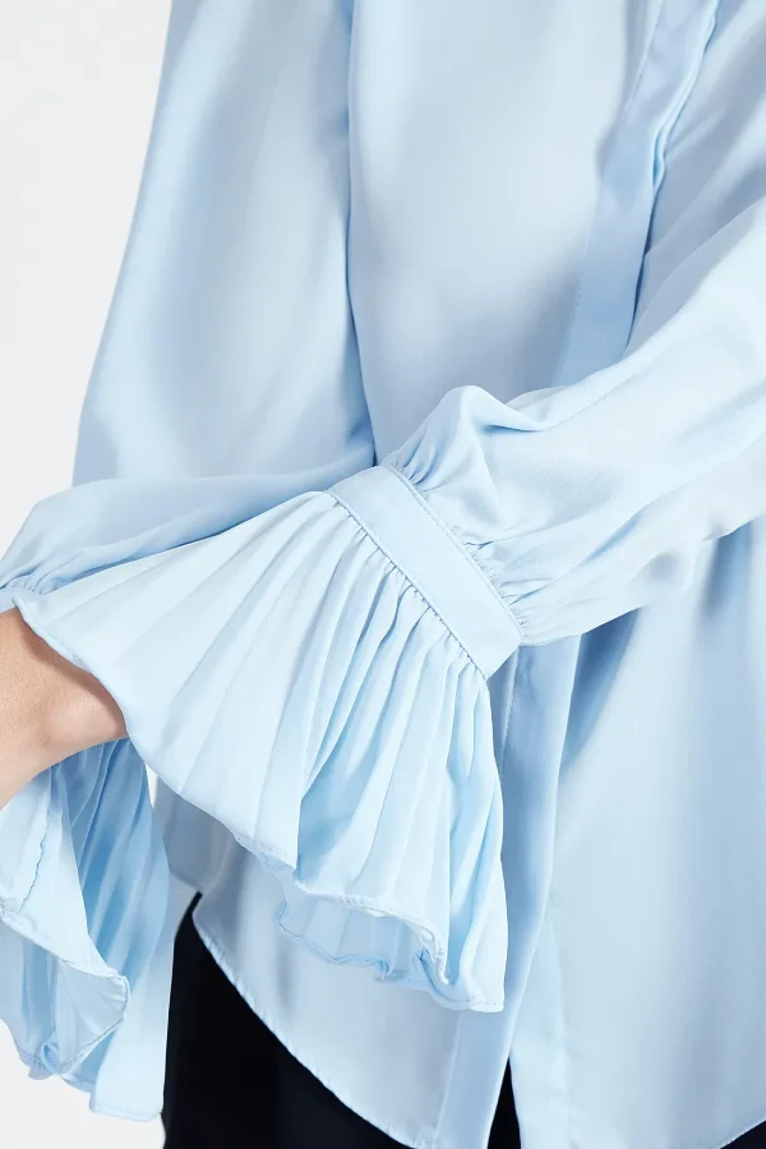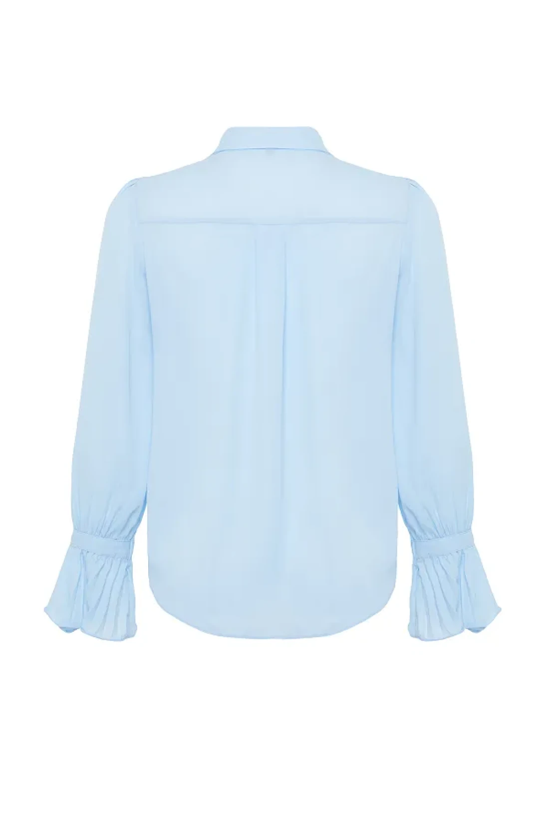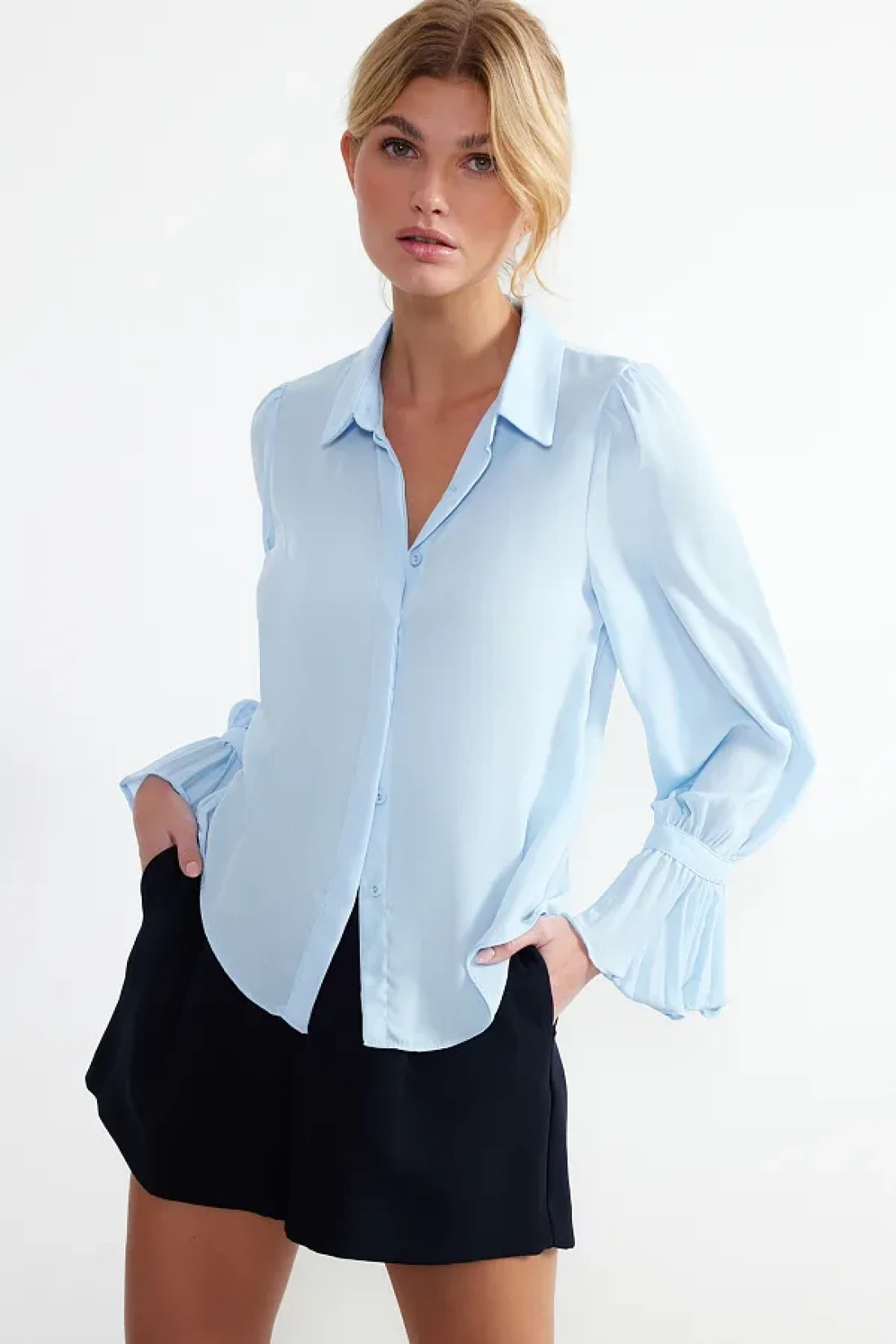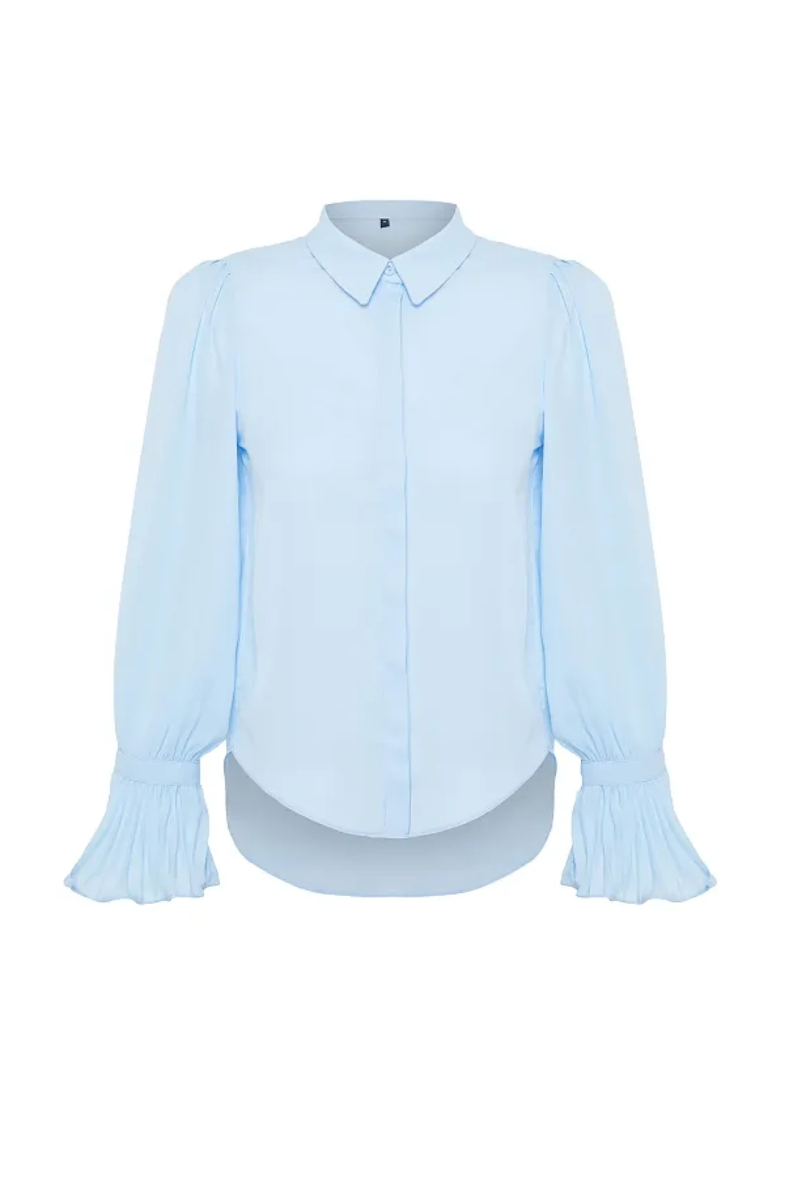 Collection قميص منسوج أزرق فاتح بأكمام إسبانية - مقاس عادي TWOAW22GO0487