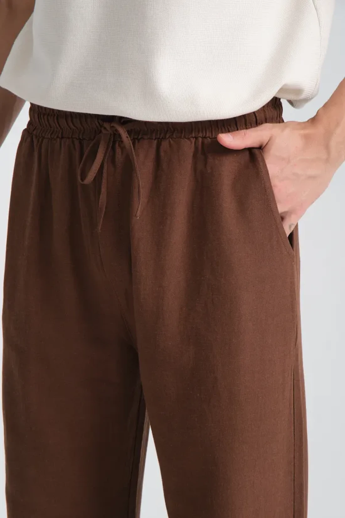 نقدم لكم البنطلون الرجالي الفضفاض من الكتان والفيسكوز والقطن، حيث تلتقي الأنسجة الطبيعية والراحة! مزيج من الكتان المسامي والفيسكوز الناعم ونسيج القطن المتين يجعل هذا البنطلون مثاليًا للارتداء اليومي والأنيق. تؤكد تصميمها الفضفاض والمريح على أناقتك بأسلوبها العصري وغير الرسمي، مع توفير الراحة طوال اليوم.