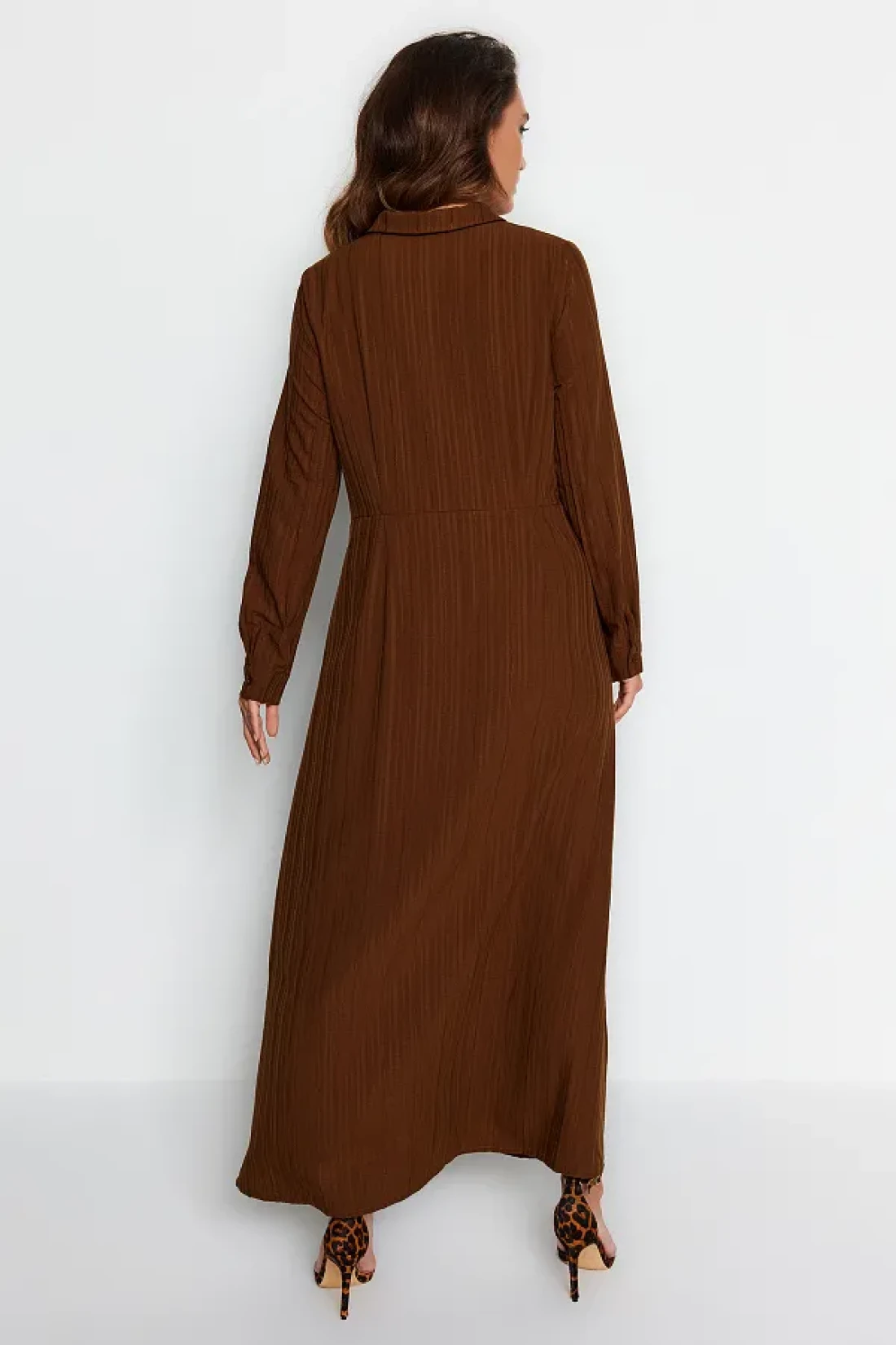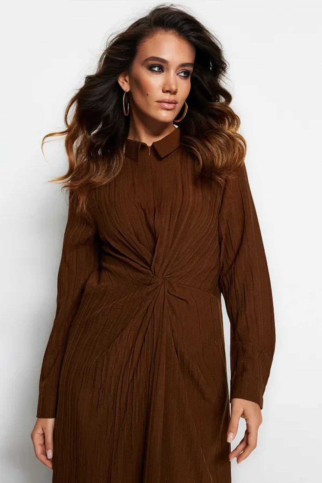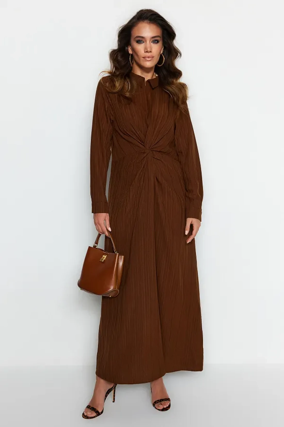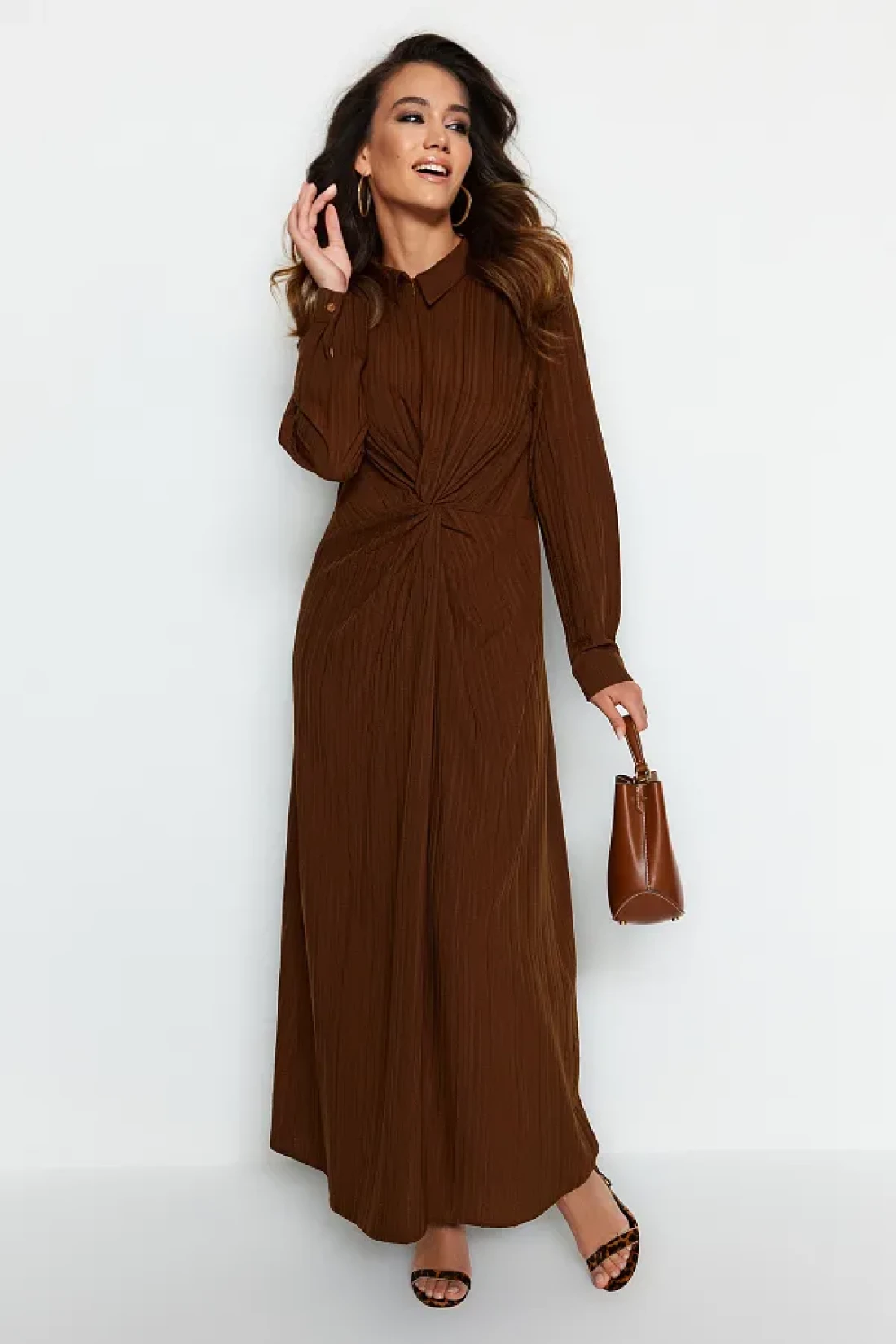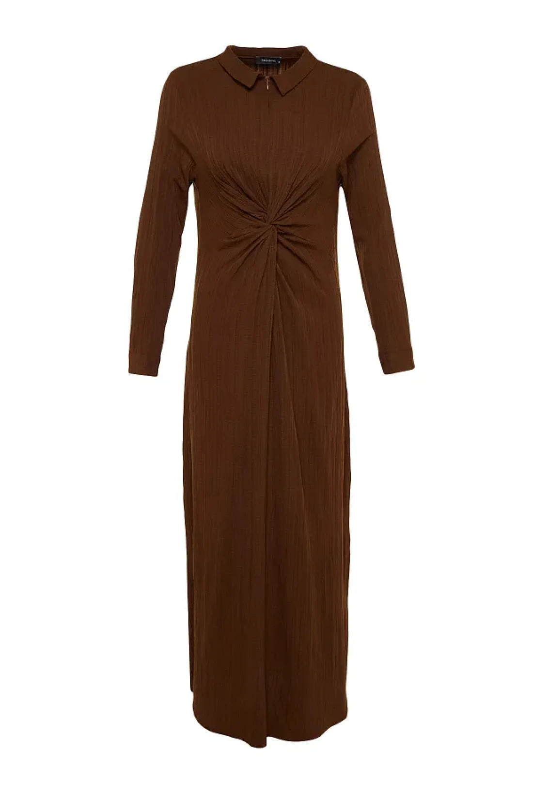 Modest فستان منسوج بعقدة أمامية وسحاب باللون البني TCTSS23EB00137