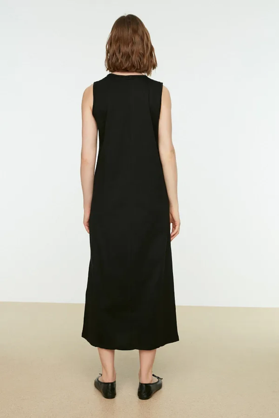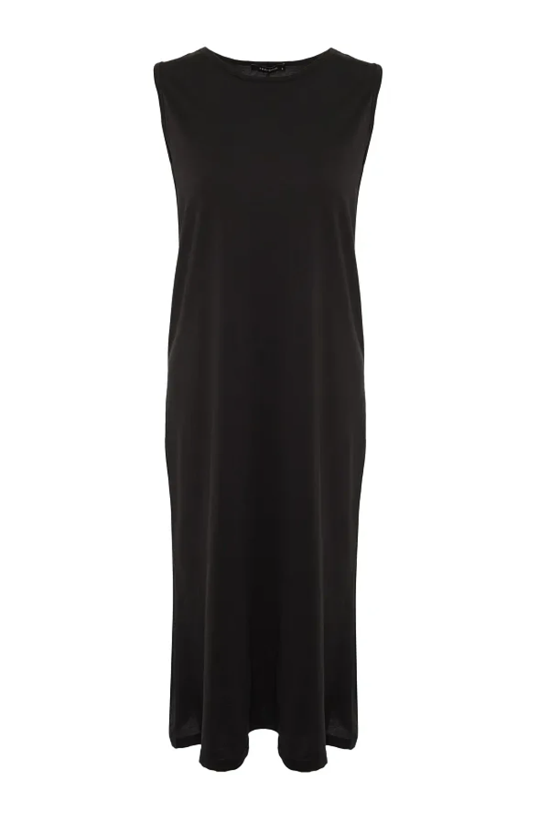 Modest فستان أسود بدون أكمام ببطانة طويلة TCTSS21UK0034