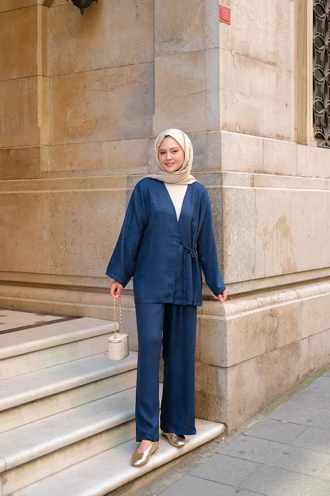 LOCCO بدلة نسائية ذات طية صدر مزدوجة باللون الأزرق الداكن