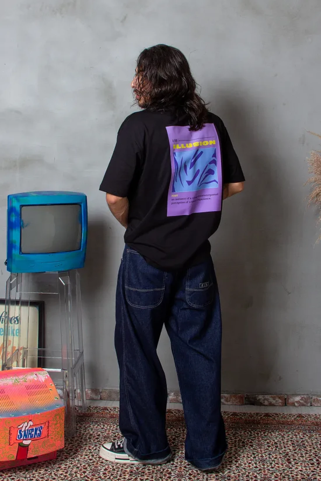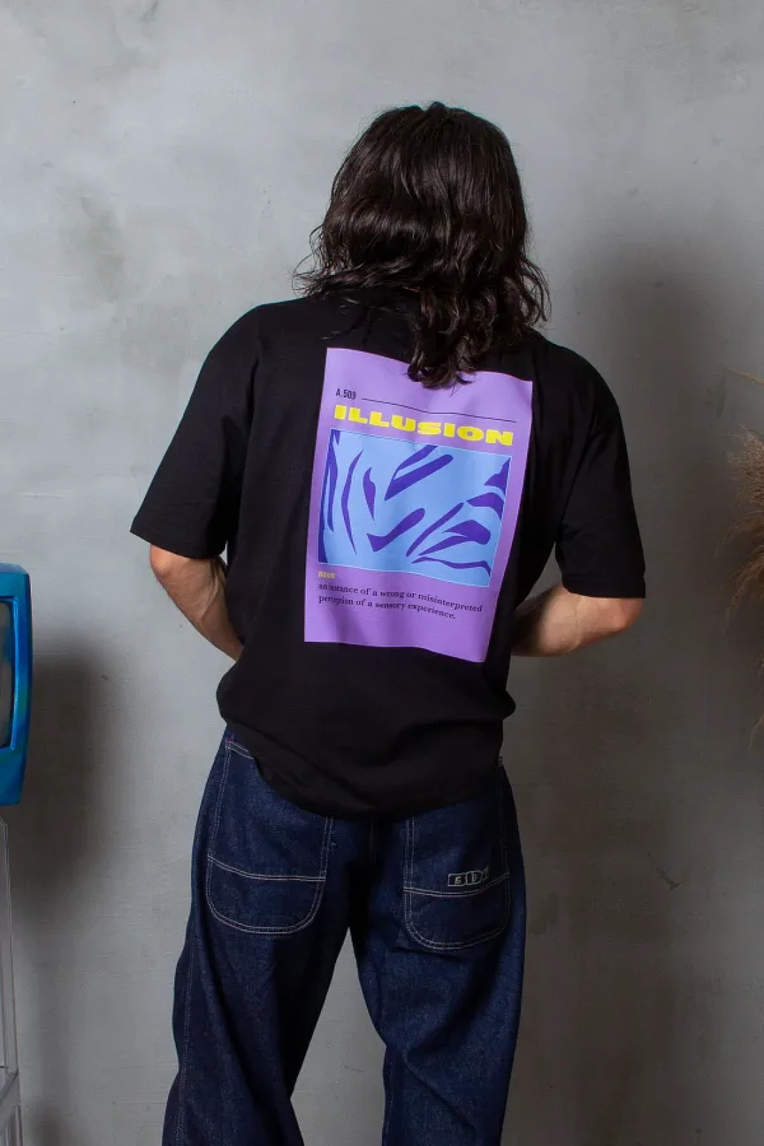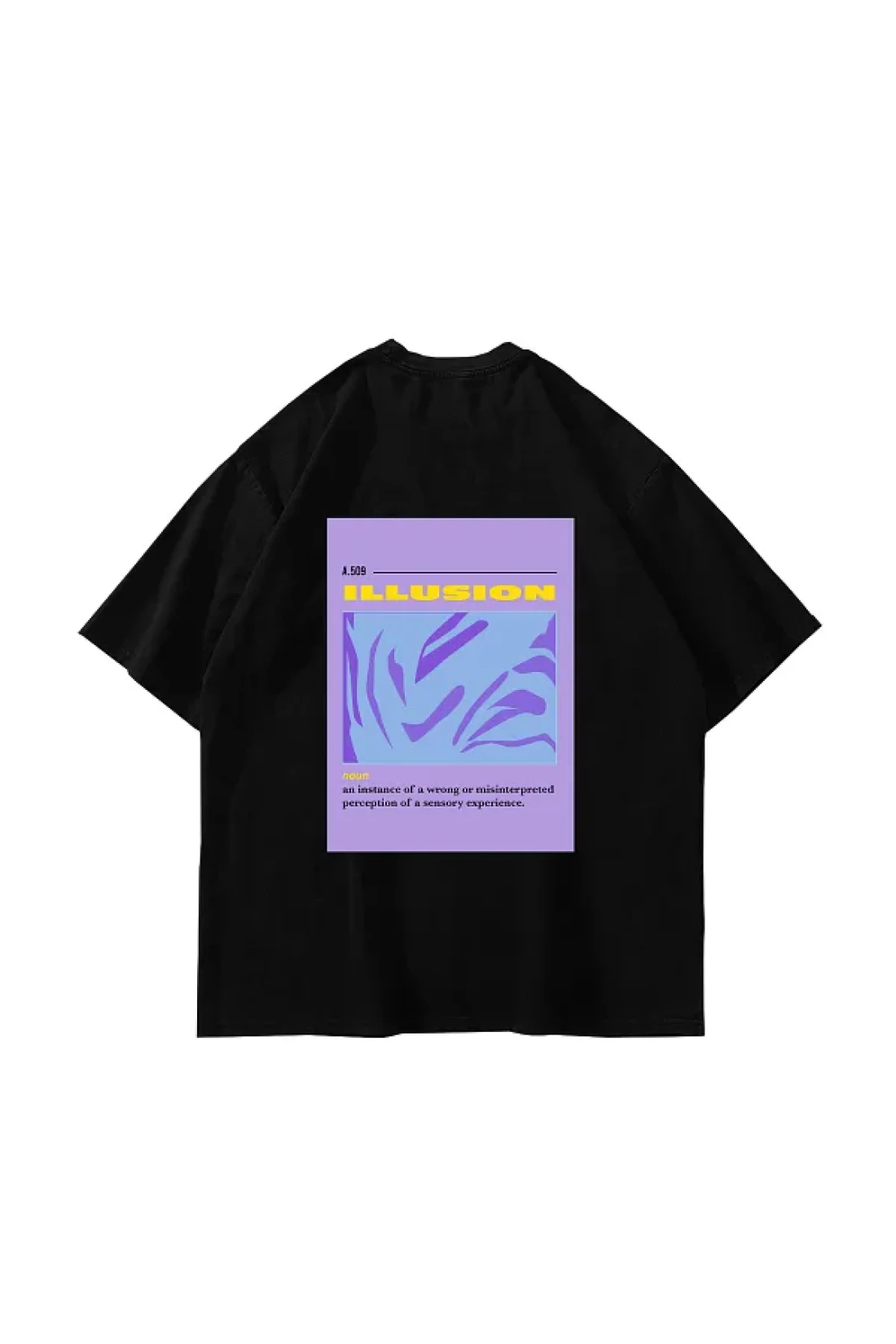 Sekizbiraltı تيشيرت أسود كبير الحجم مطبوع عليه الوهم للجنسين