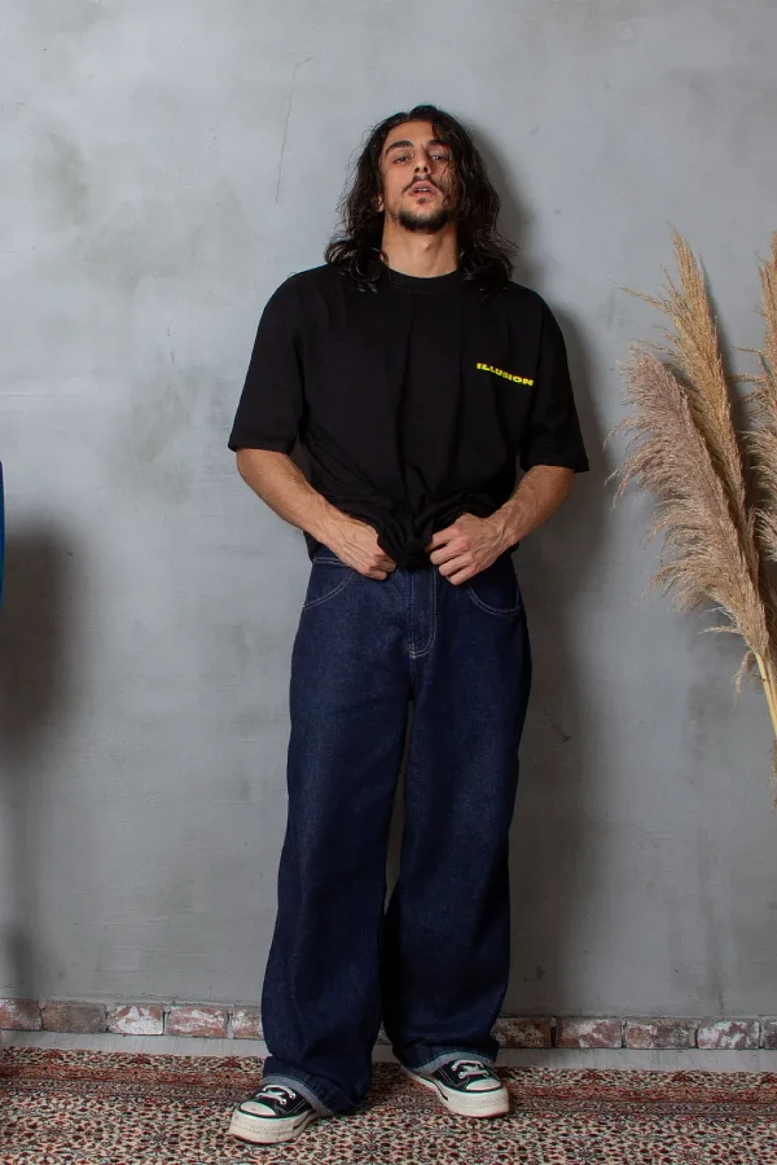 هذا القميص الأسود، الذي يعتبر مثالياً للاستخدام اليومي بفضل قصته المريحة، يقدم مظهرًا عصريًا وأنيقًا بفضل تصميمه المكون من قصة فضفاضة قطعة.