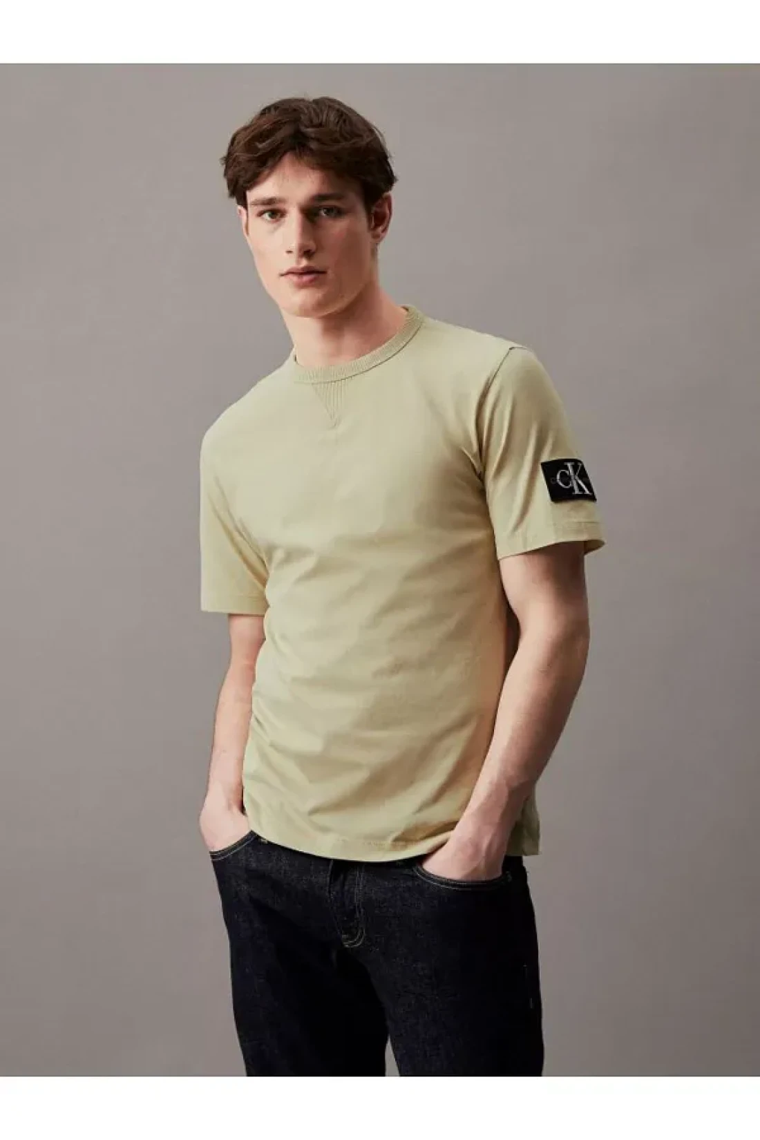 Calvin Klein تيشيرت رجالي أخضر مع تفاصيل الشعار