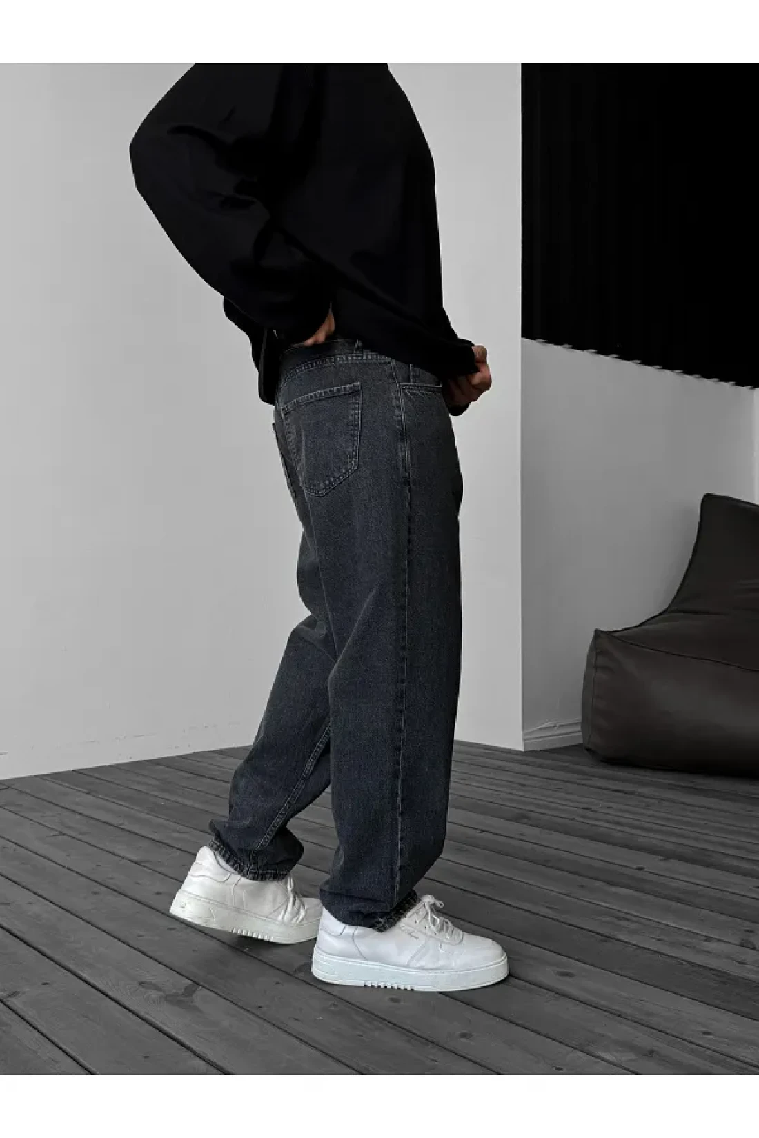 BYBASICMAN أنثراسايت مغسول فضفاض جان Dp-ke