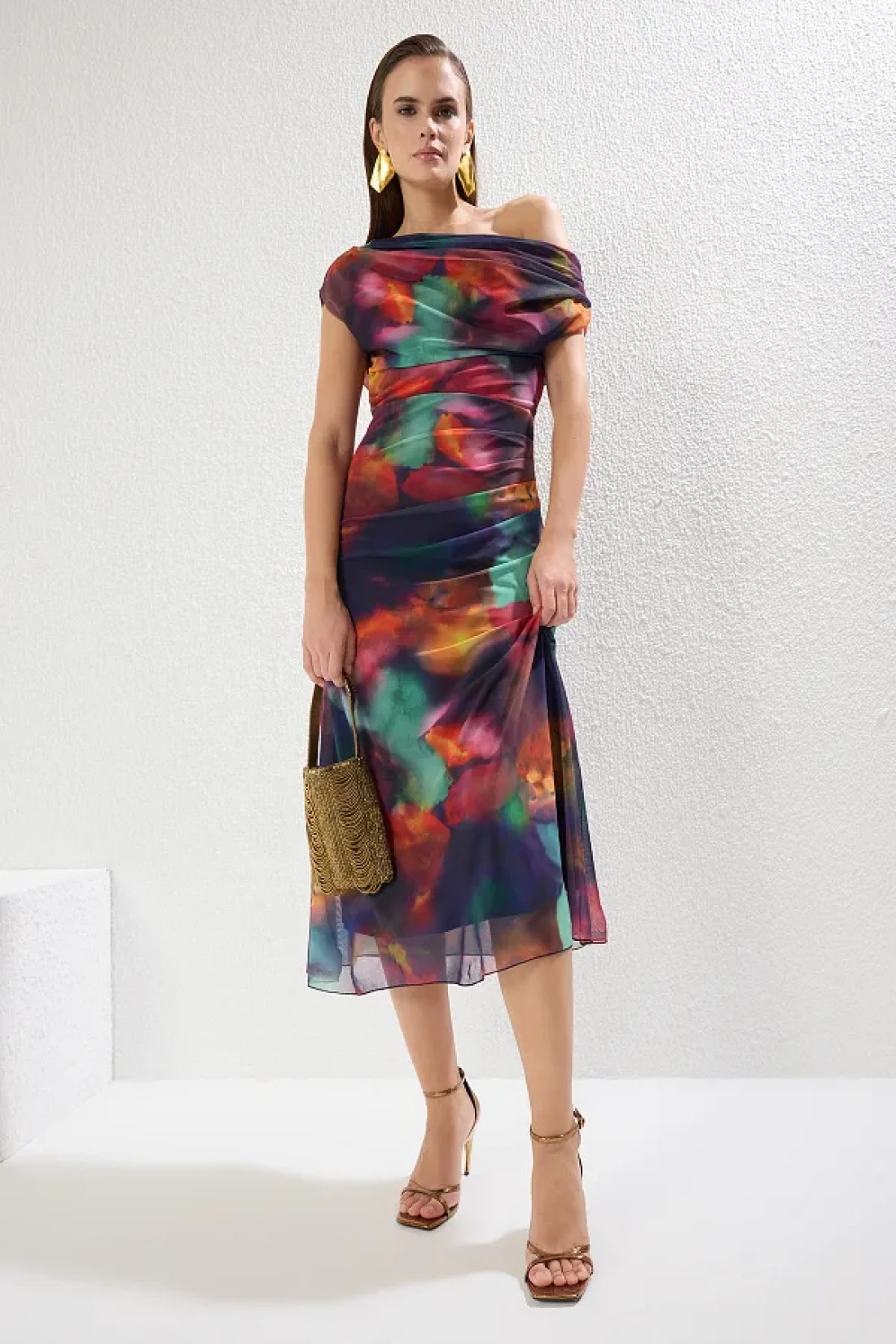 Collection فستان سهرة أنيق متعدد الألوان من التول المحبوك فستان التخرج الليلي TPRSS25EL00015