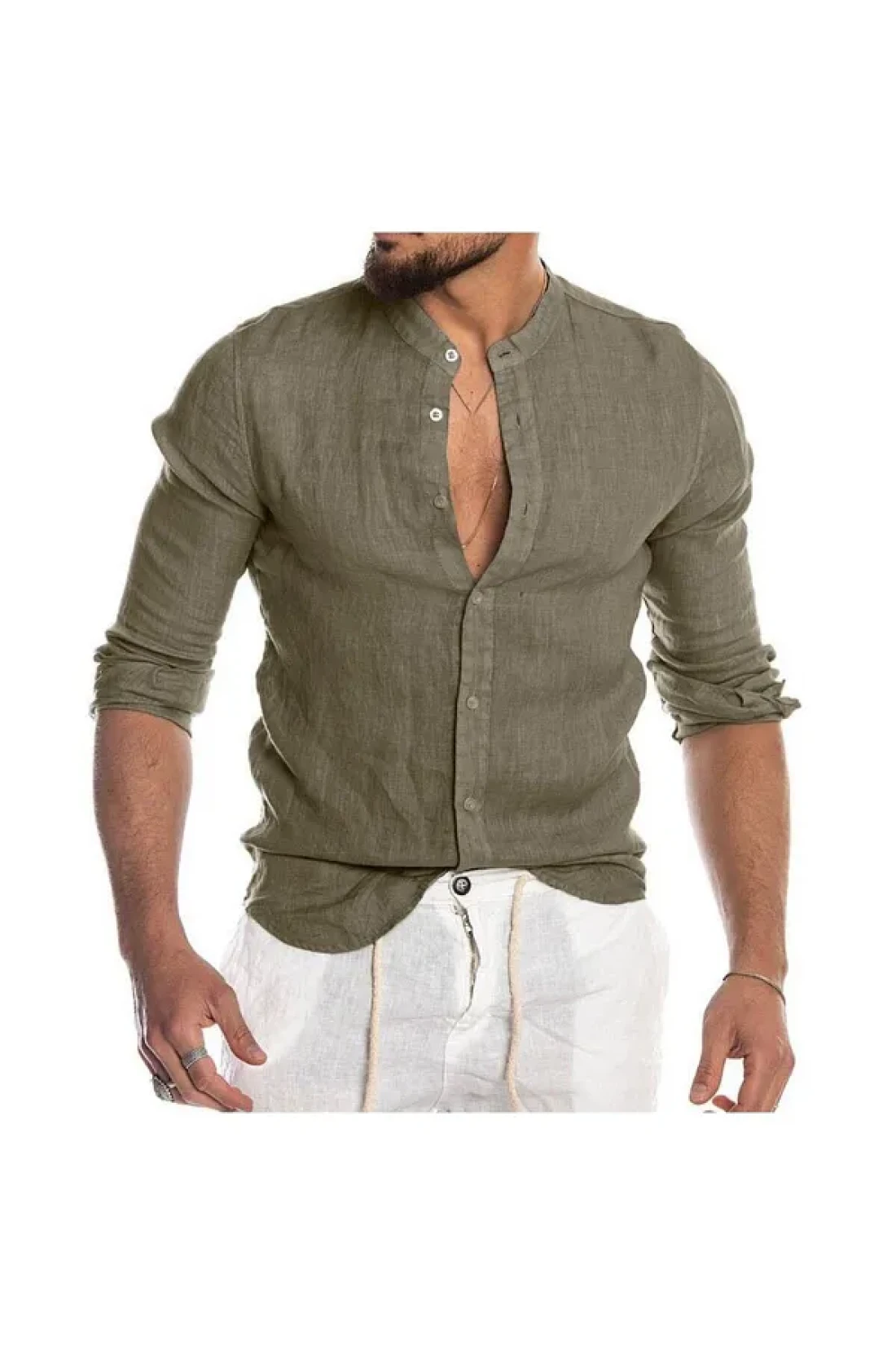 Piola Club قميص رجالي من الكتان والكاكي بياقة القاضي
