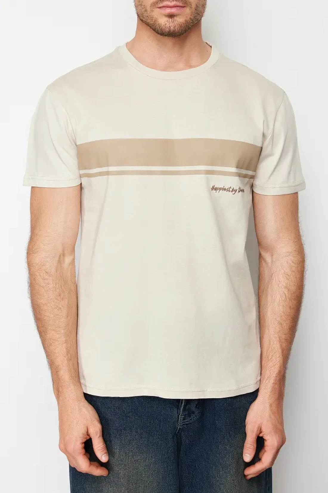Collection تي شيرت مخطط مطبوع 100% قطن بأكمام قصيرة - رقبة دائرية TMNSS24TS00059