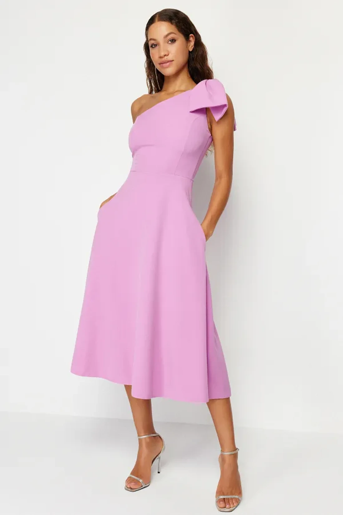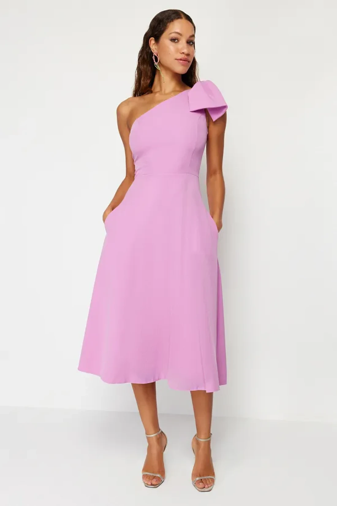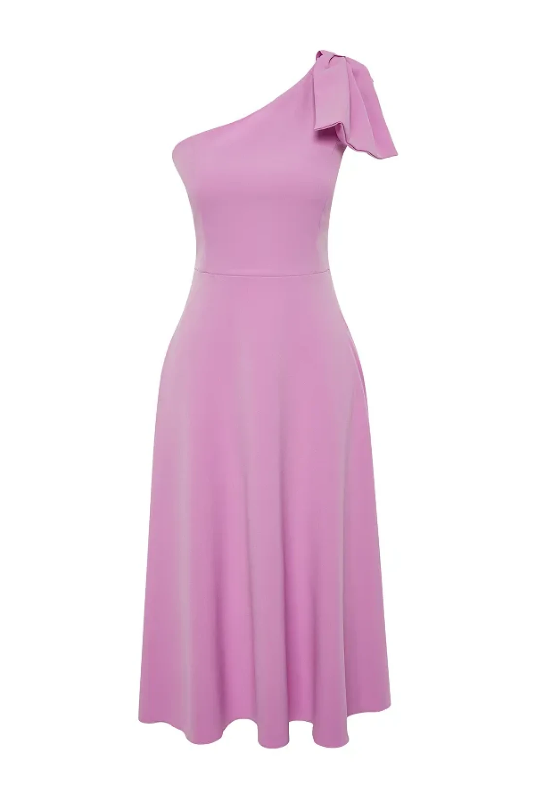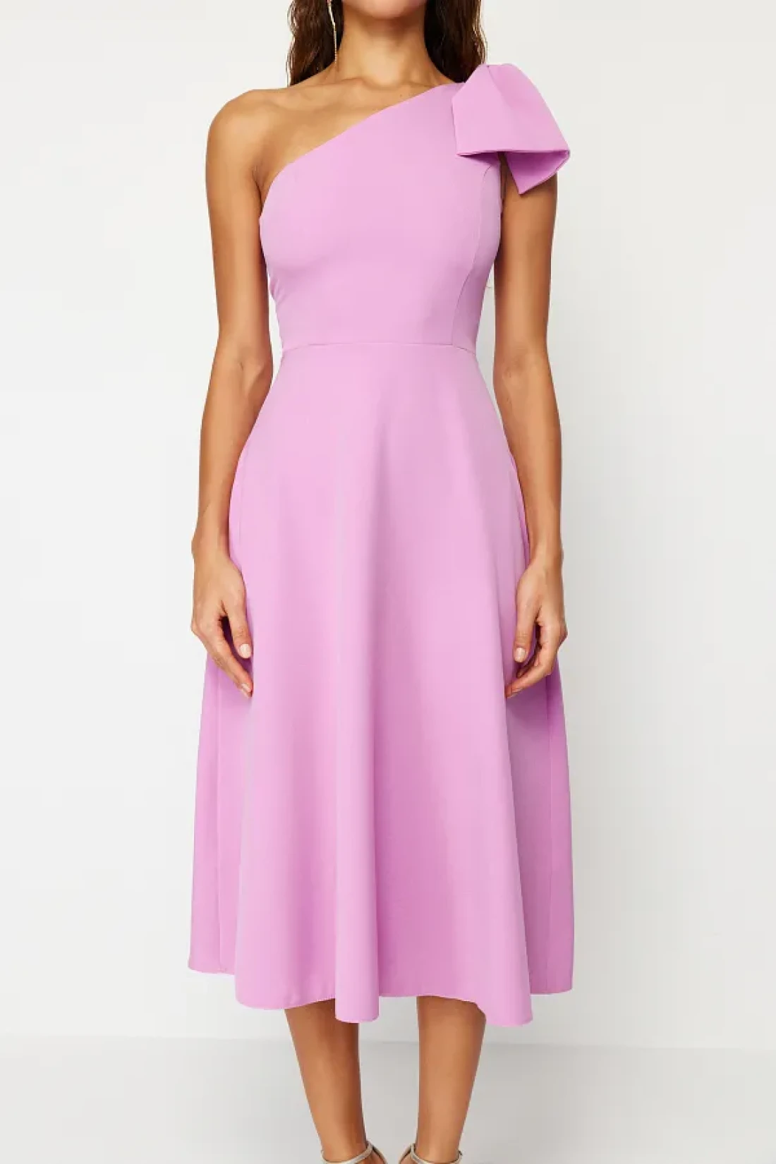 Collection فستان سهرة أنيق على شكل حرف A باللون الوردي مع فيونكة للمناسبات الليلية TPRSS24EL00105