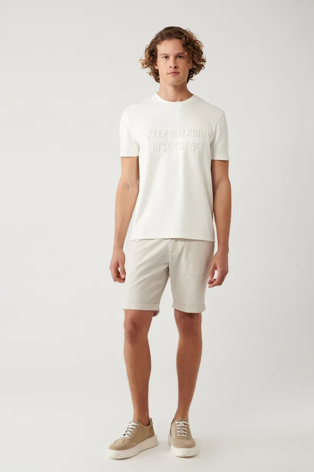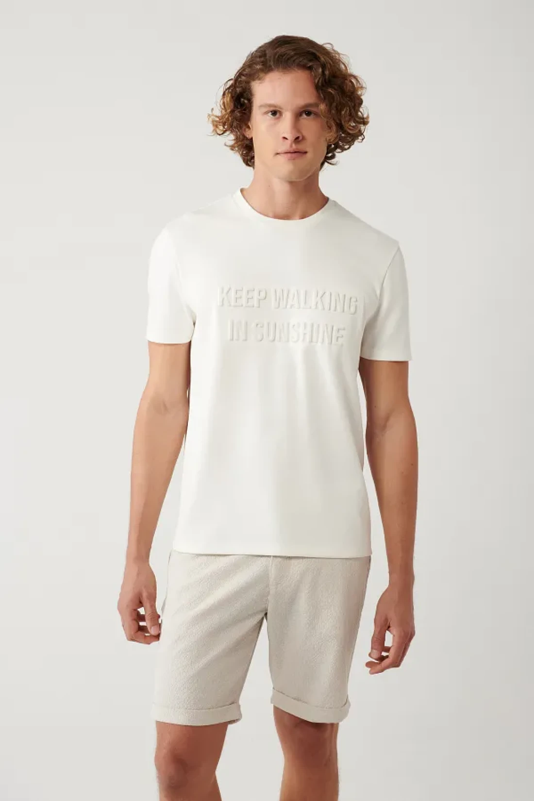 ياقة دائرية، أكمام قصيرة، نسيج قطني مطبوع، نسيج متشابك، تيشيرت بقصة عادية قد تختلف الألوان بسبب اختلافات الضوء في التصوير في الاستوديو ارتفاع الموديل: 188 سم الصدر: 98 سم الخصر: 74 سم الأرداف: 98 سم حجم العينة: م 48% بوليستر، 46% فيسكوز، 6% إيلاستان