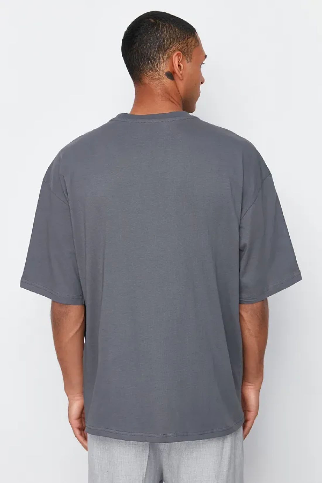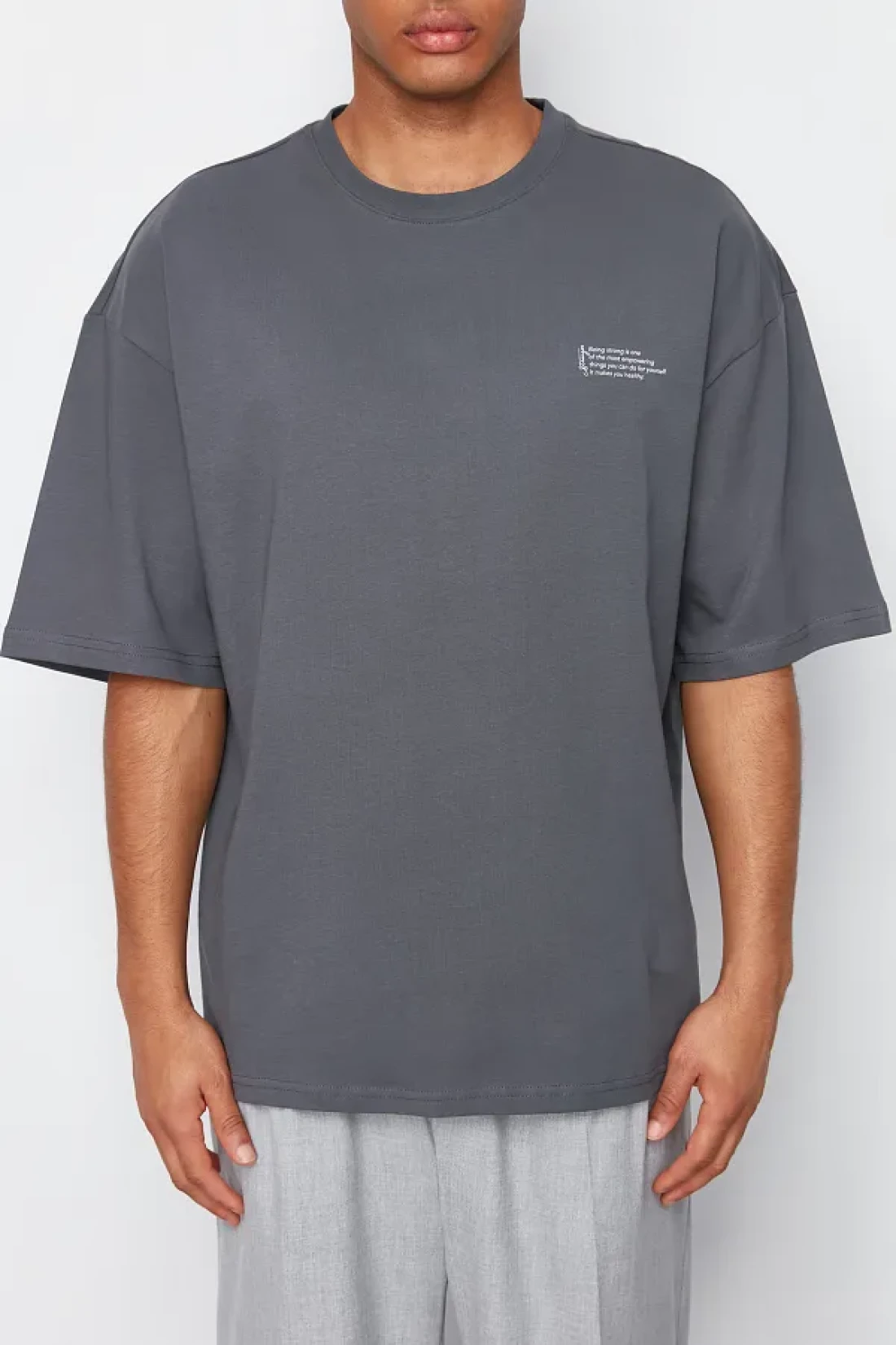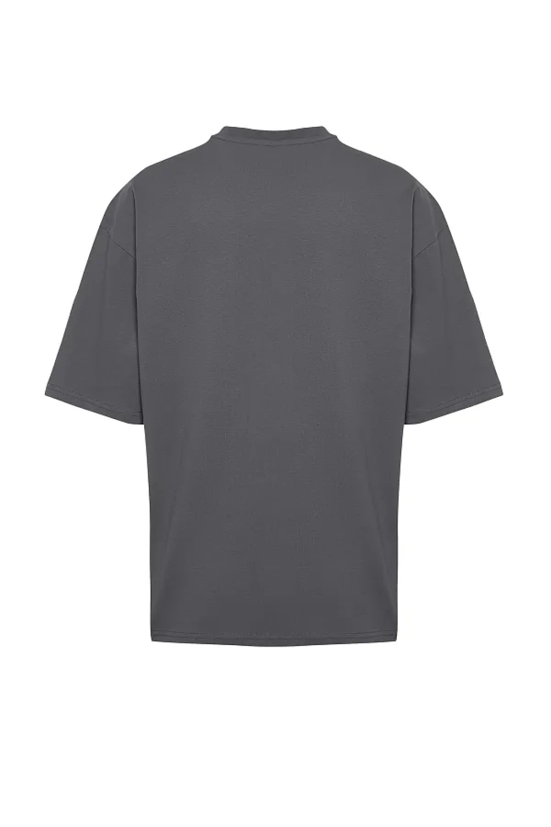 Collection تي شيرت أنثراسايت كبير الحجم مطبوع برقبة دائرية - 100% قطن TMNSS23TS00084